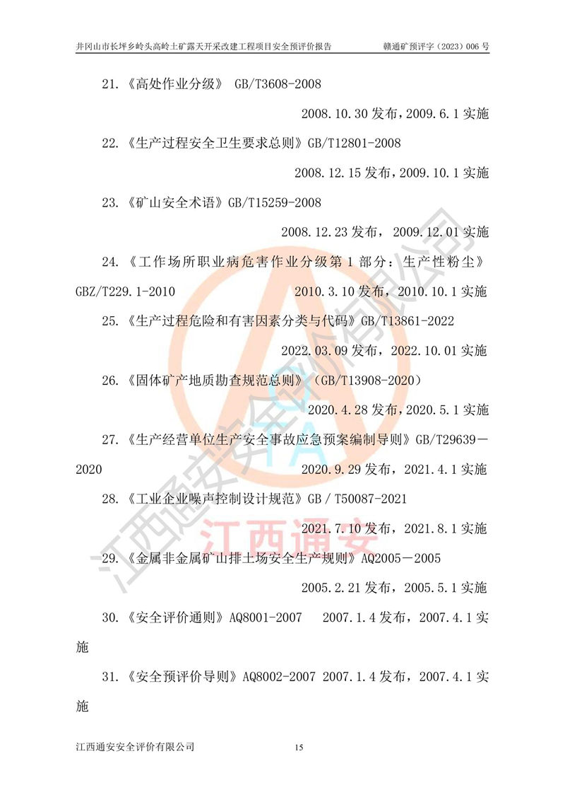 项目名称 | 井冈山市长坪乡岭头高岭土矿露天开采改建工程项目安全预评价 | ||||