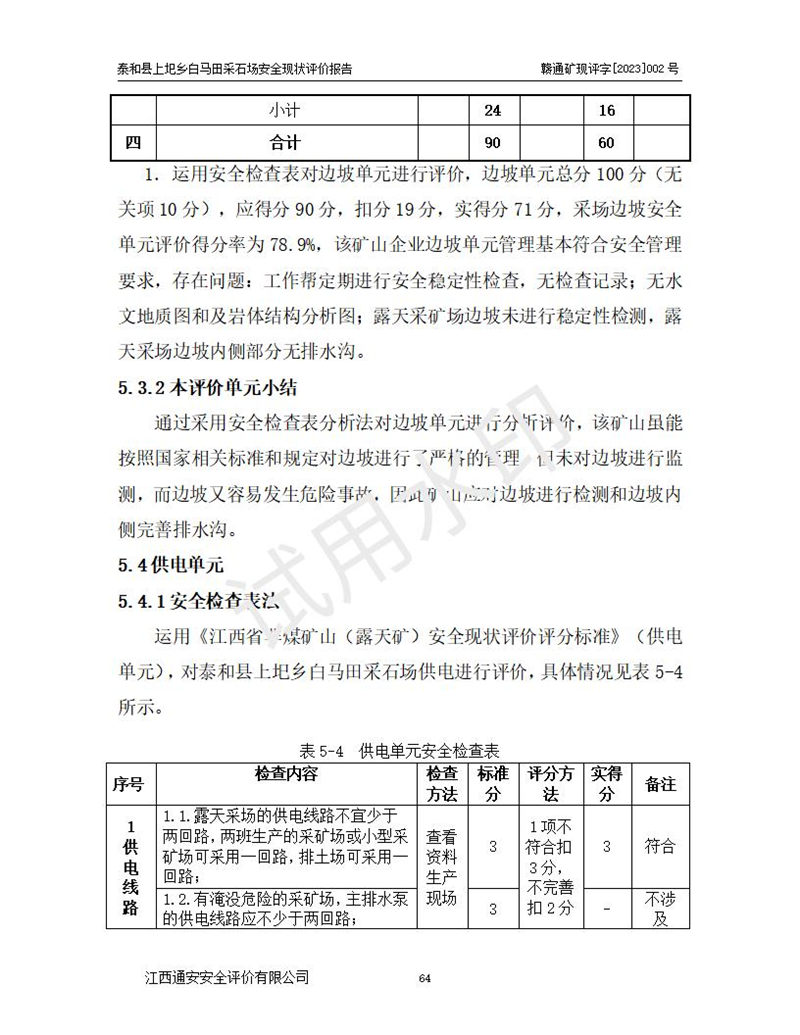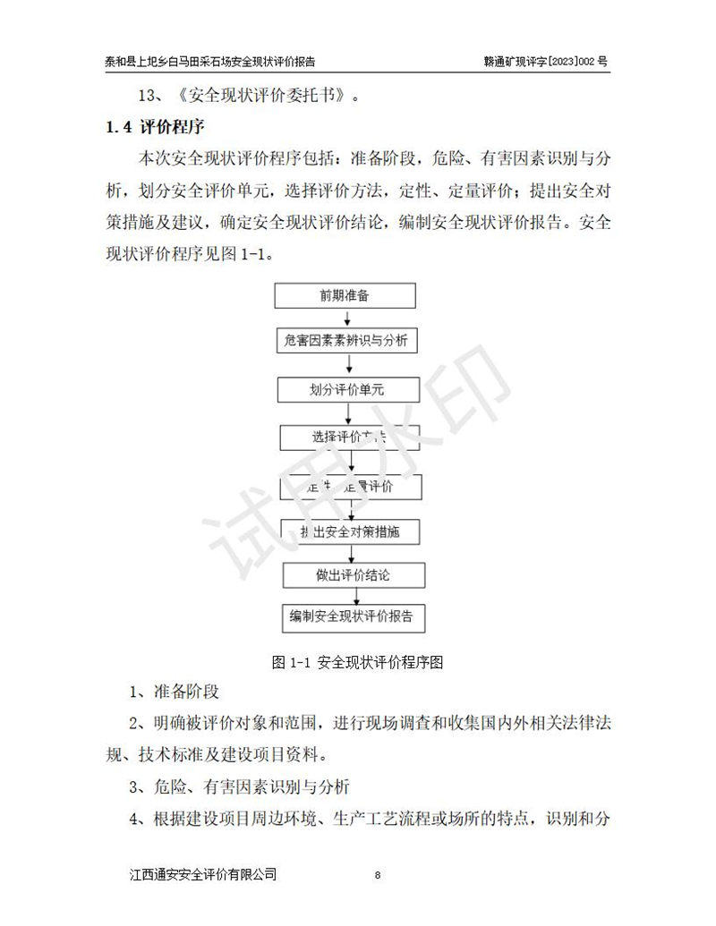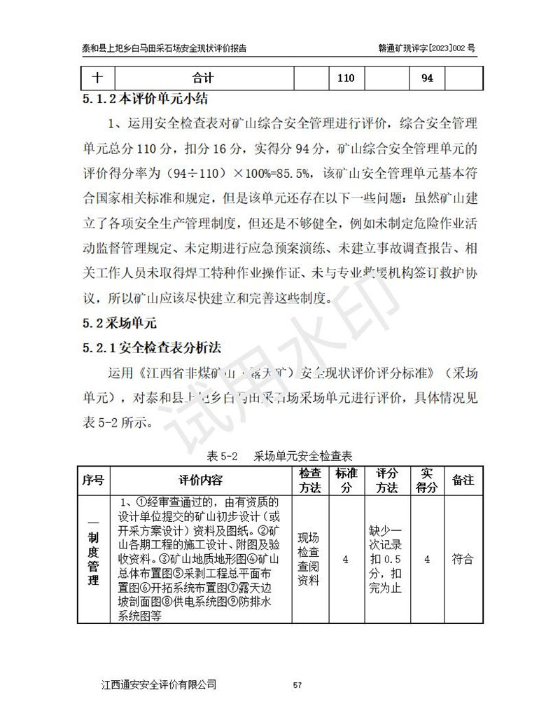 项目名称 | 泰和县上圯乡白马田采石场安全现状评价报告 | ||||