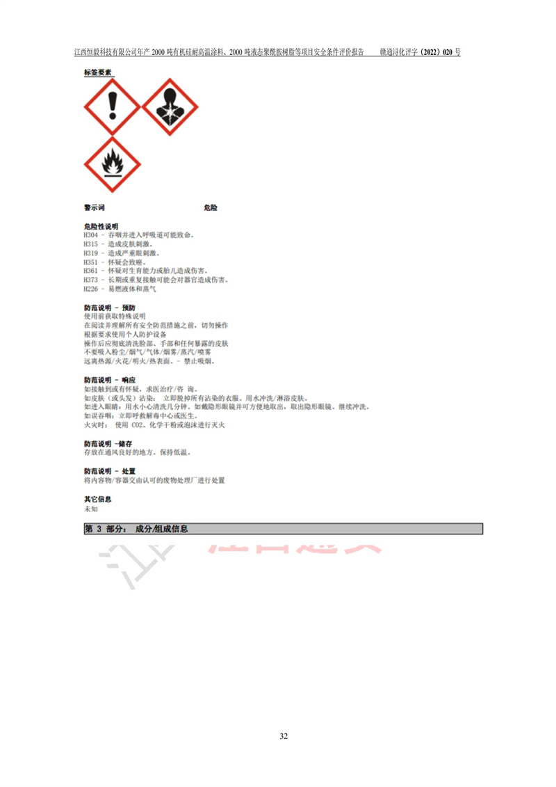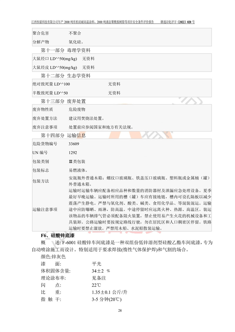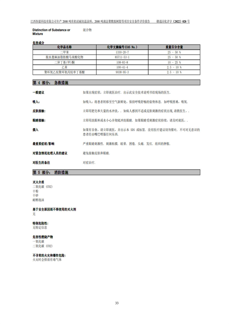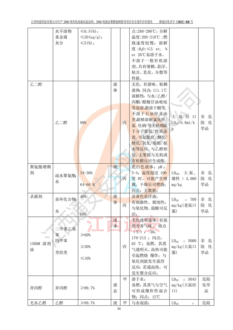 评价报告名称 | 江西恒毅科技有限公司年产2000吨有机硅耐高温涂料、2000吨液态聚酰胺树脂等项目安全条件评价报告 | ||||