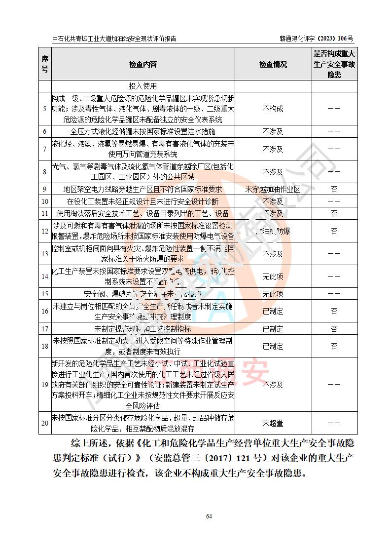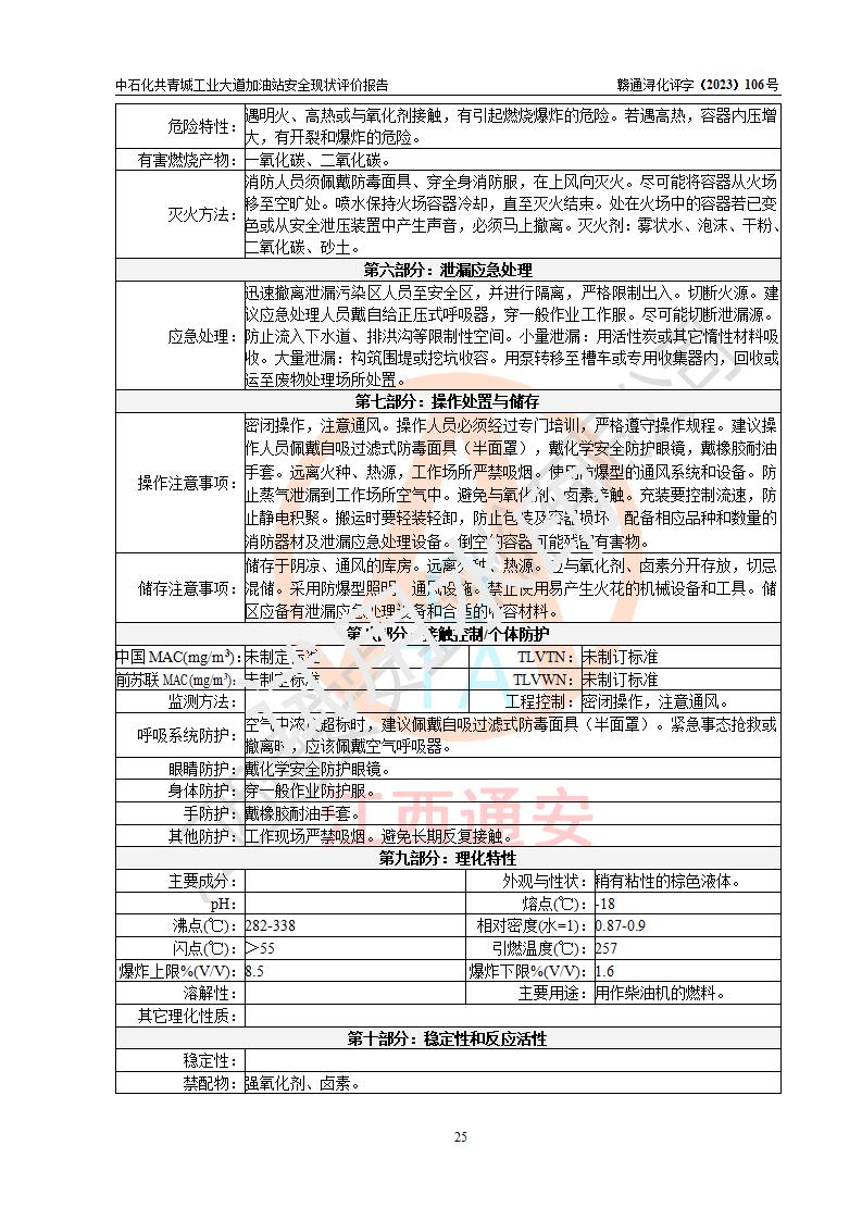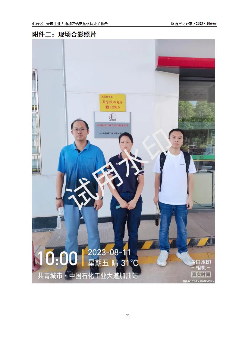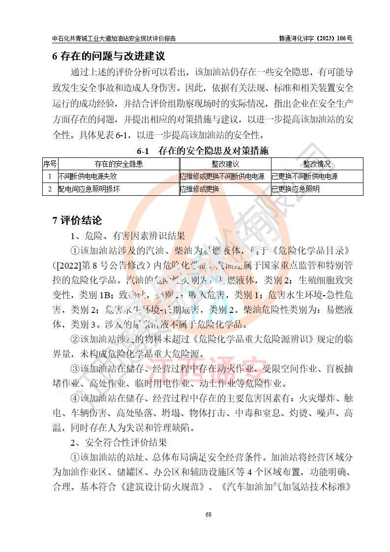 评价报告名称 | 中国石化销售股份有限公司江西九江共青城石油分公司工业大道加油站安全现状评价报告 | |||