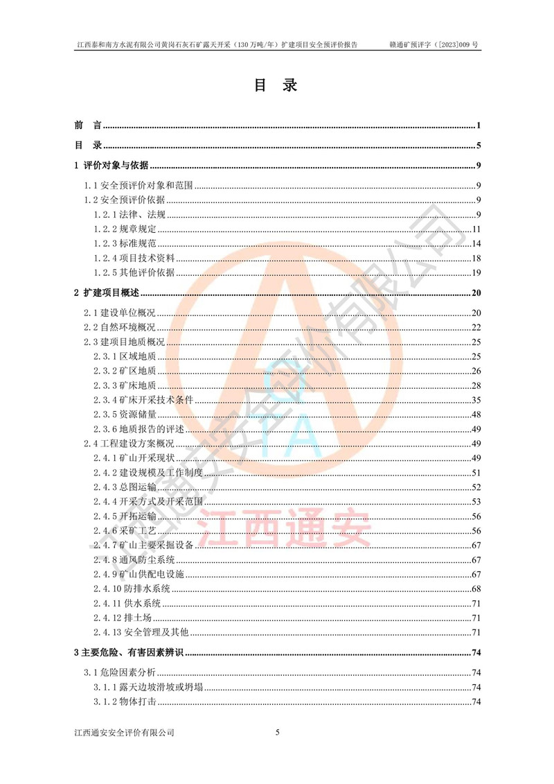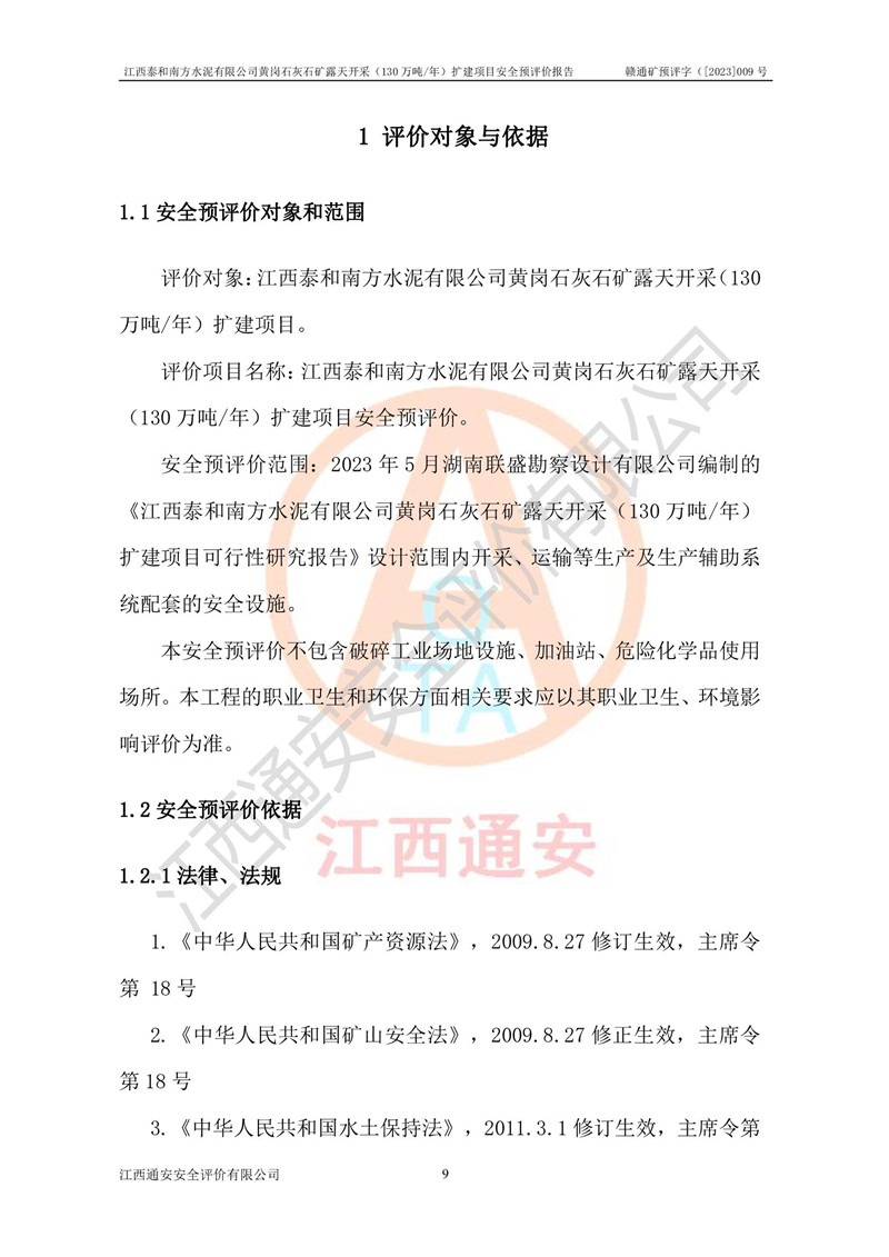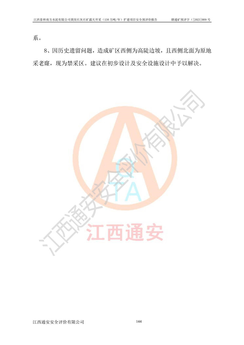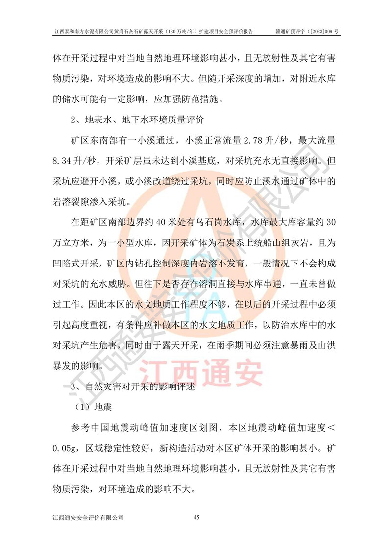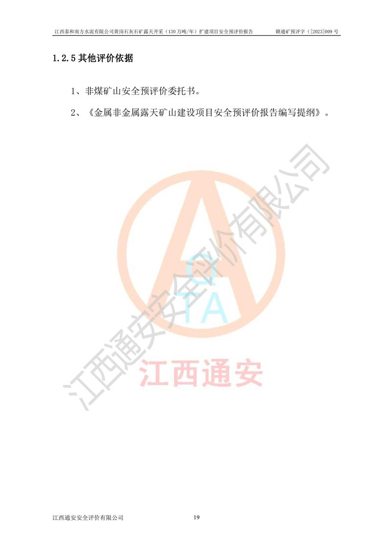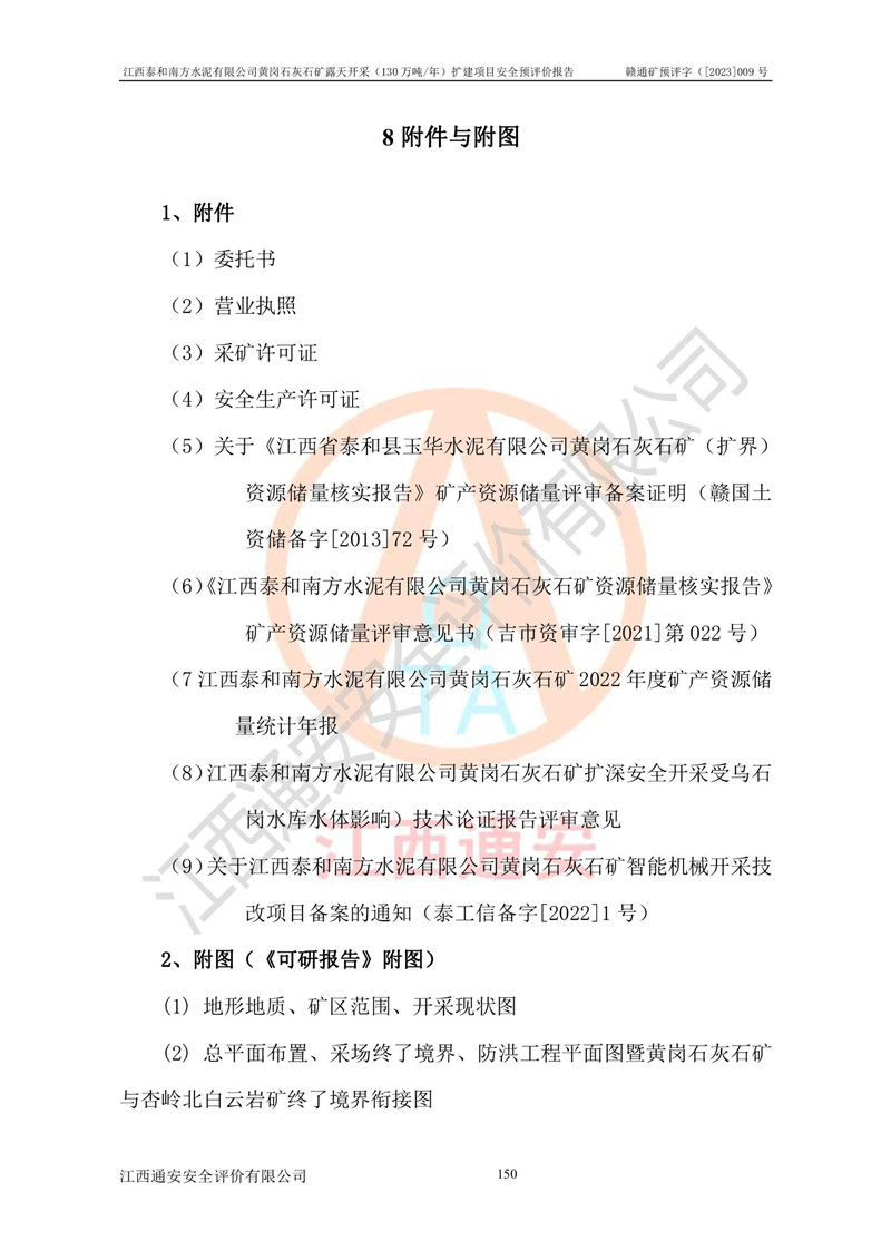 评价报告名称 | 江西泰和南方水泥有限公司黄岗石灰石矿露天开采(130万吨/年)扩建项目安全预评价报告 | ||||