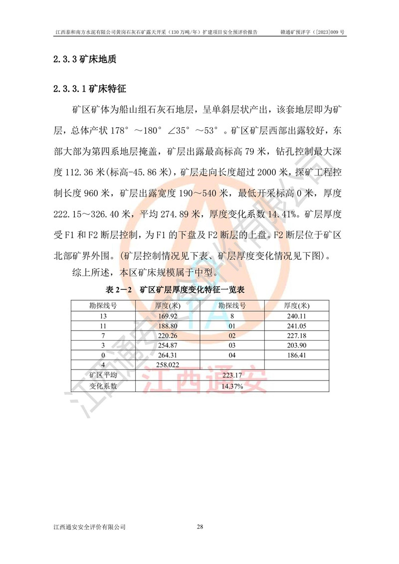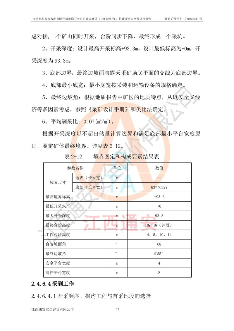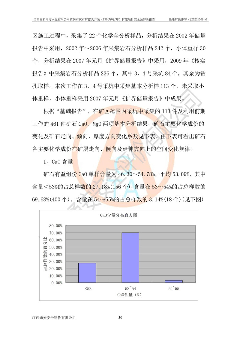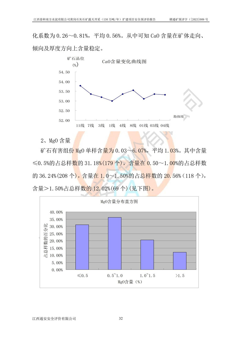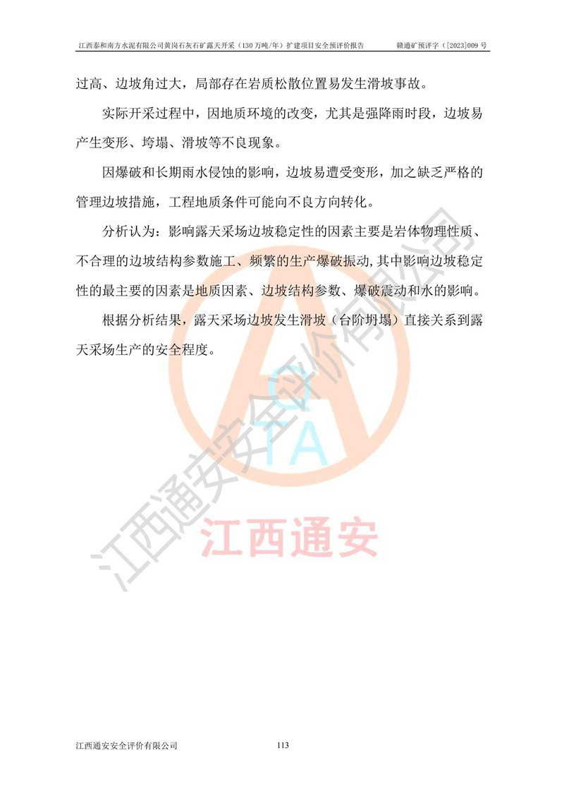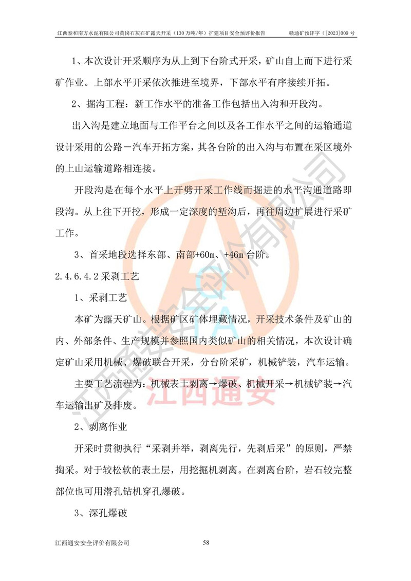 评价报告名称 | 江西泰和南方水泥有限公司黄岗石灰石矿露天开采(130万吨/年)扩建项目安全预评价报告 | ||||