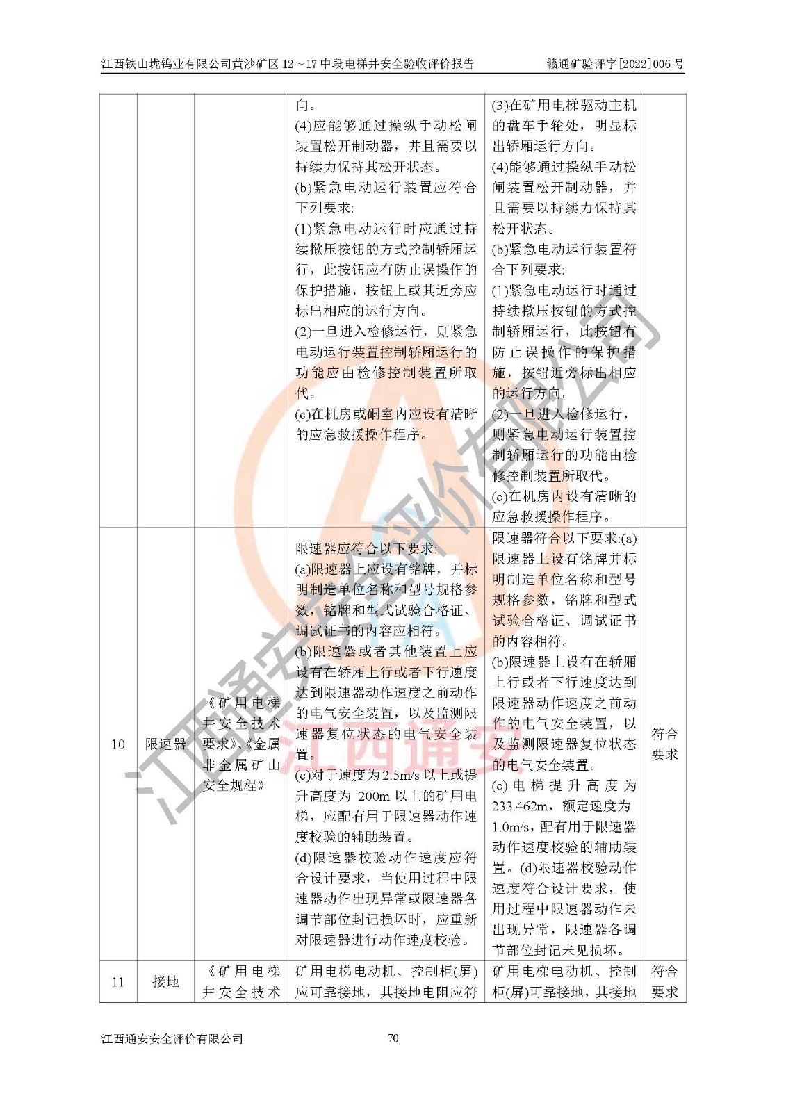 项目名称 | 江西铁山垅钨业有限公司黄沙矿区12~17中段电梯井验收评价报告 | ||||