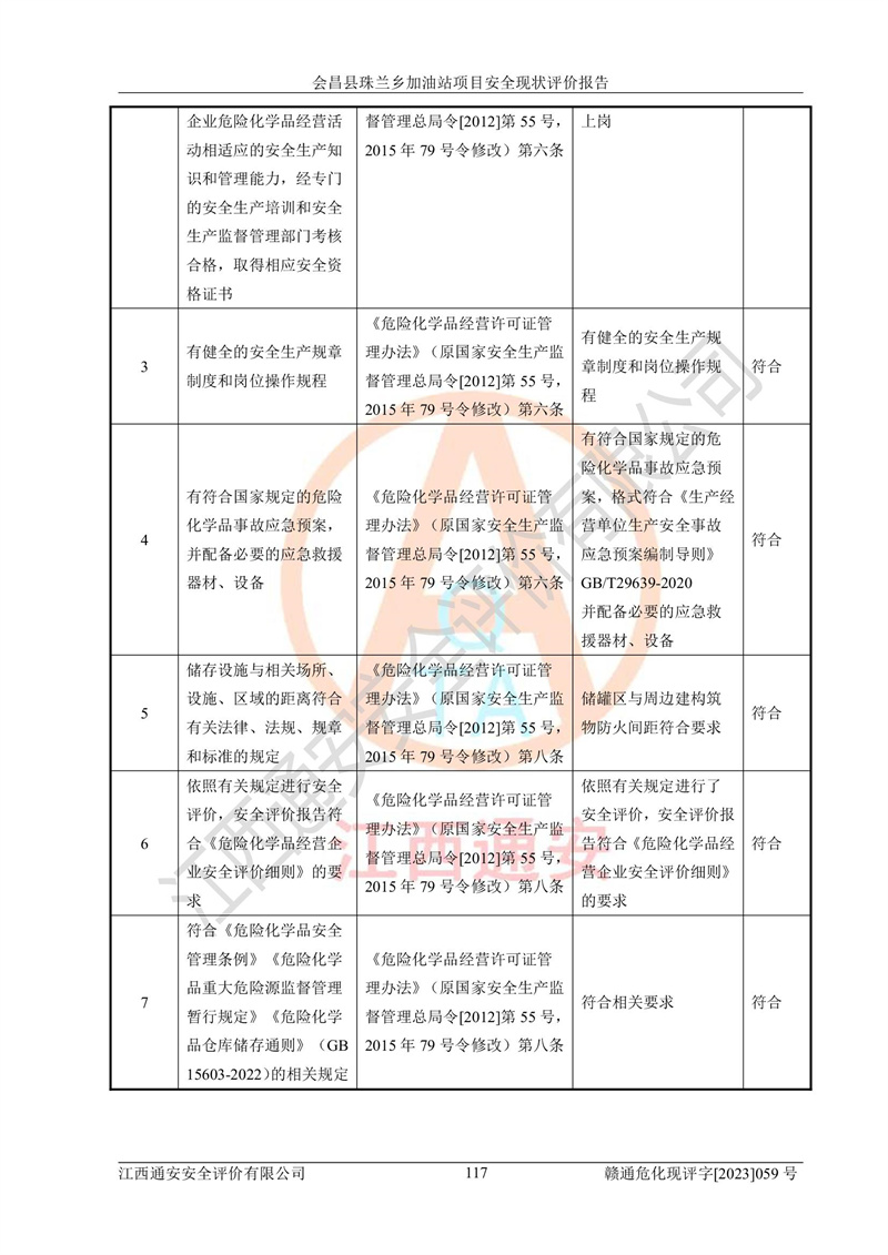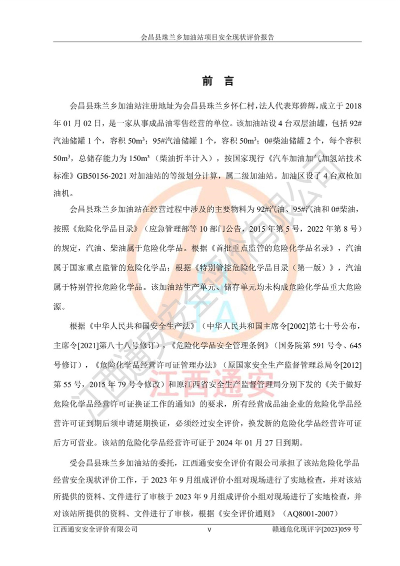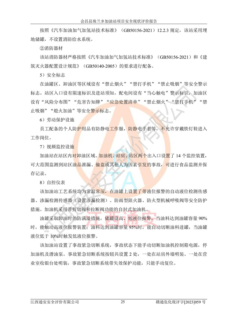 项目名称 | 会昌县珠兰乡加油站安全现状评价报告 | ||||