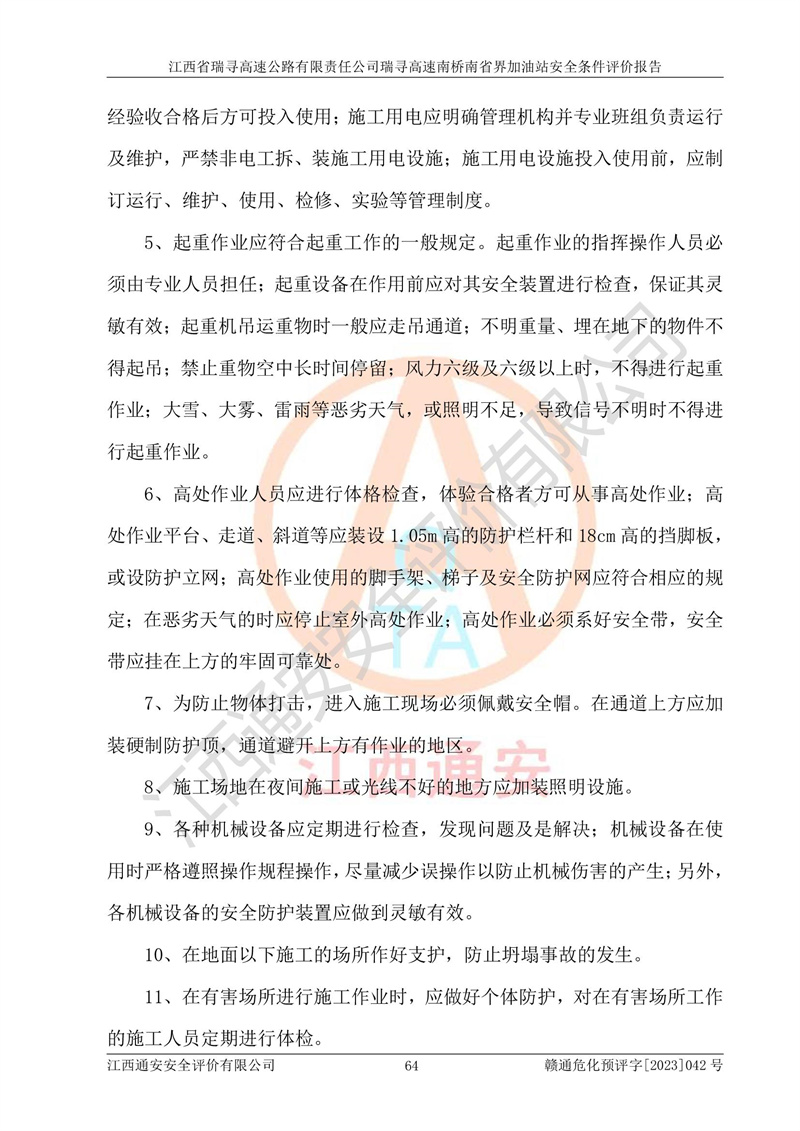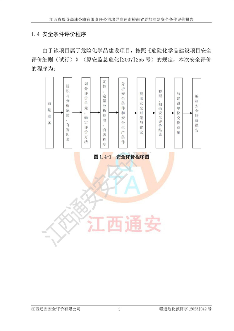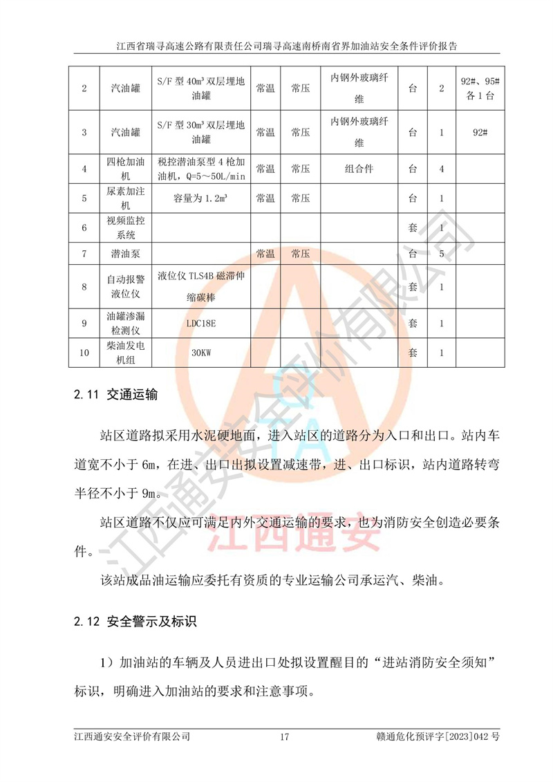 评价报告名称 | 江西省瑞寻高速公路有限责任公司 瑞寻高速南桥南省界加油站安全条件评价报告 | |||