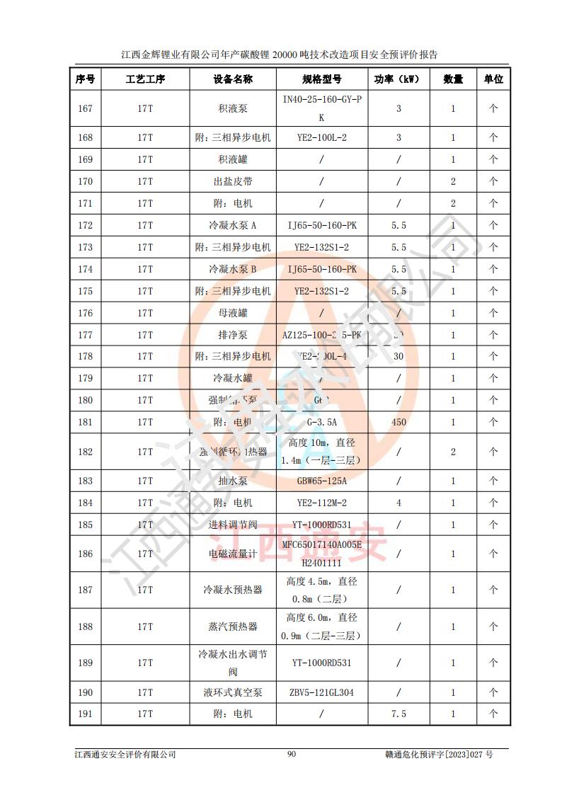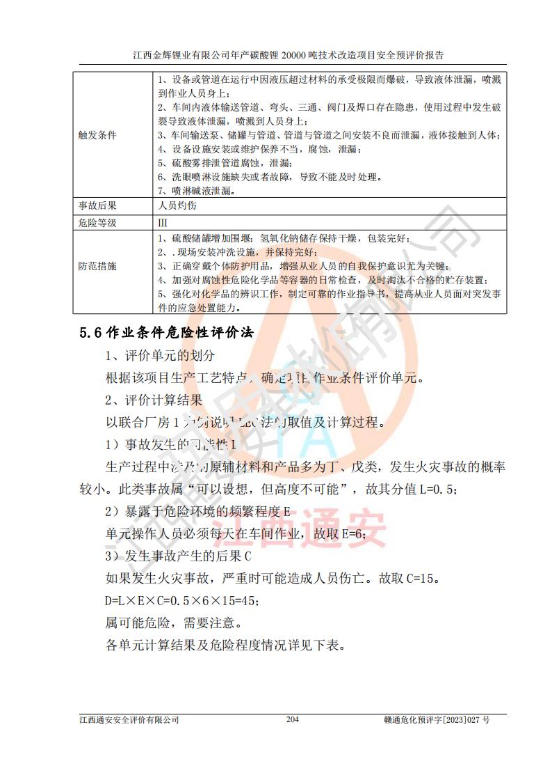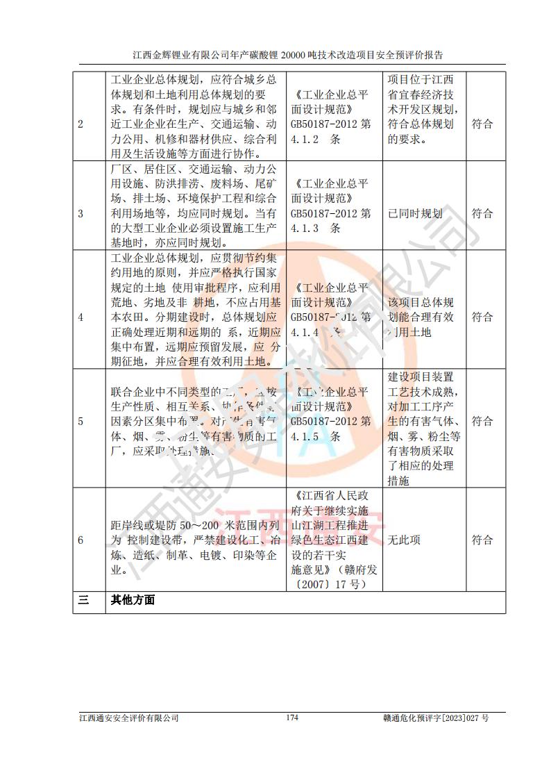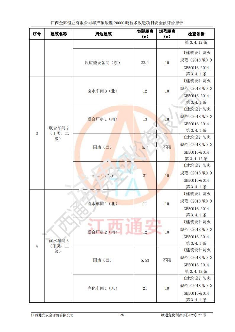 项目名称 | 江西金辉锂业有限公司年产碳酸锂20000吨技术改造项目安全预评价报告 | ||||