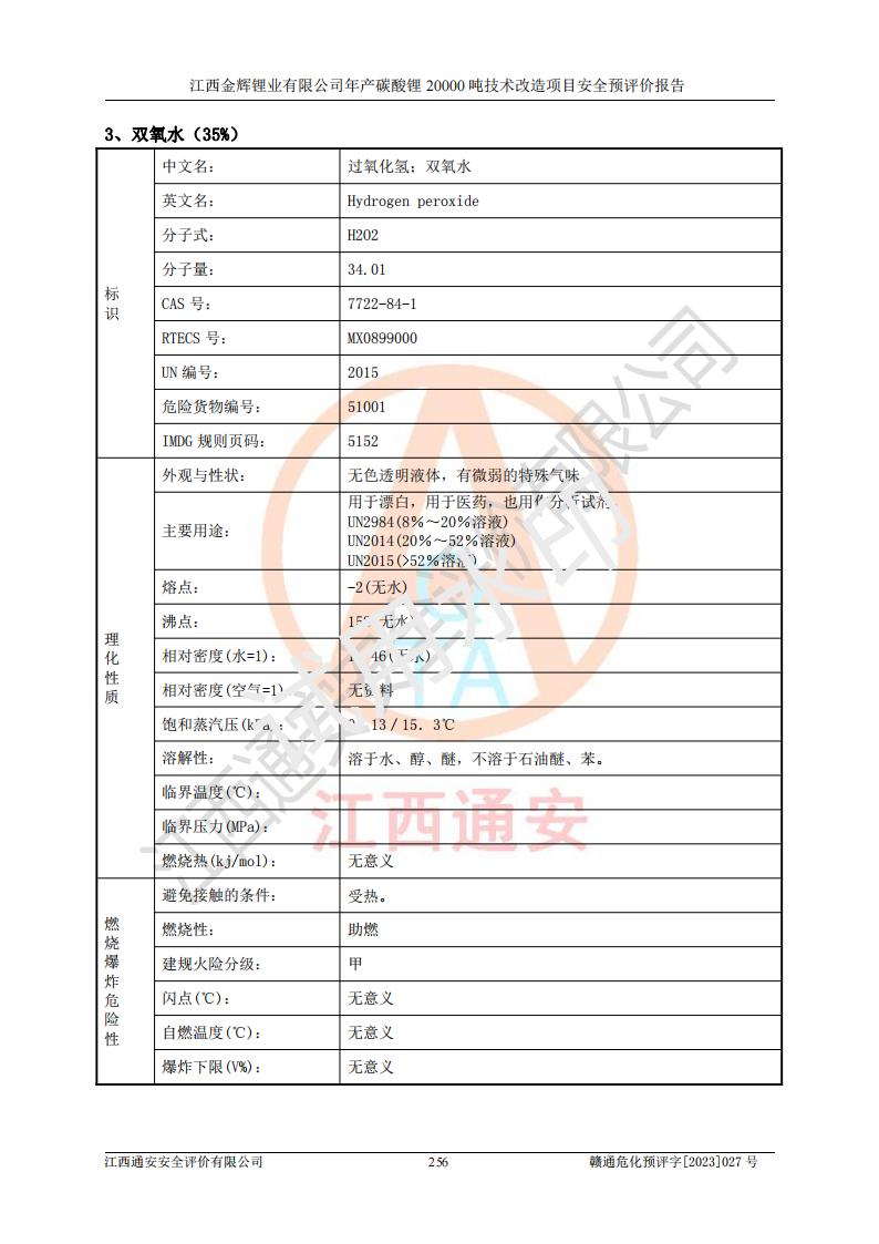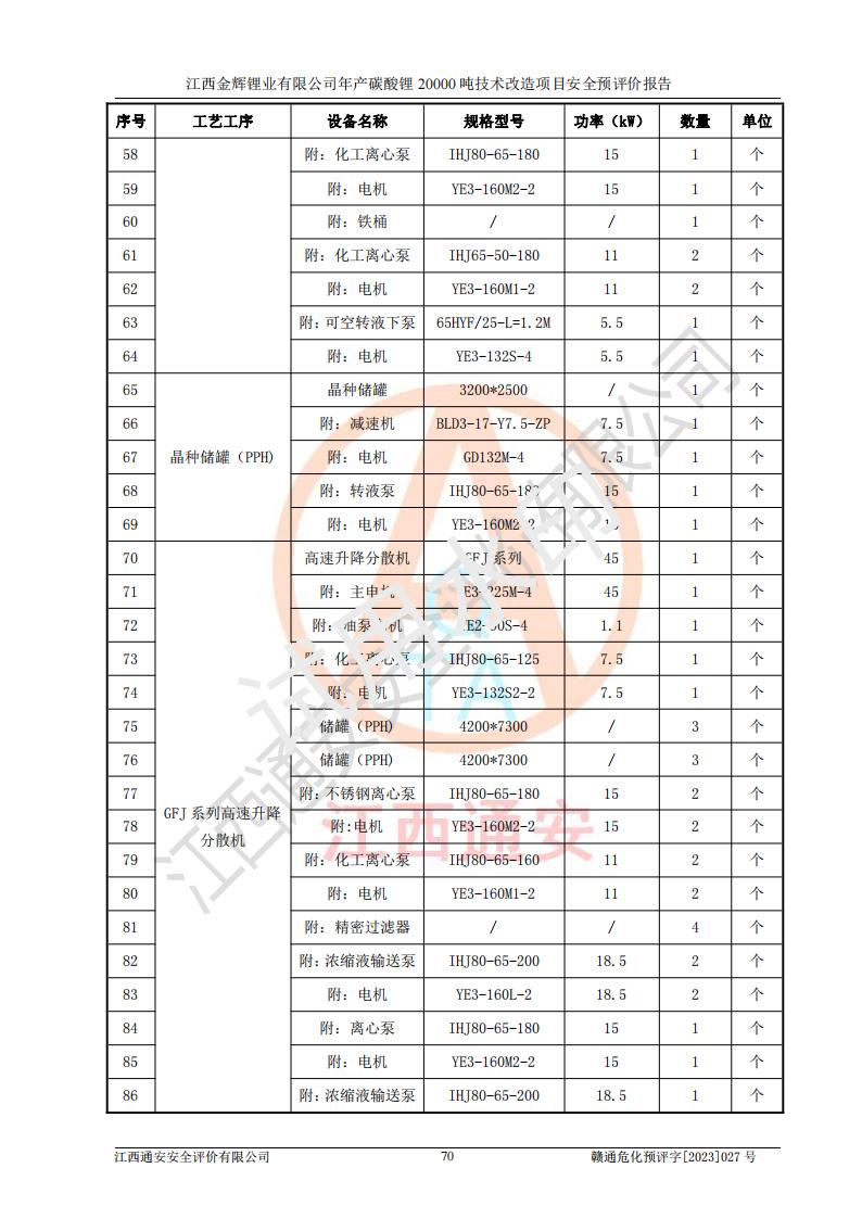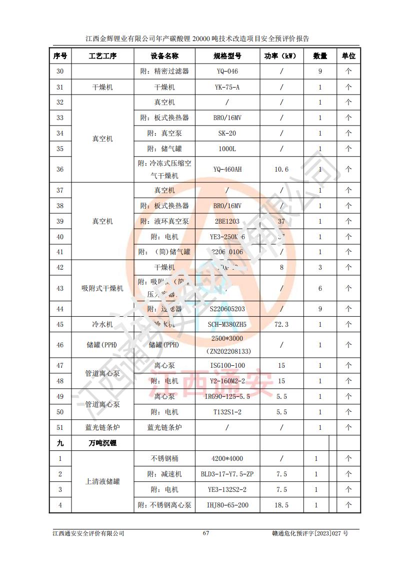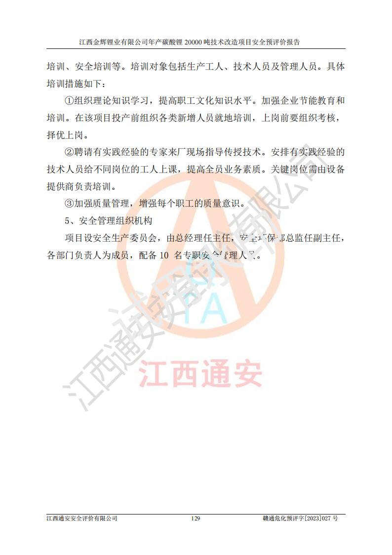 项目名称 | 江西金辉锂业有限公司年产碳酸锂20000吨技术改造项目安全预评价报告 | ||||