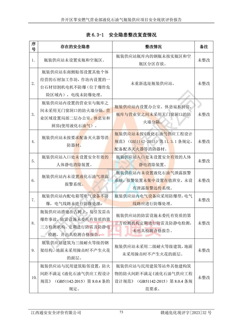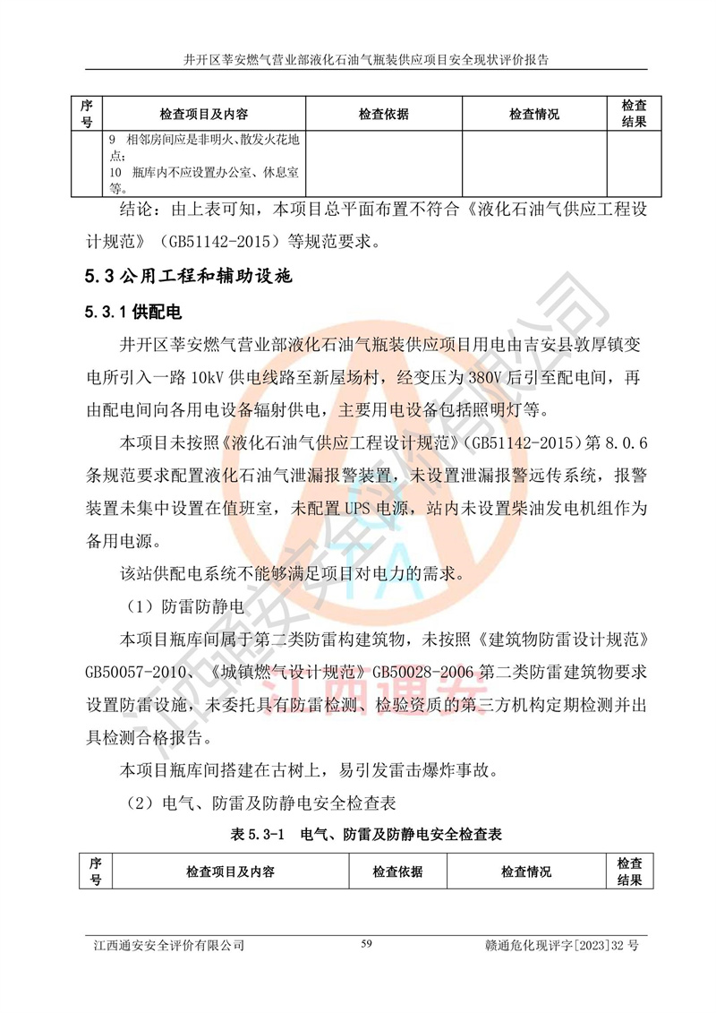 项目名称 | 井开区莘安燃气营业部液化石油气瓶装供应项目安全现状评价报告 | ||||