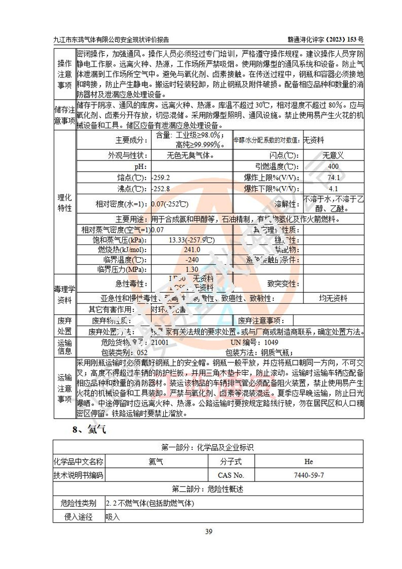评价报告名称 | 九江市东鸿气体有限公司安全现状评价报告 | ||||||