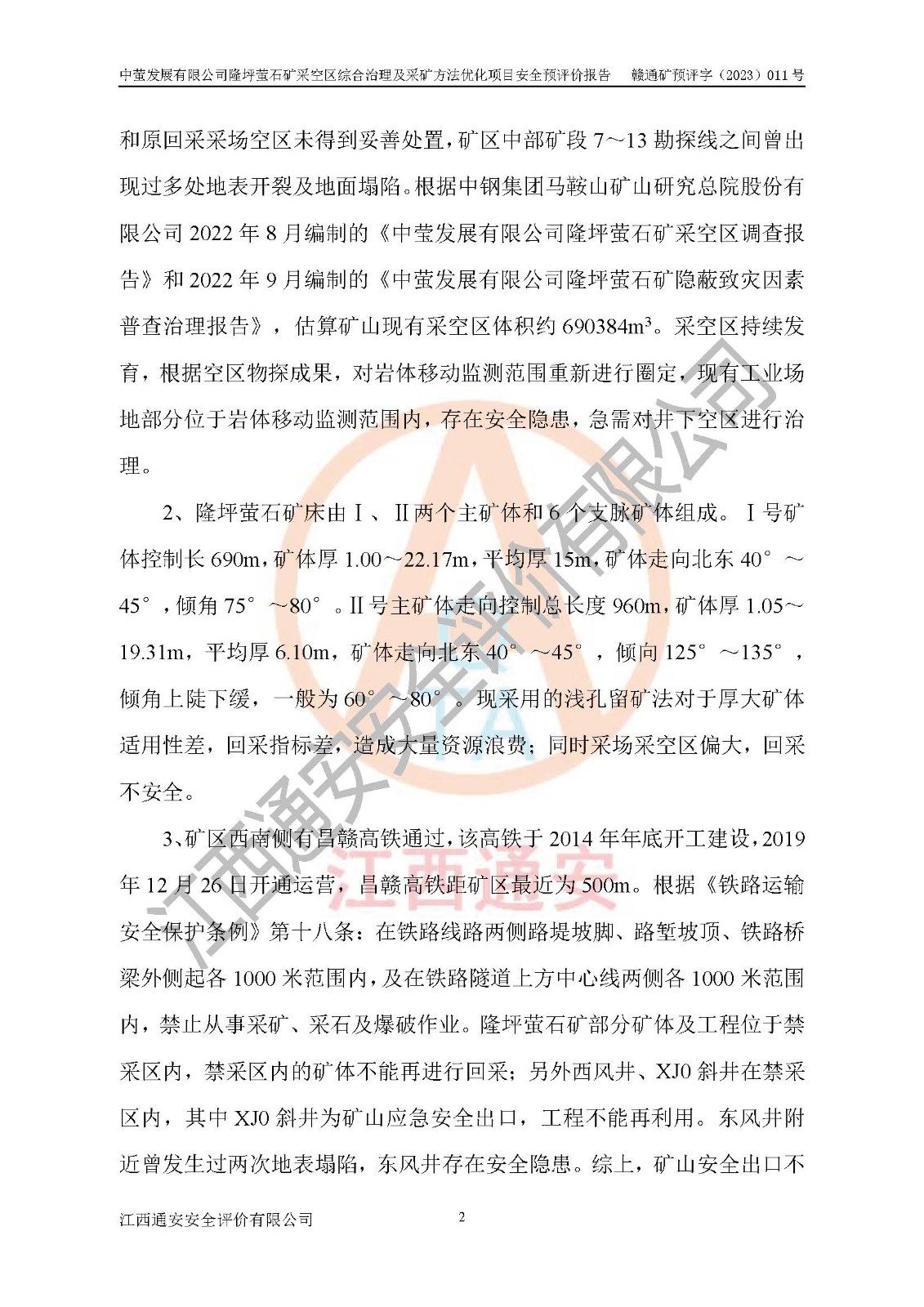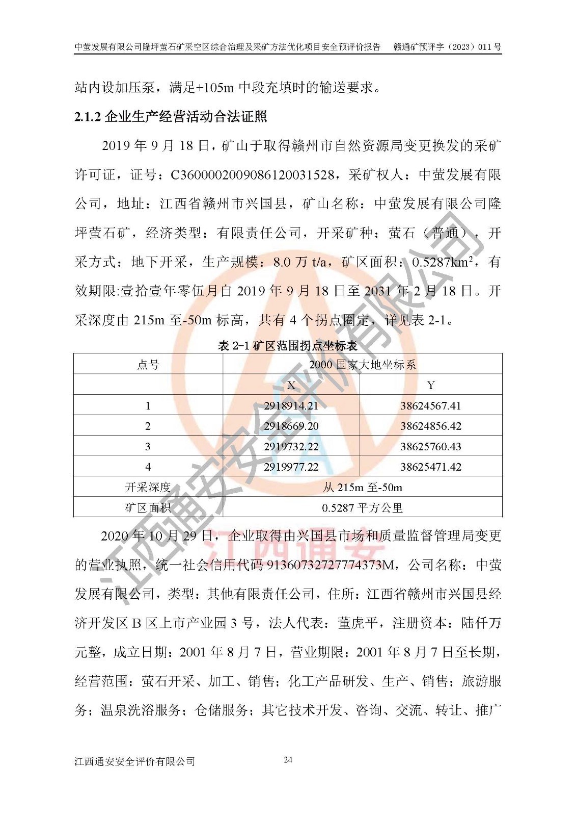 项目名称 | 中萤发展有限公司隆坪萤石矿采空区综合治理及采矿方法优化项目安全预评价 | ||||