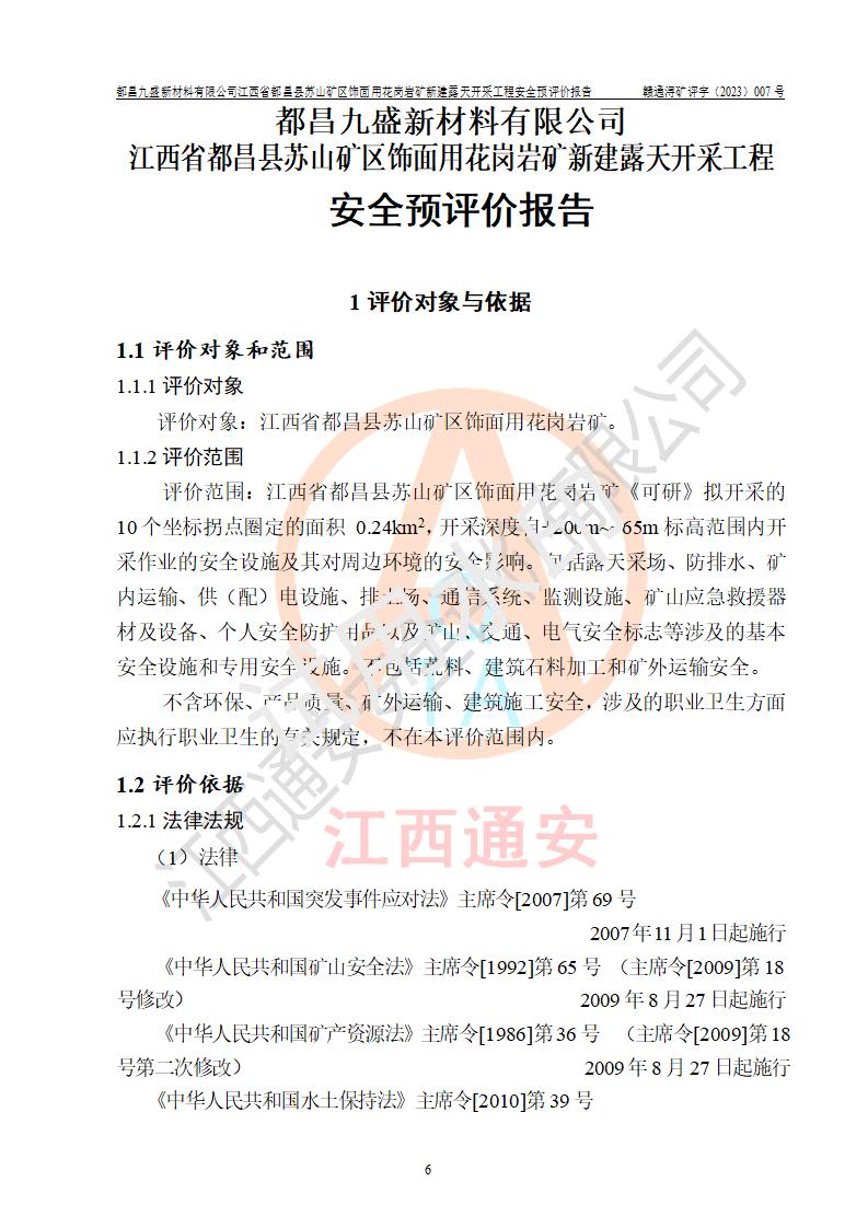 评价报告名称 | 都昌九盛新材料有限公司江西省都昌县苏山矿区饰面用花岗岩矿新建露天开采工程安全预评价报告 | |||||