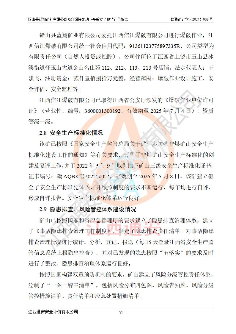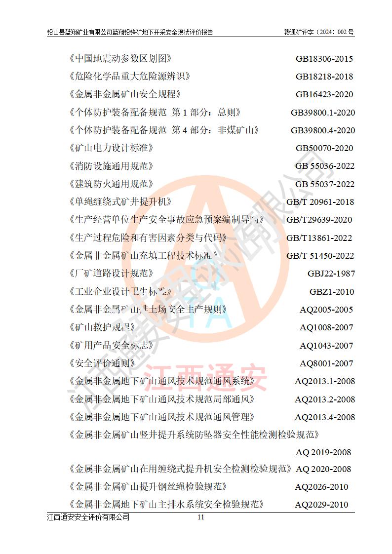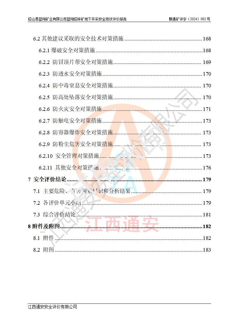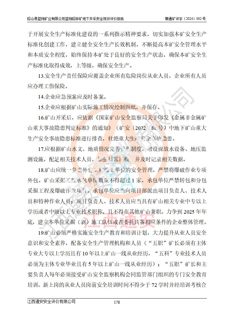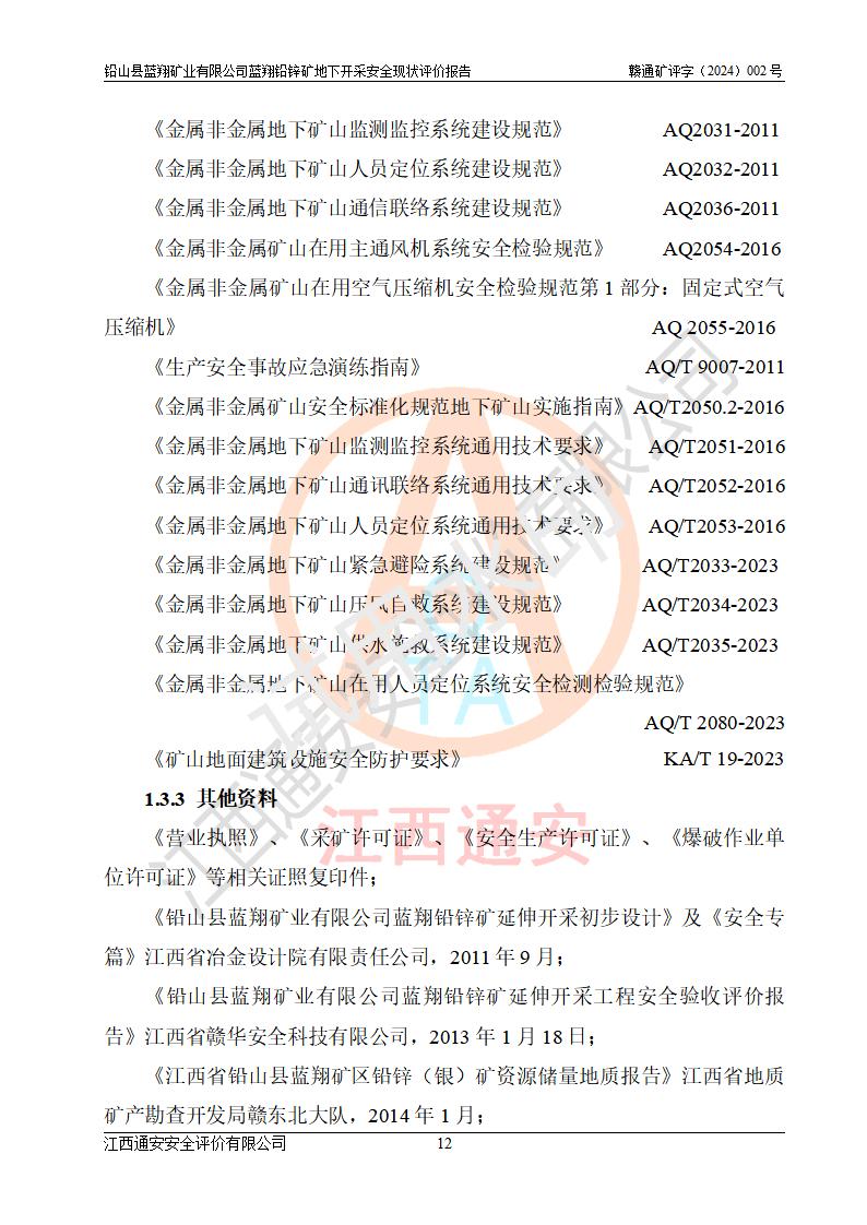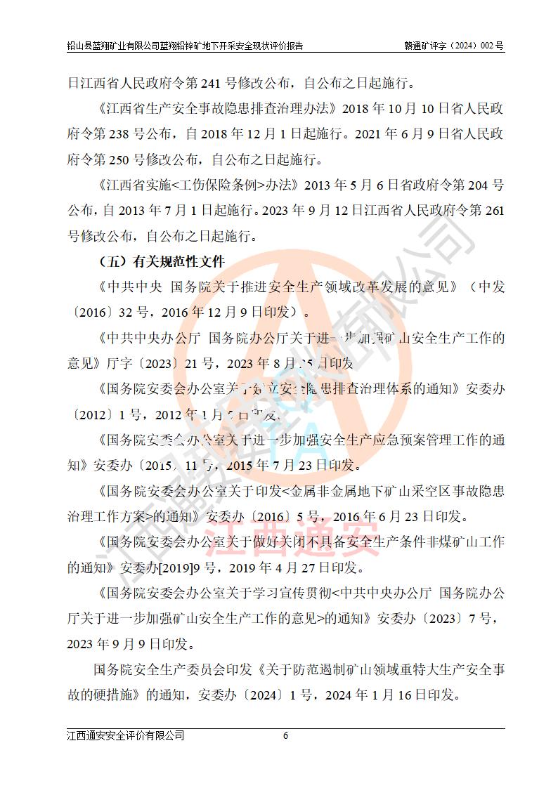 报告名称 | 铅山县蓝翔矿业有限公司蓝翔铅锌矿地下开采安全现状评价报告 | |||||