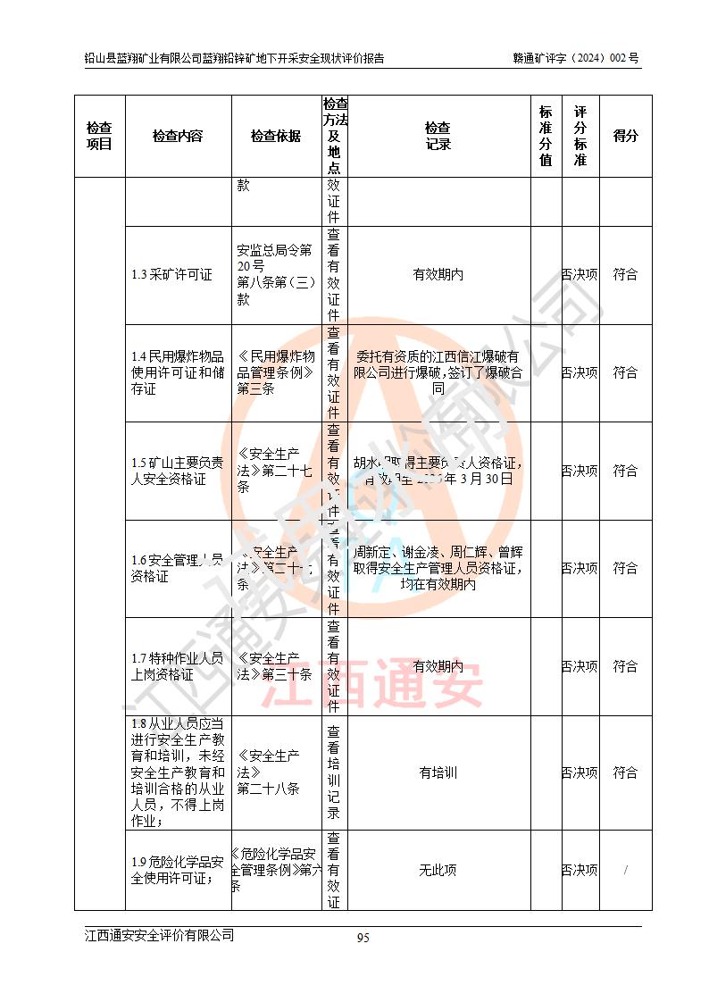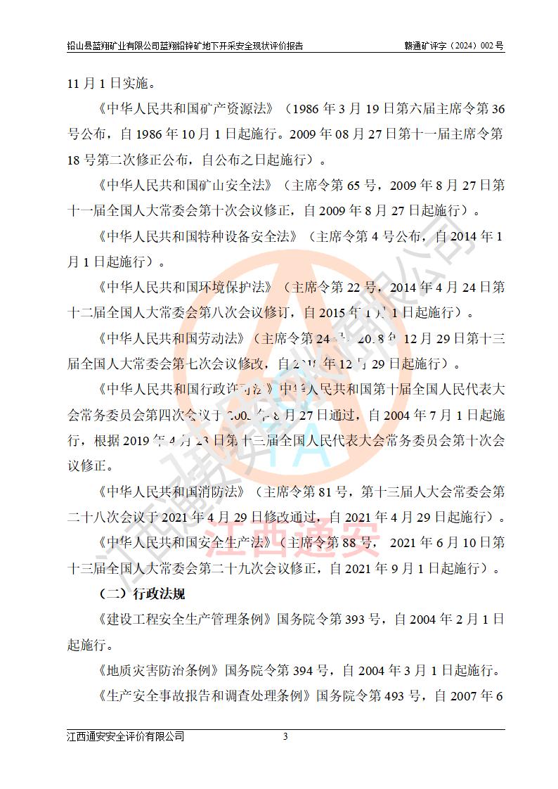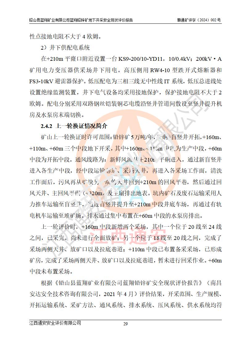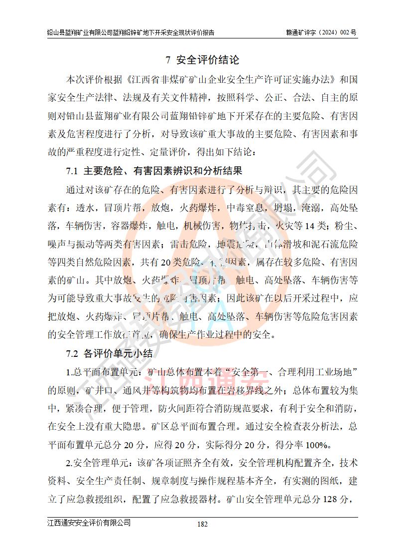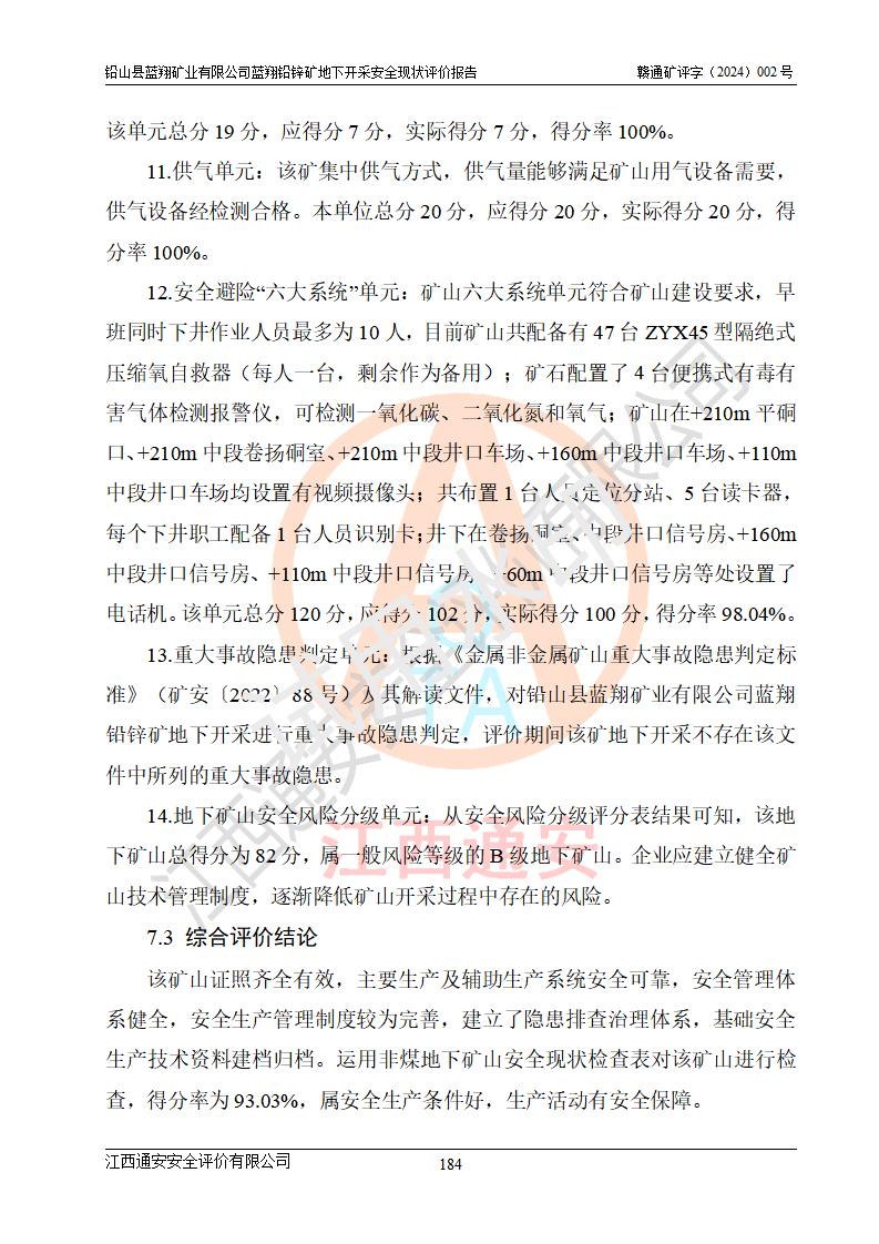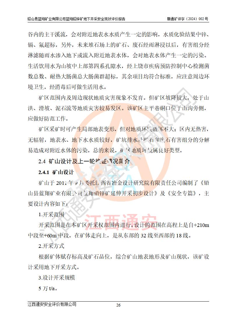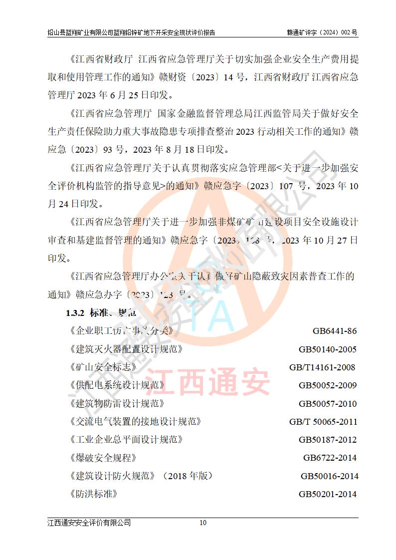 报告名称 | 铅山县蓝翔矿业有限公司蓝翔铅锌矿地下开采安全现状评价报告 | |||||