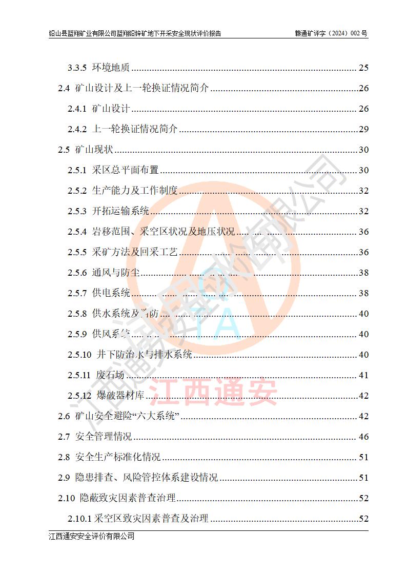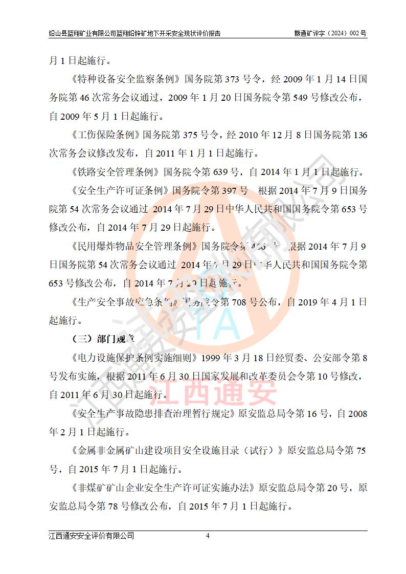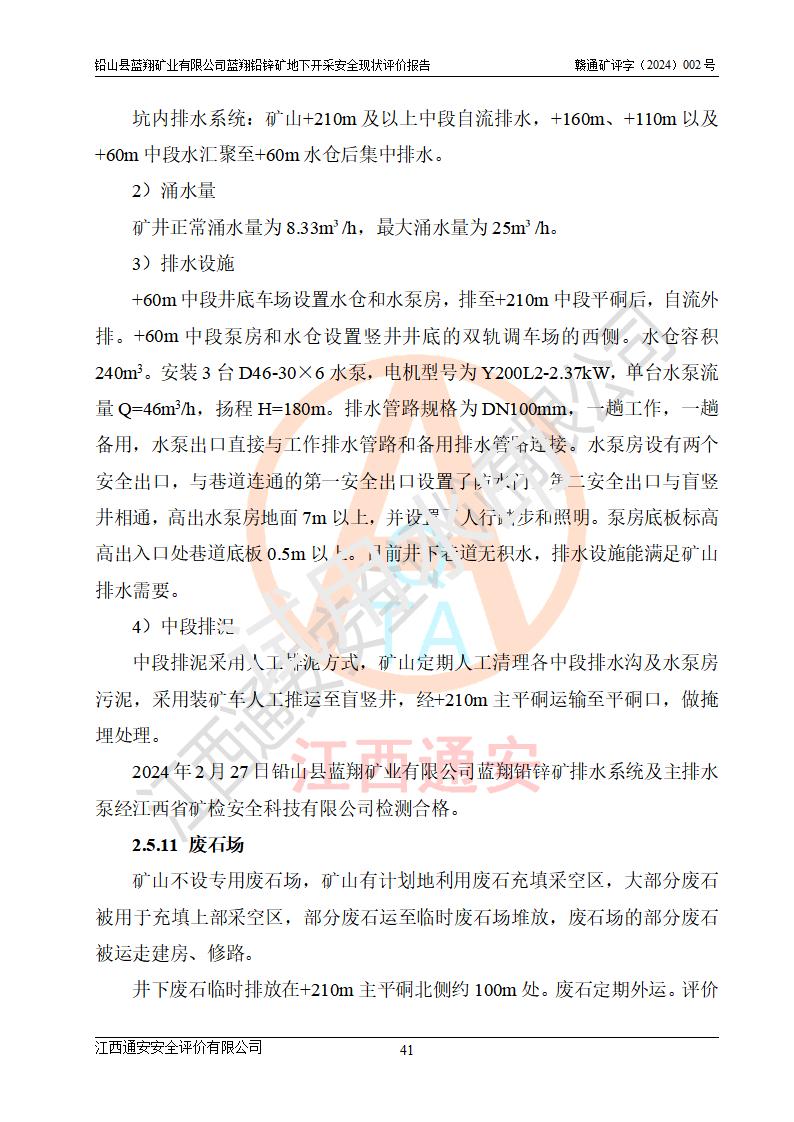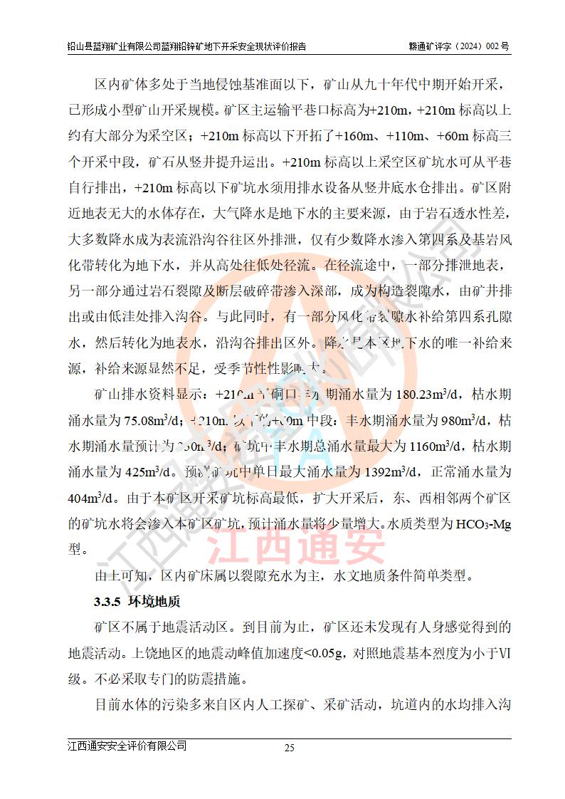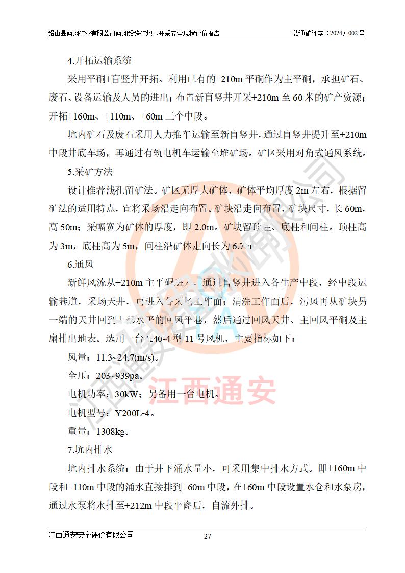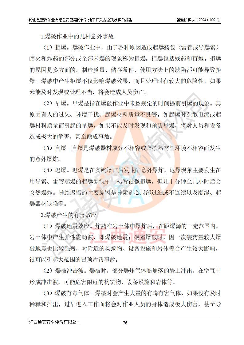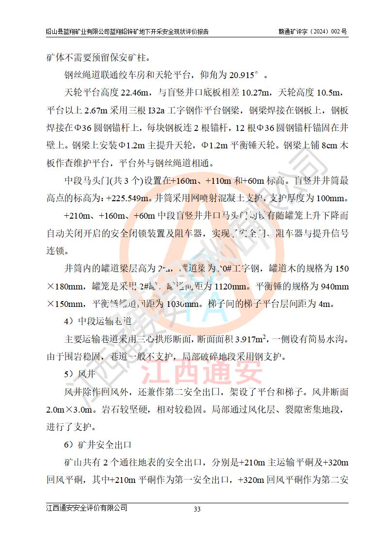 报告名称 | 铅山县蓝翔矿业有限公司蓝翔铅锌矿地下开采安全现状评价报告 | |||||