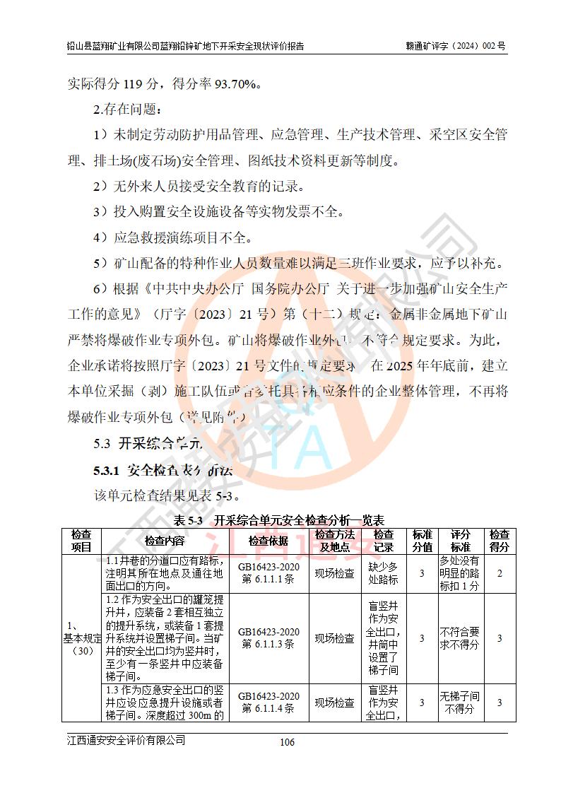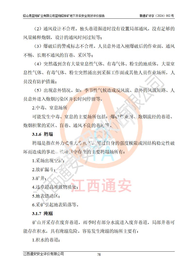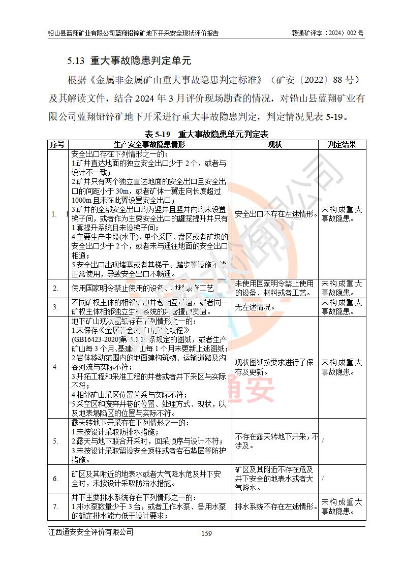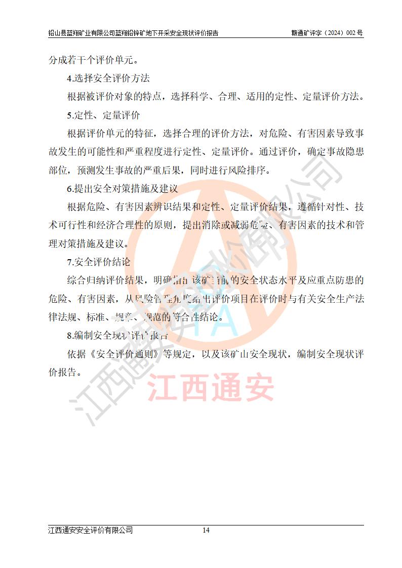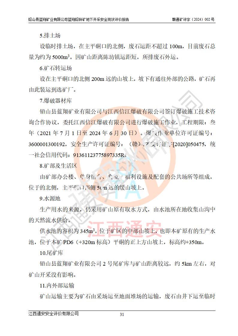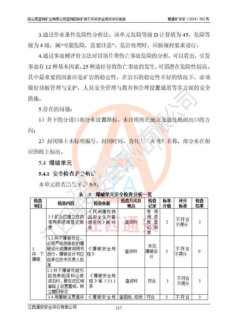 报告名称 | 铅山县蓝翔矿业有限公司蓝翔铅锌矿地下开采安全现状评价报告 | |||||