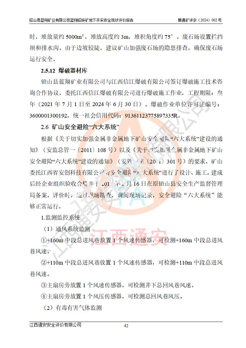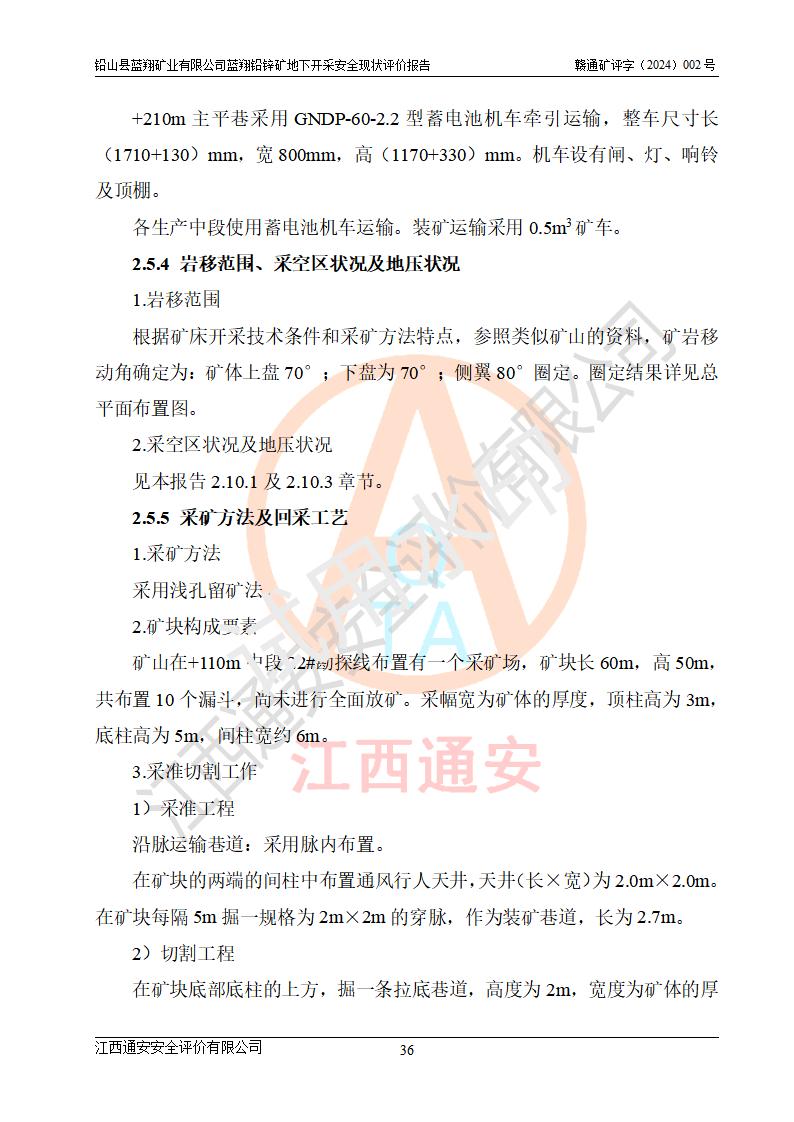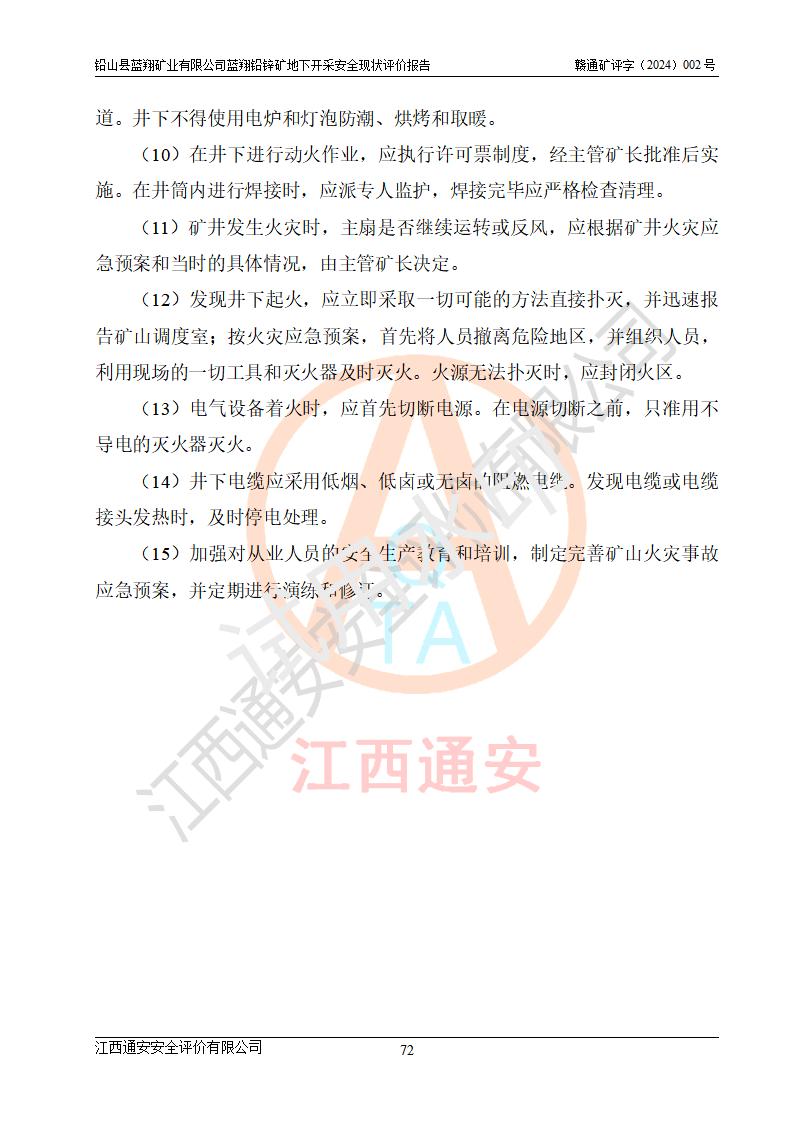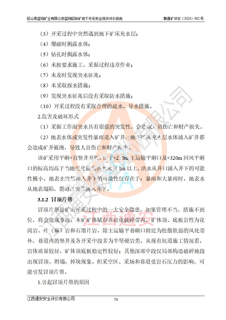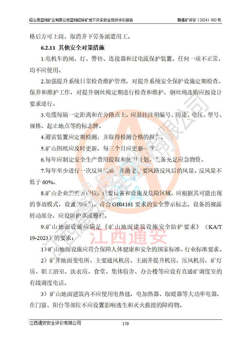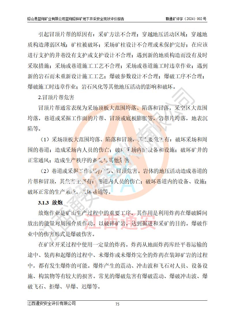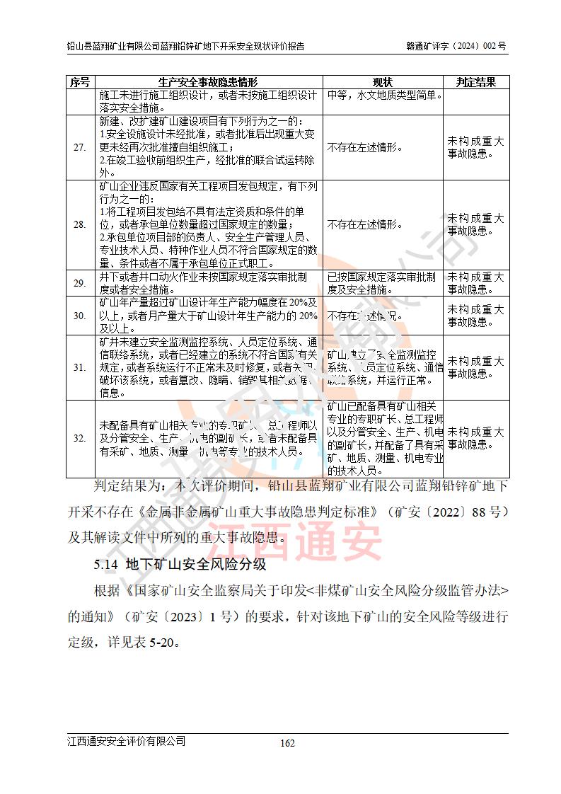 报告名称 | 铅山县蓝翔矿业有限公司蓝翔铅锌矿地下开采安全现状评价报告 | |||||