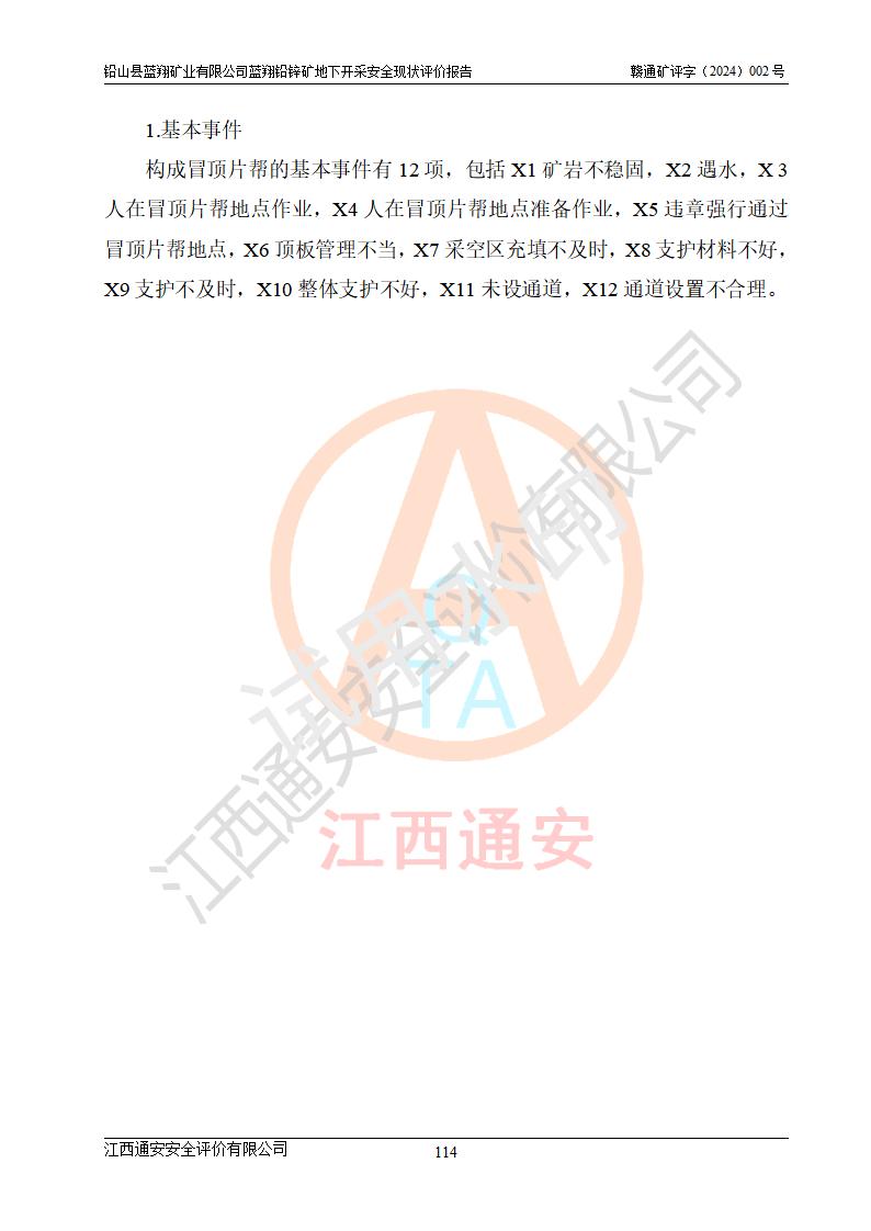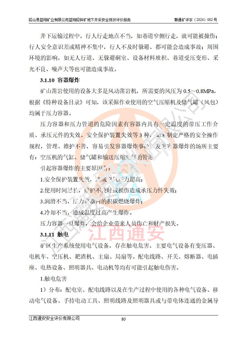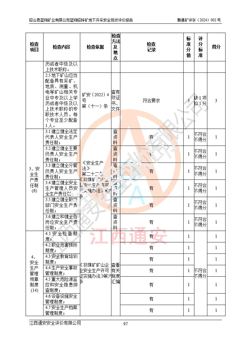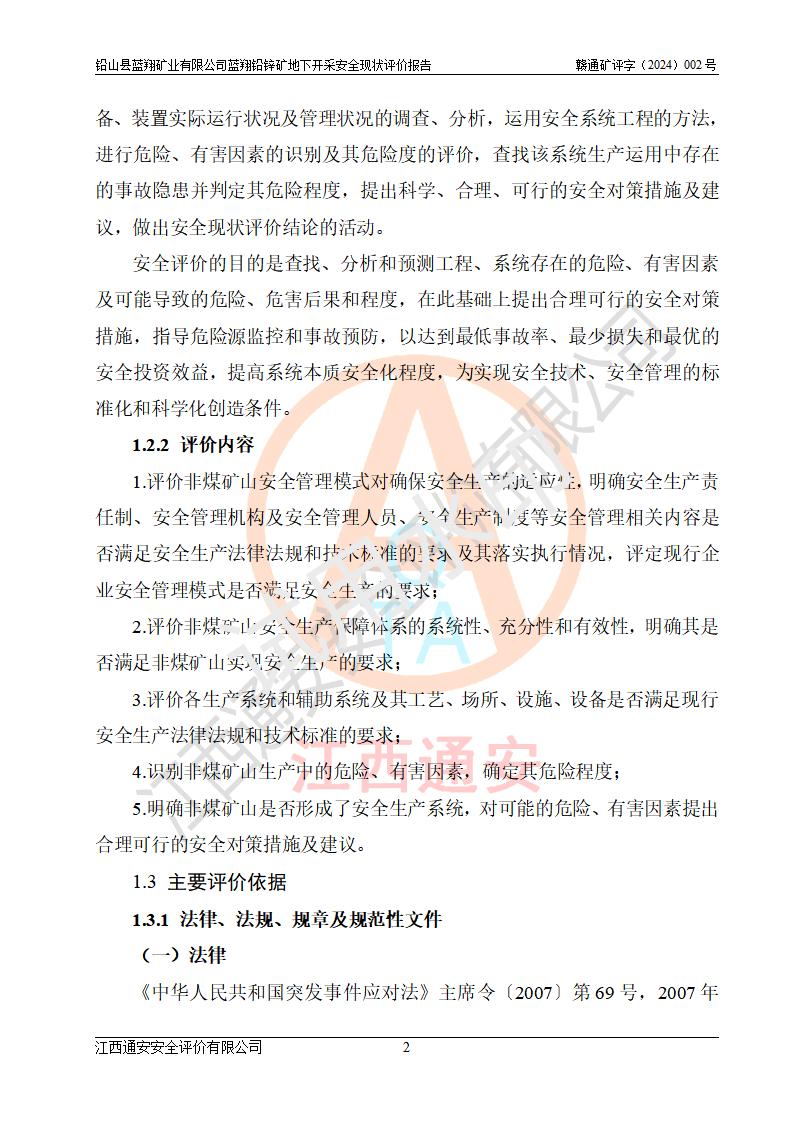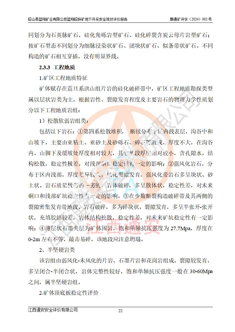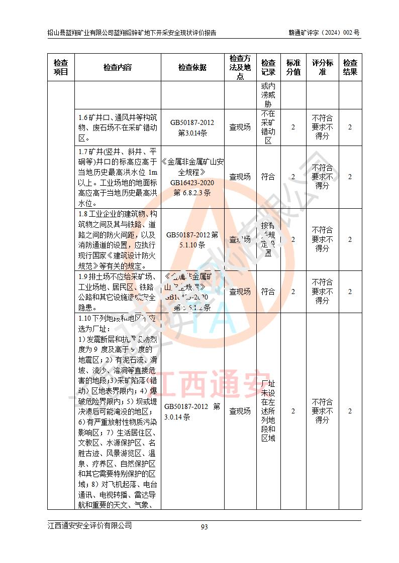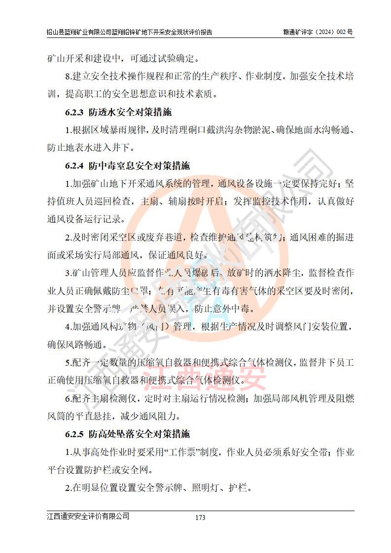 报告名称 | 铅山县蓝翔矿业有限公司蓝翔铅锌矿地下开采安全现状评价报告 | |||||