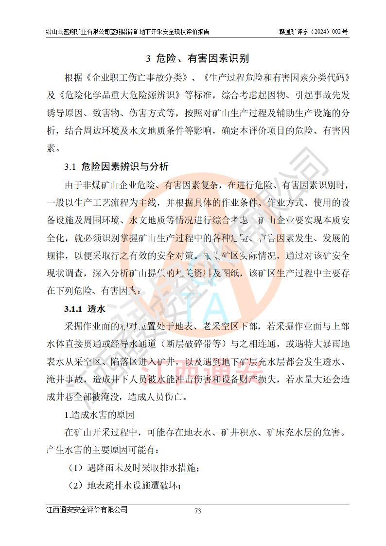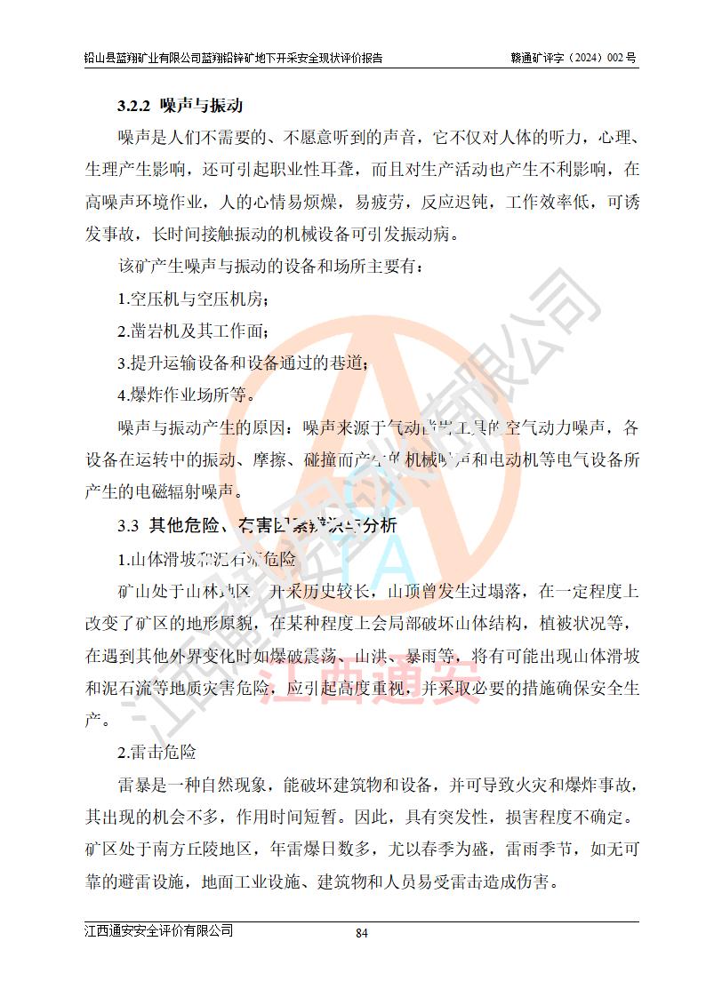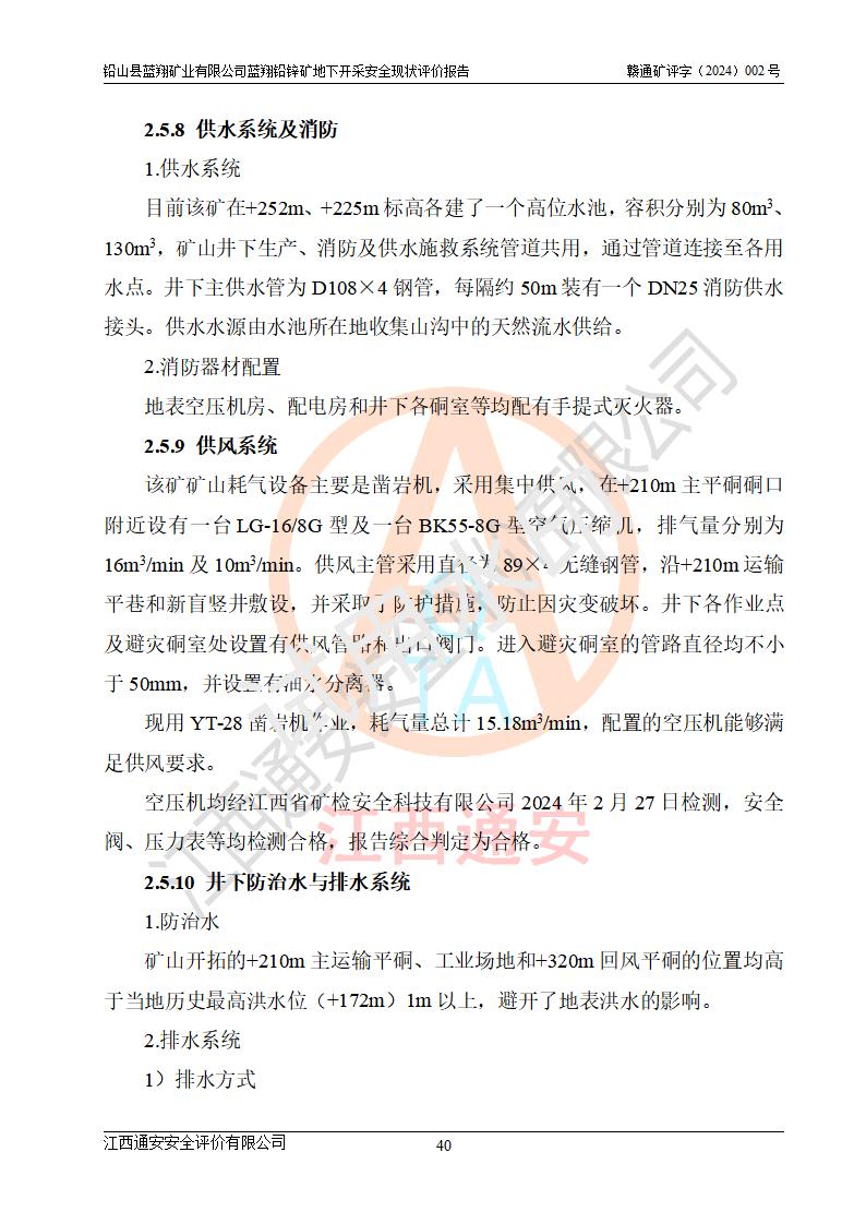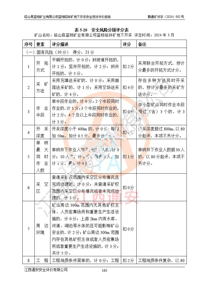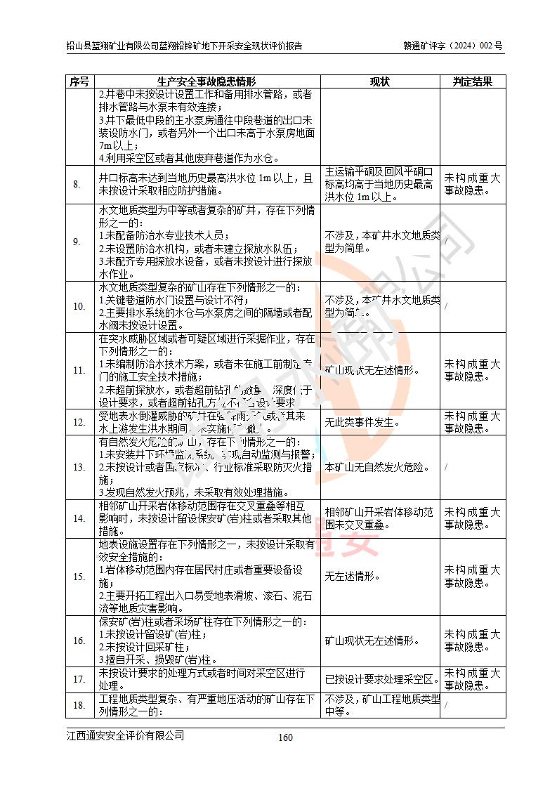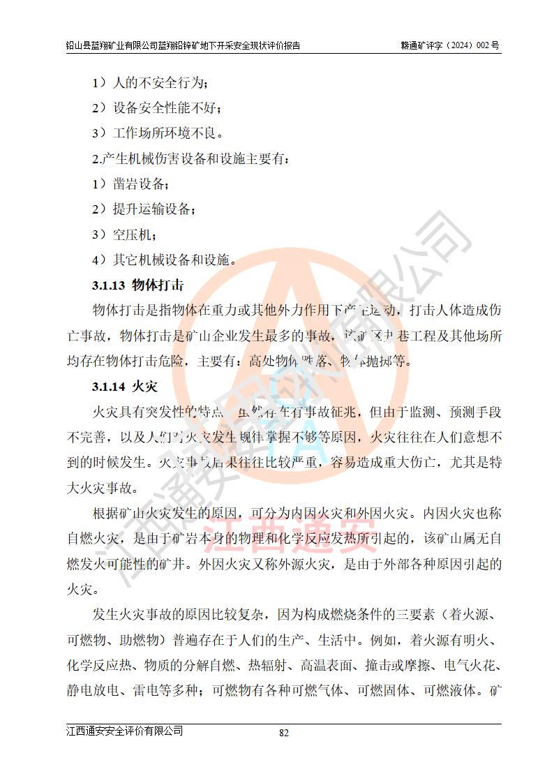 报告名称 | 铅山县蓝翔矿业有限公司蓝翔铅锌矿地下开采安全现状评价报告 | |||||