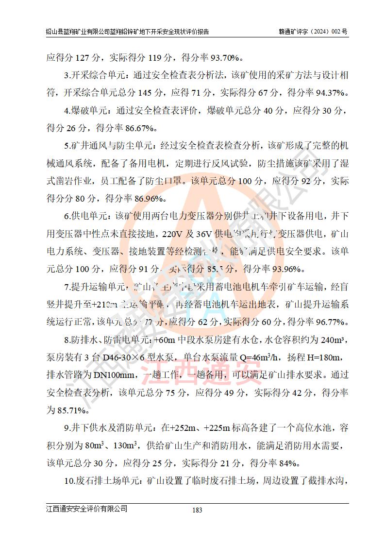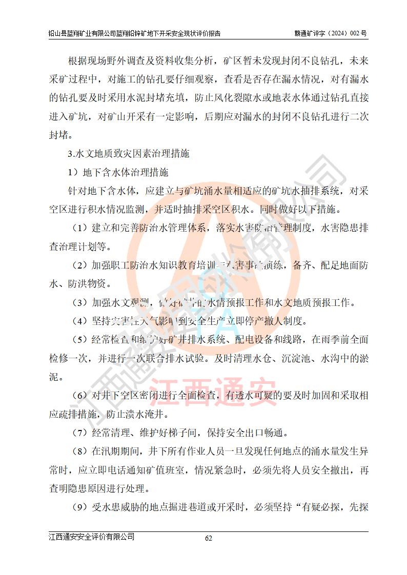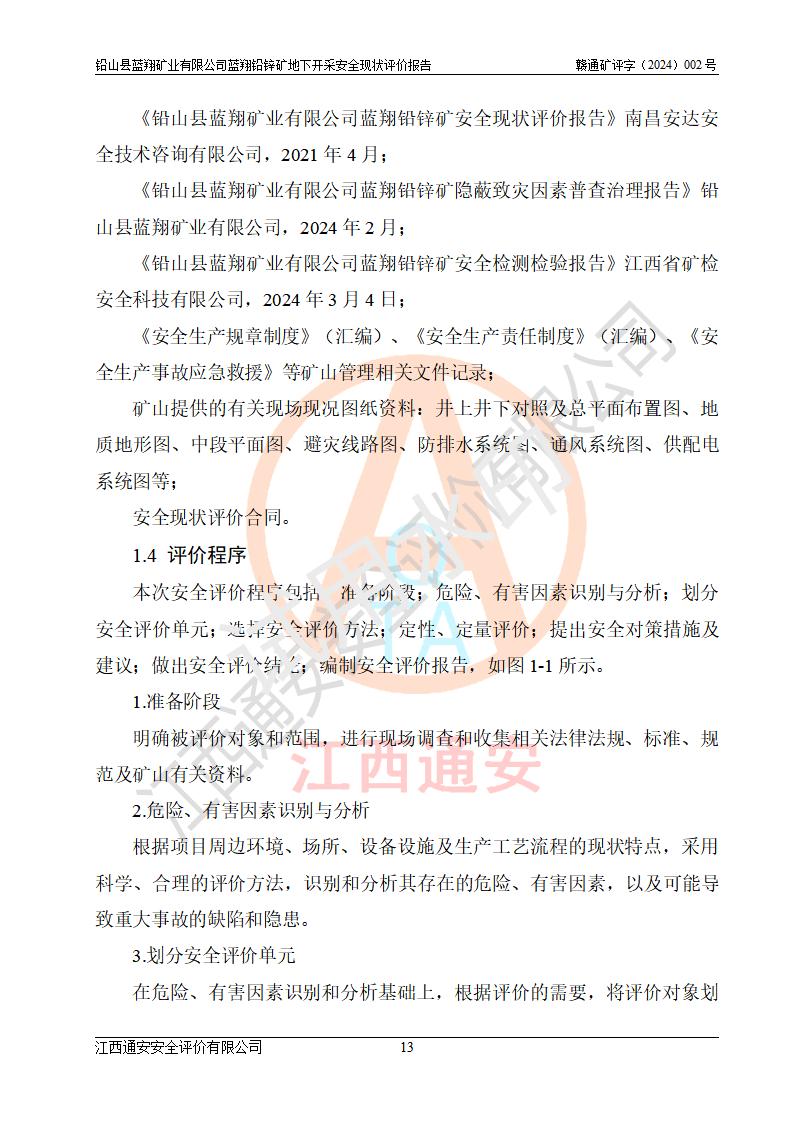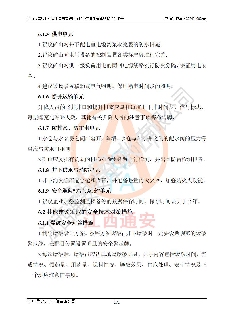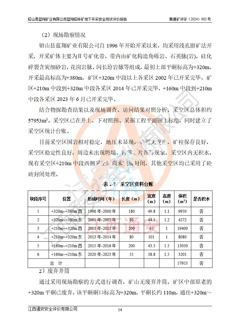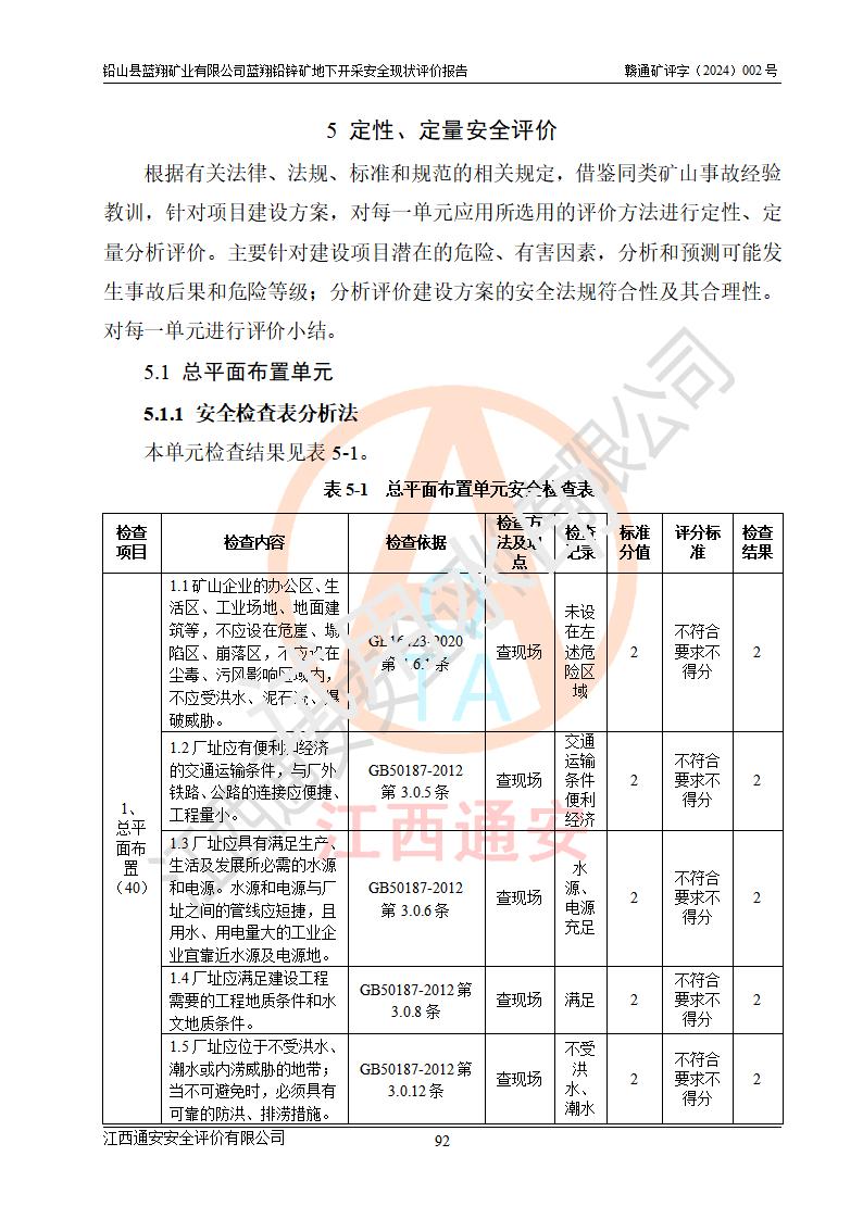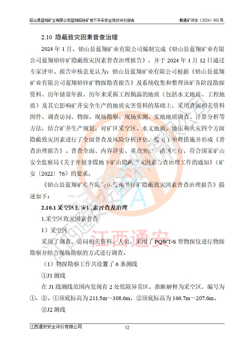 报告名称 | 铅山县蓝翔矿业有限公司蓝翔铅锌矿地下开采安全现状评价报告 | |||||