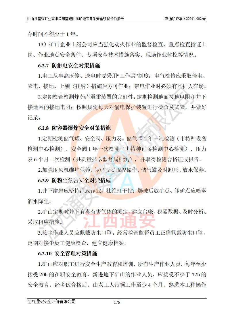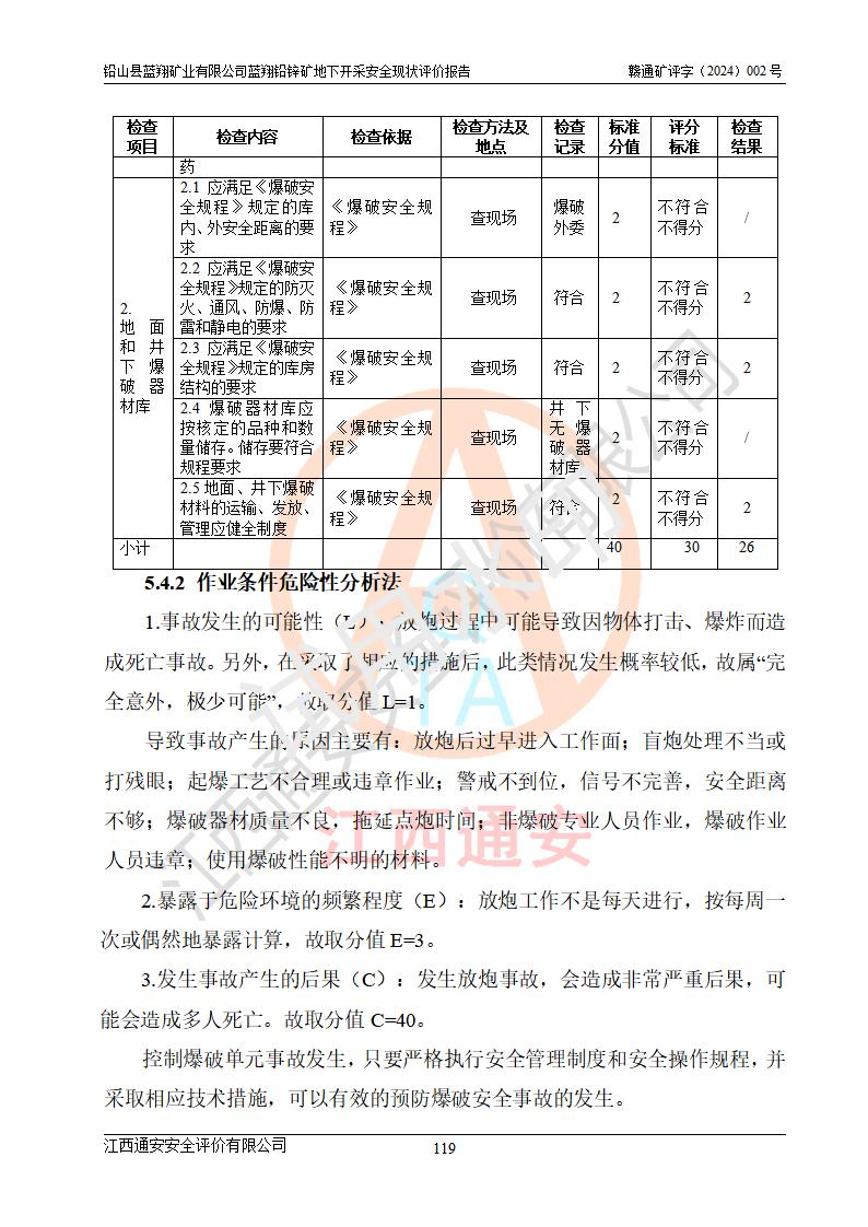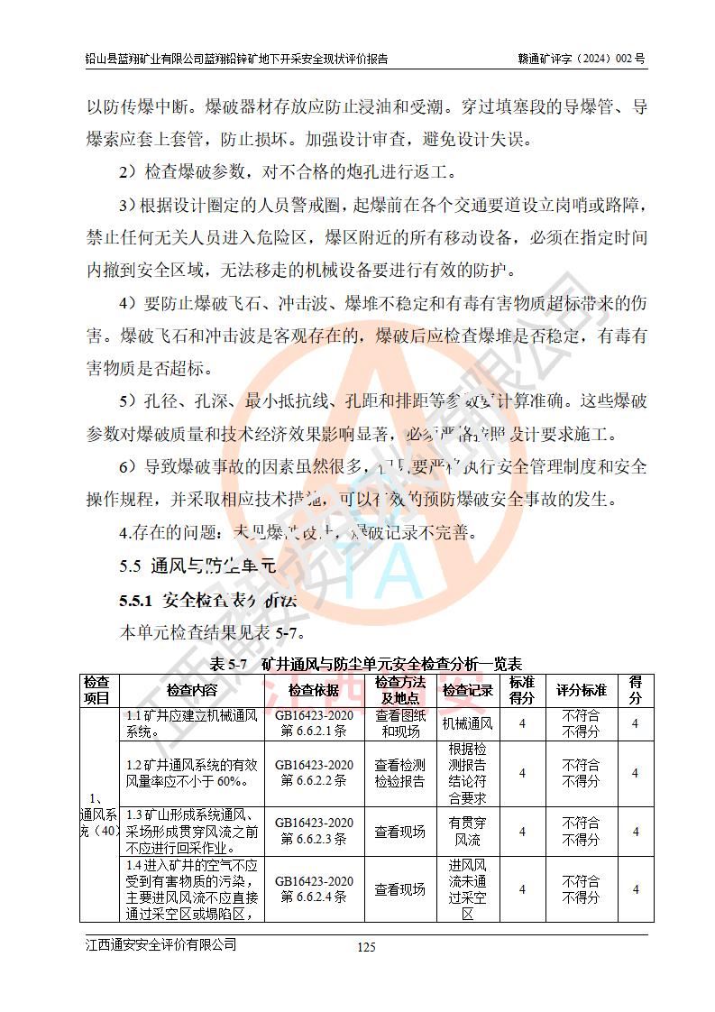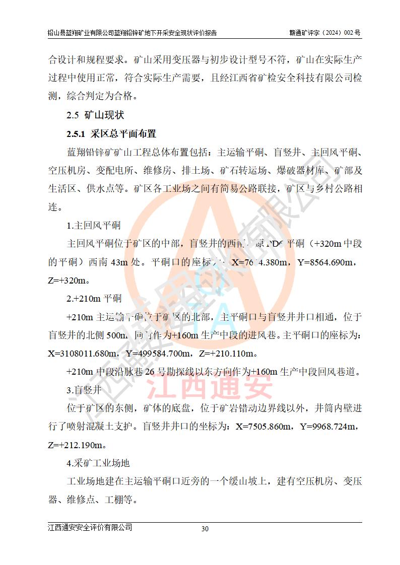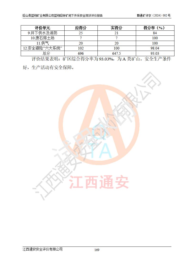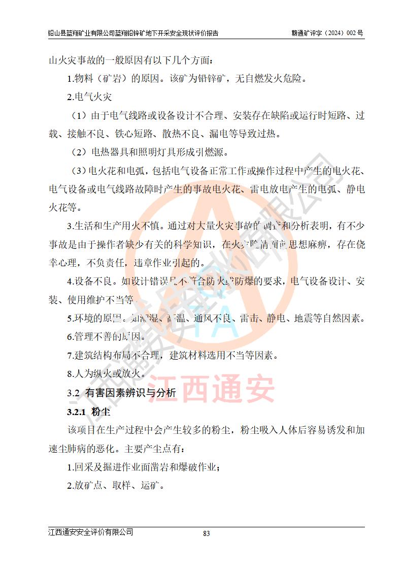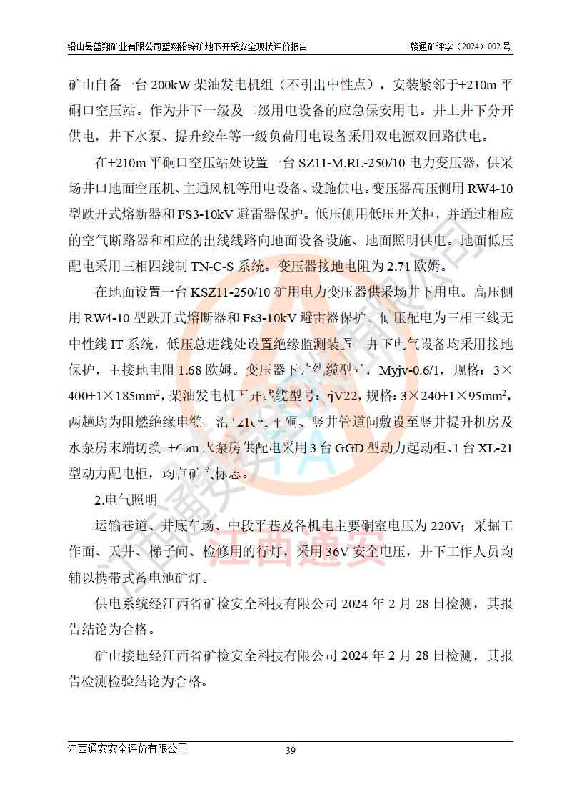 报告名称 | 铅山县蓝翔矿业有限公司蓝翔铅锌矿地下开采安全现状评价报告 | |||||