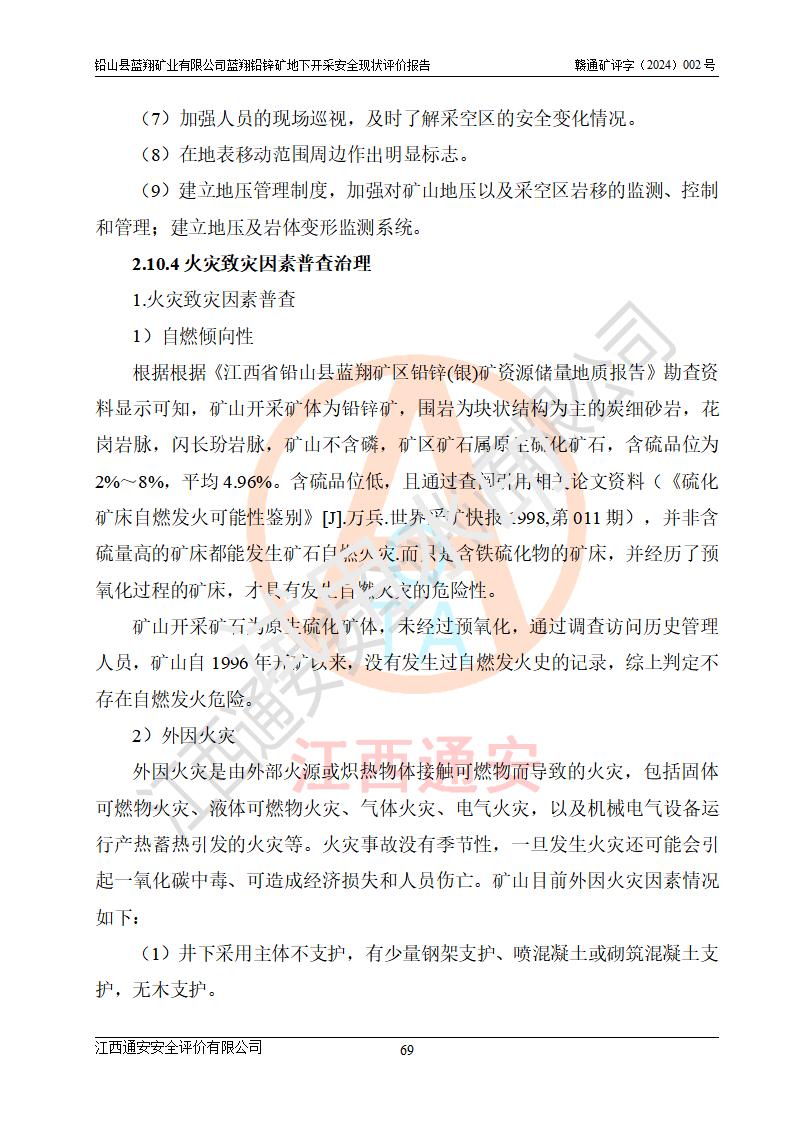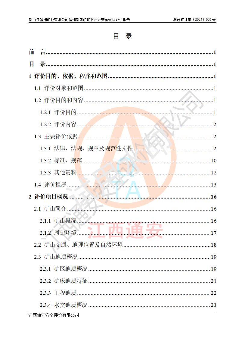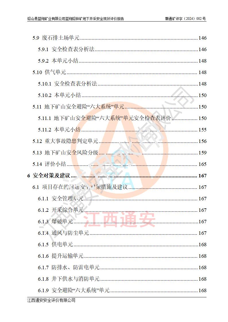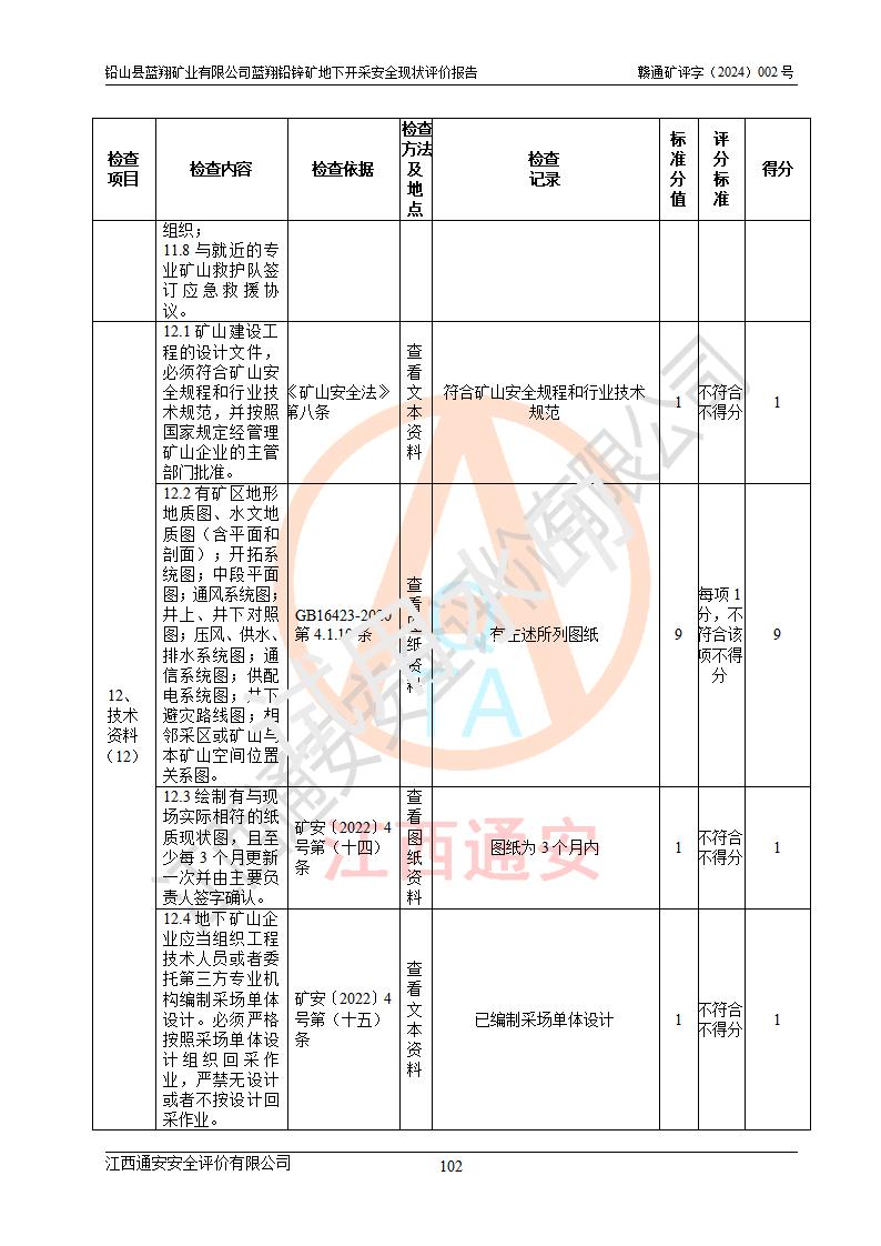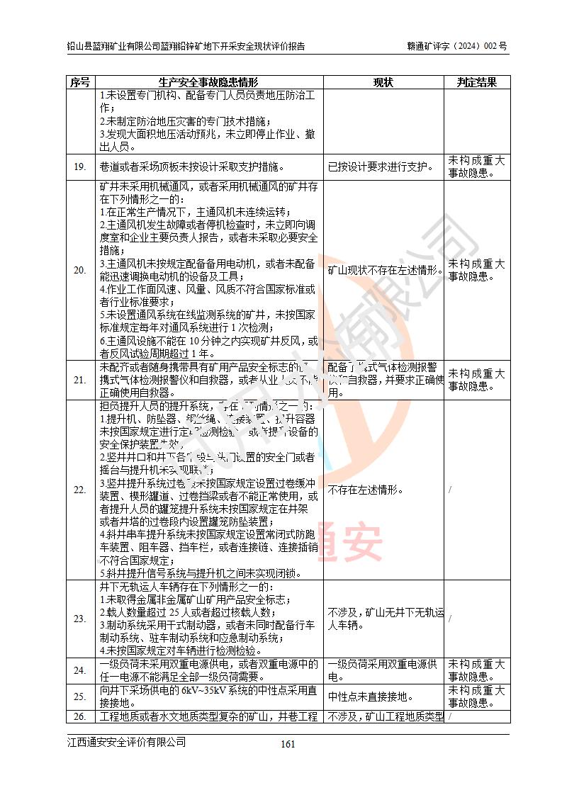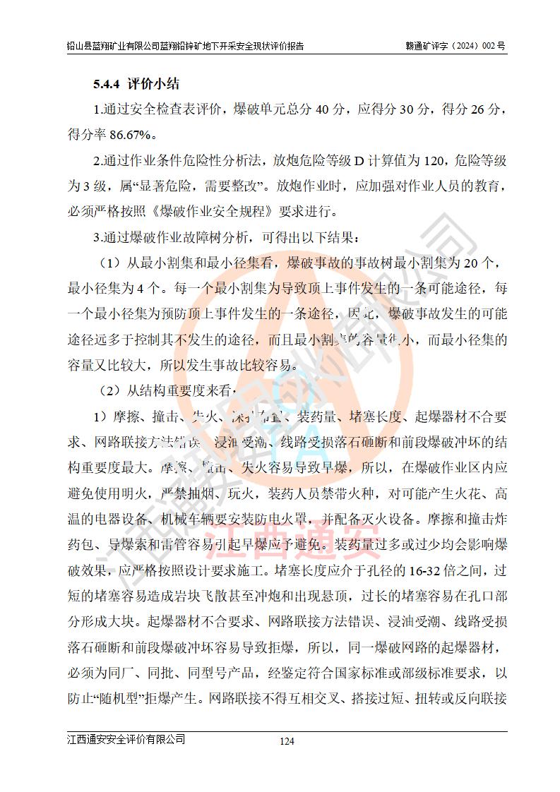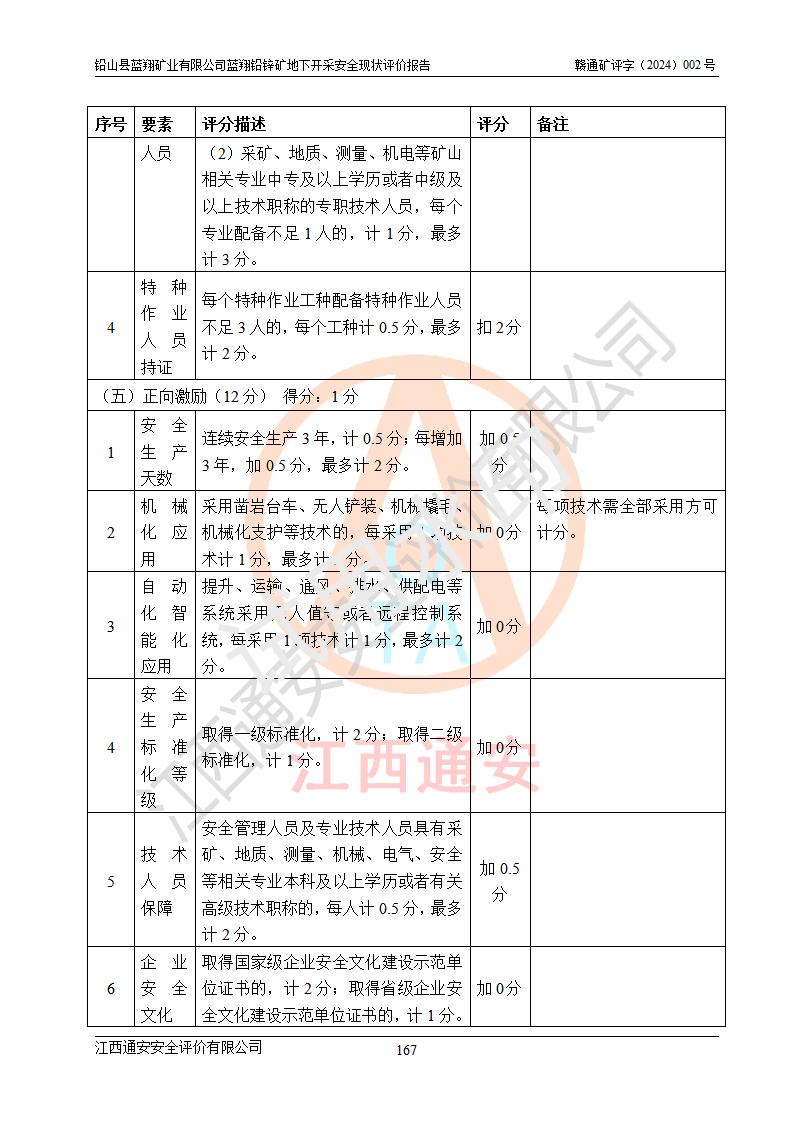 报告名称 | 铅山县蓝翔矿业有限公司蓝翔铅锌矿地下开采安全现状评价报告 | |||||