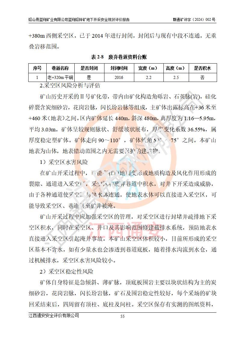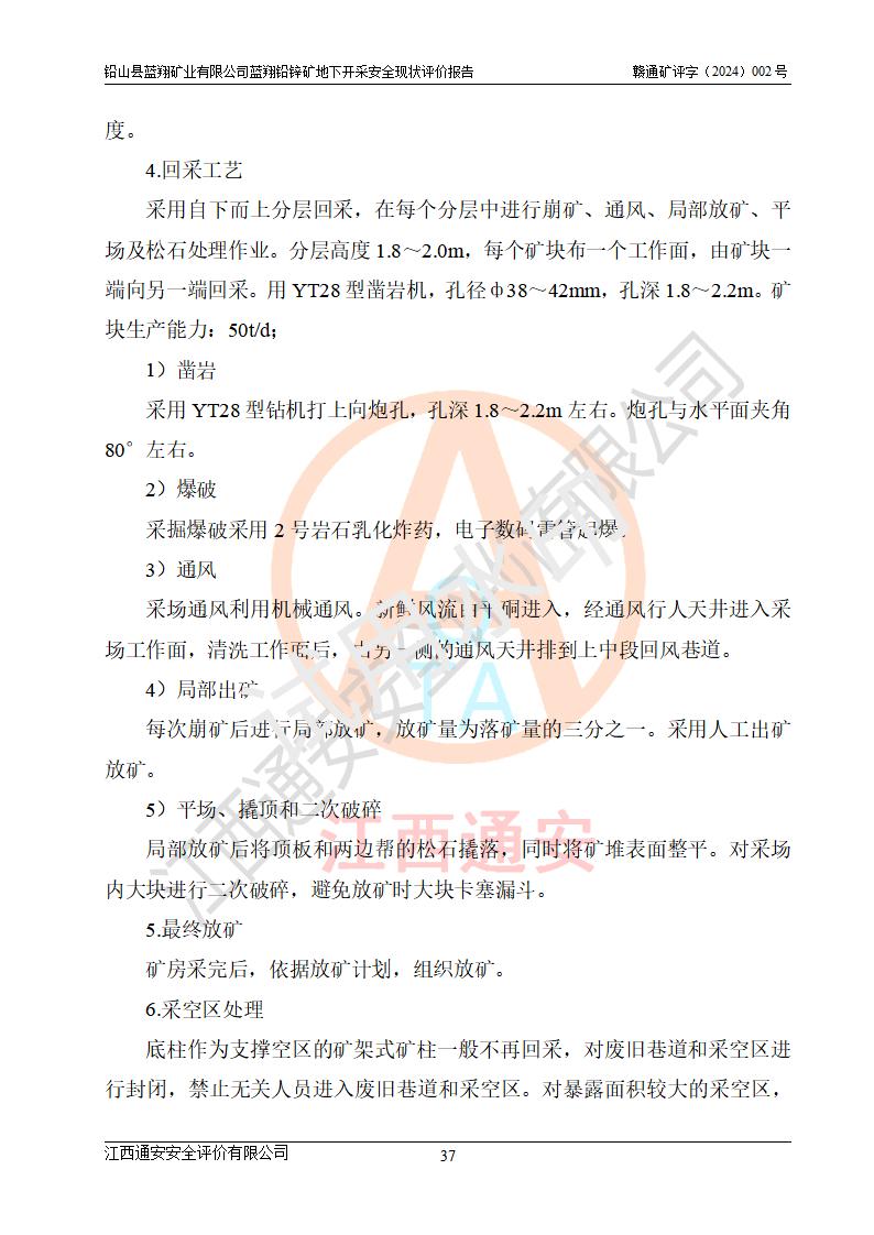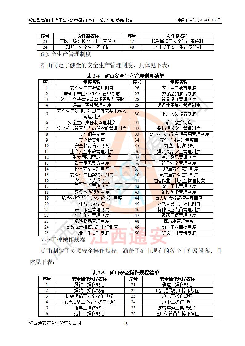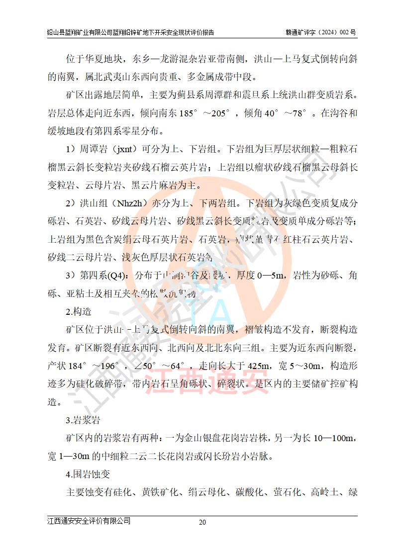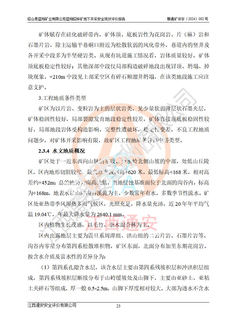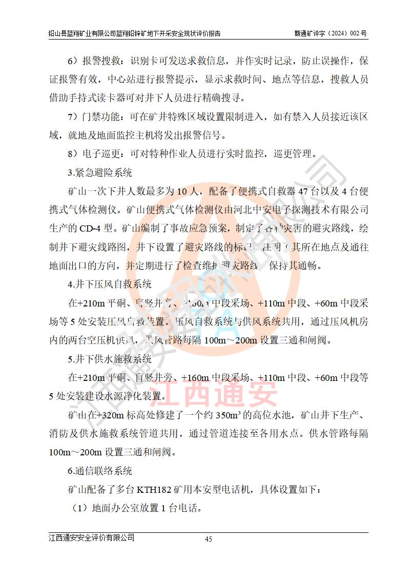 报告名称 | 铅山县蓝翔矿业有限公司蓝翔铅锌矿地下开采安全现状评价报告 | |||||