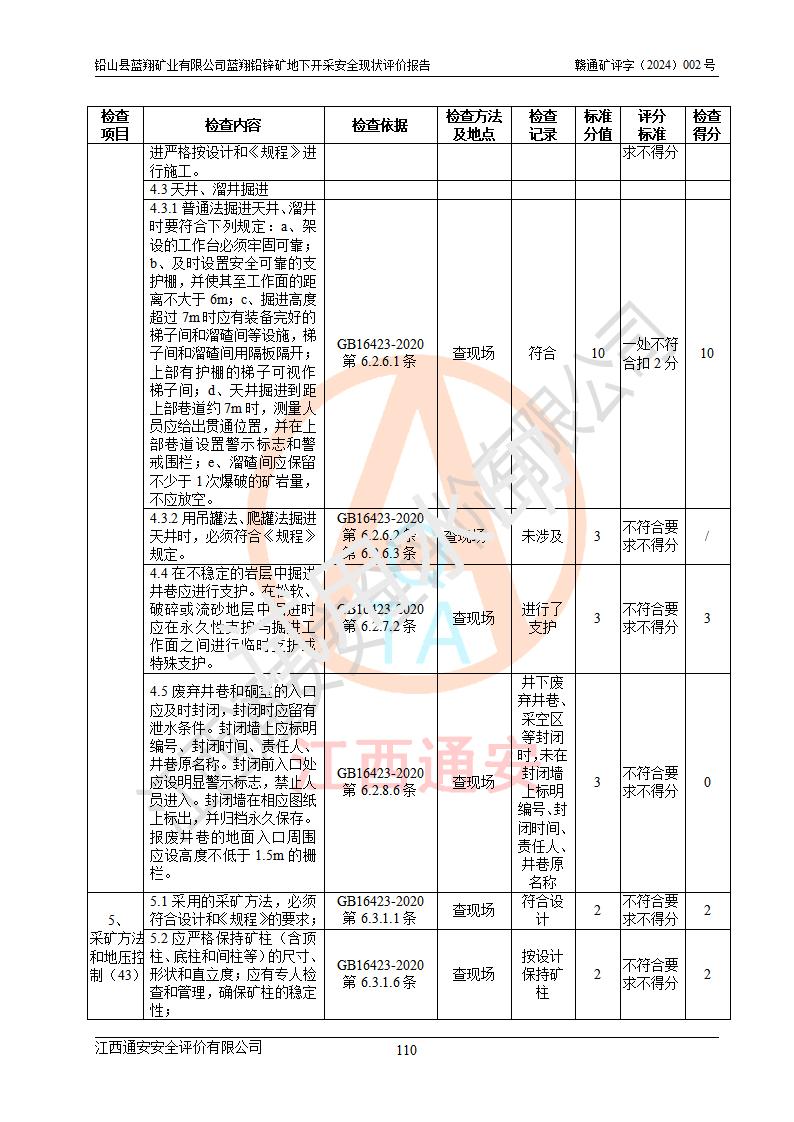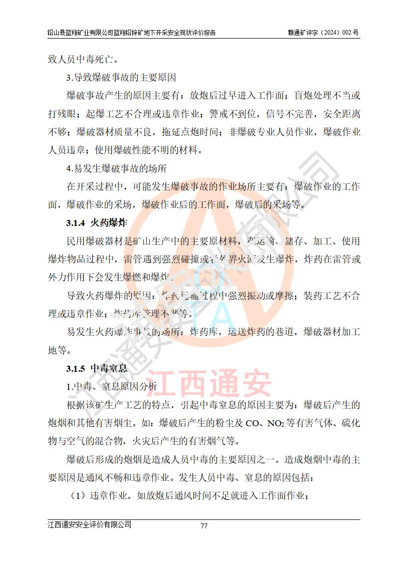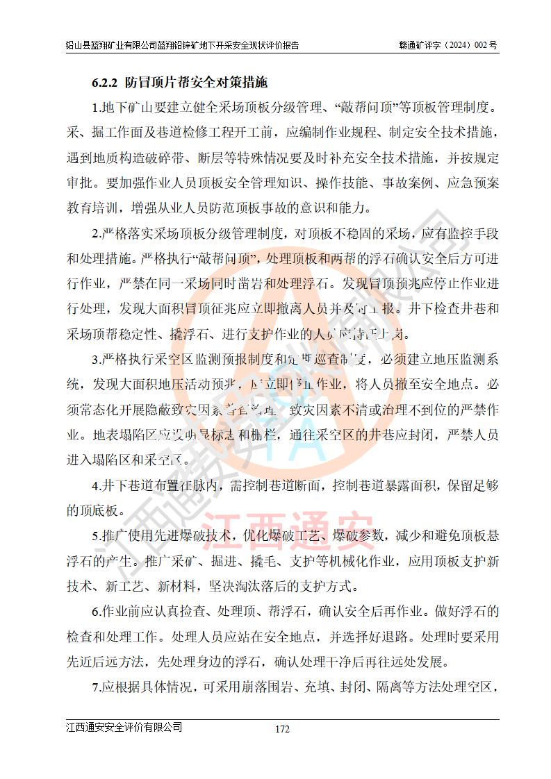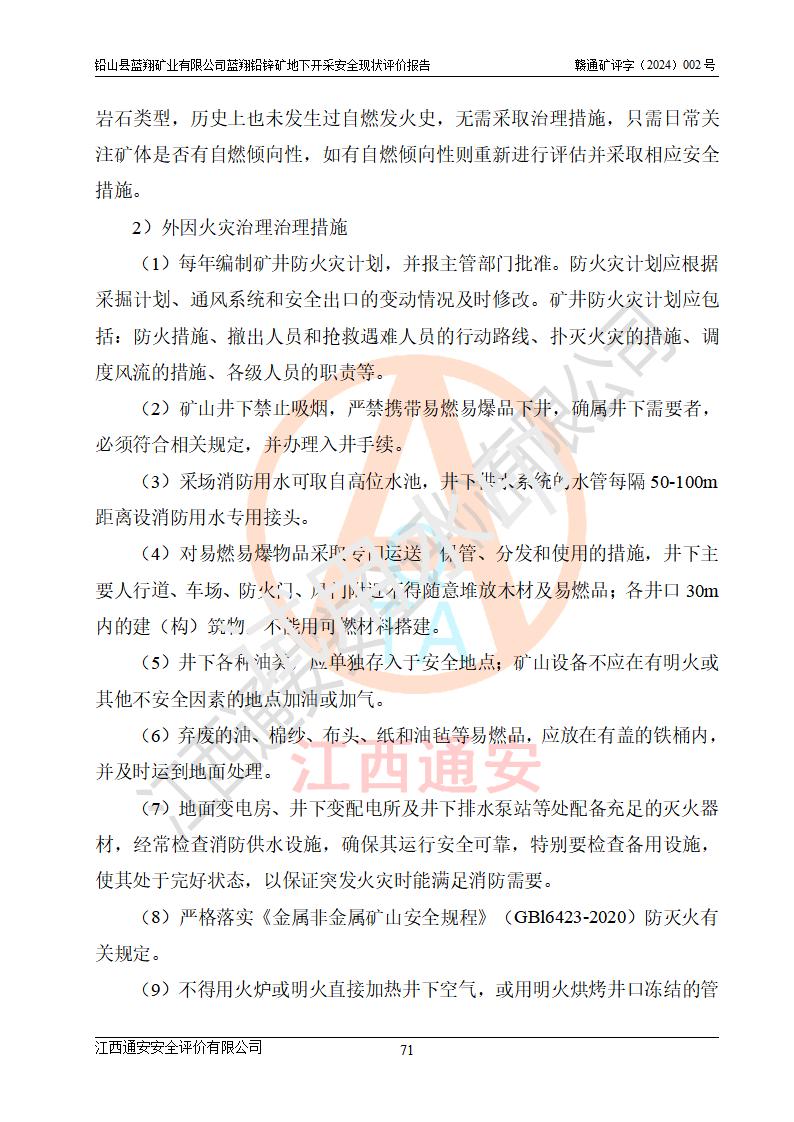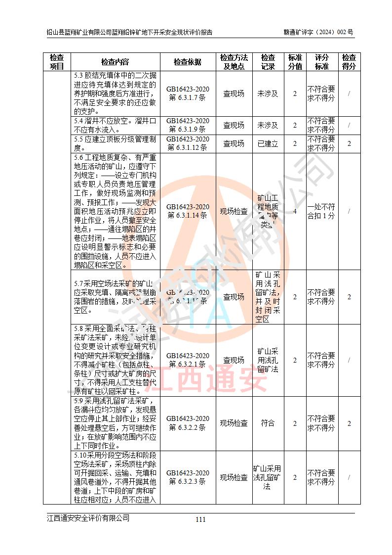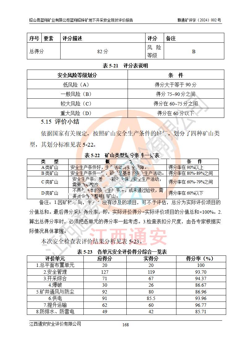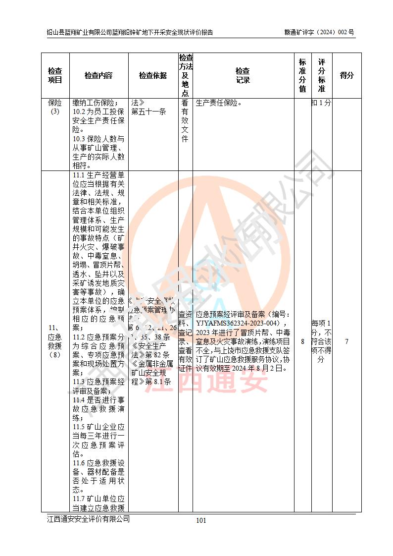 报告名称 | 铅山县蓝翔矿业有限公司蓝翔铅锌矿地下开采安全现状评价报告 | |||||