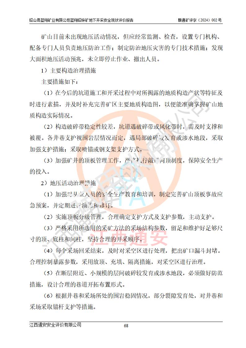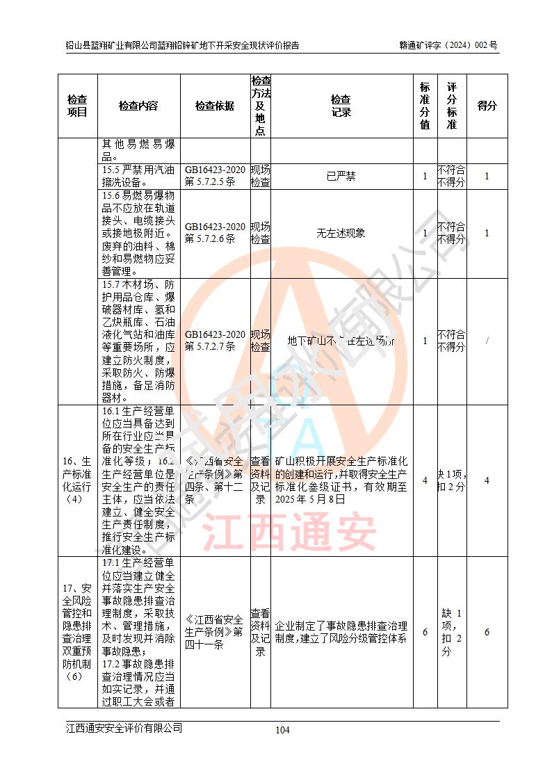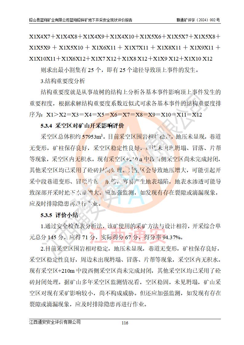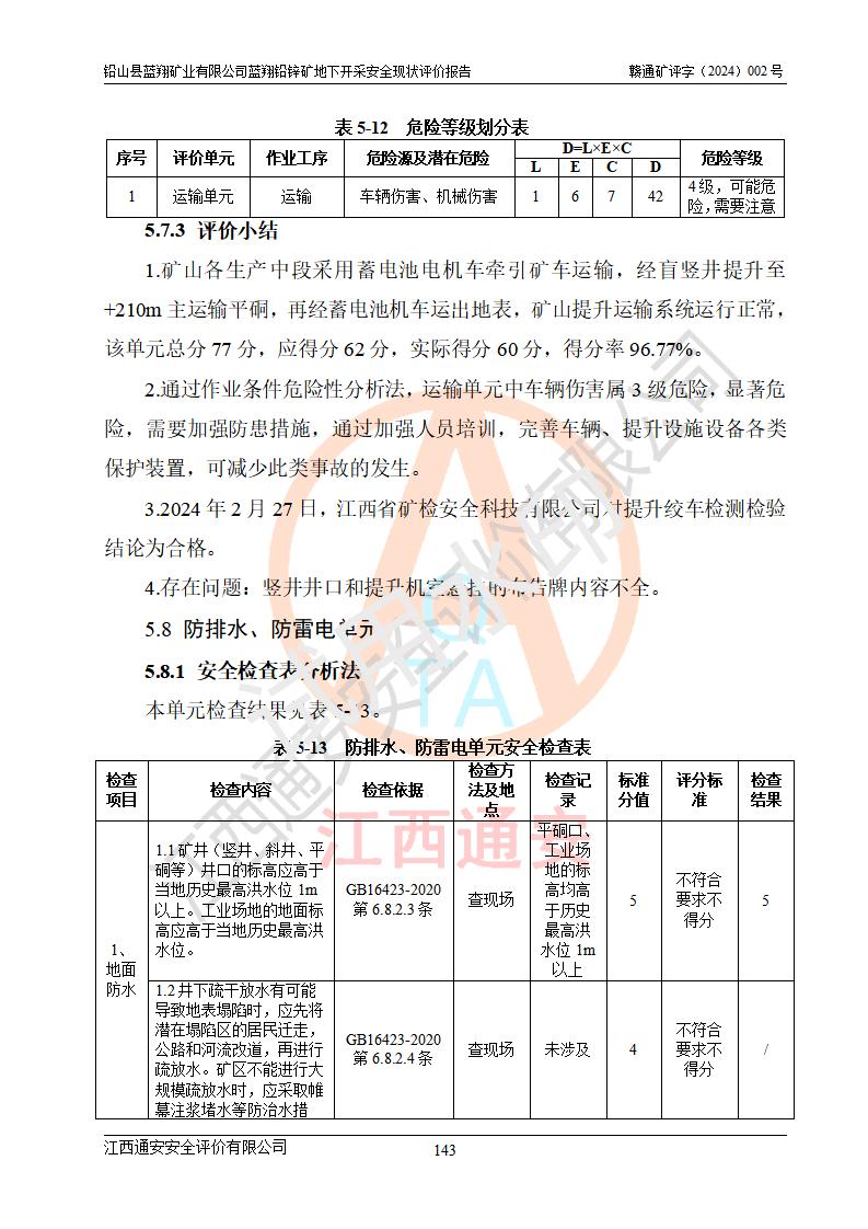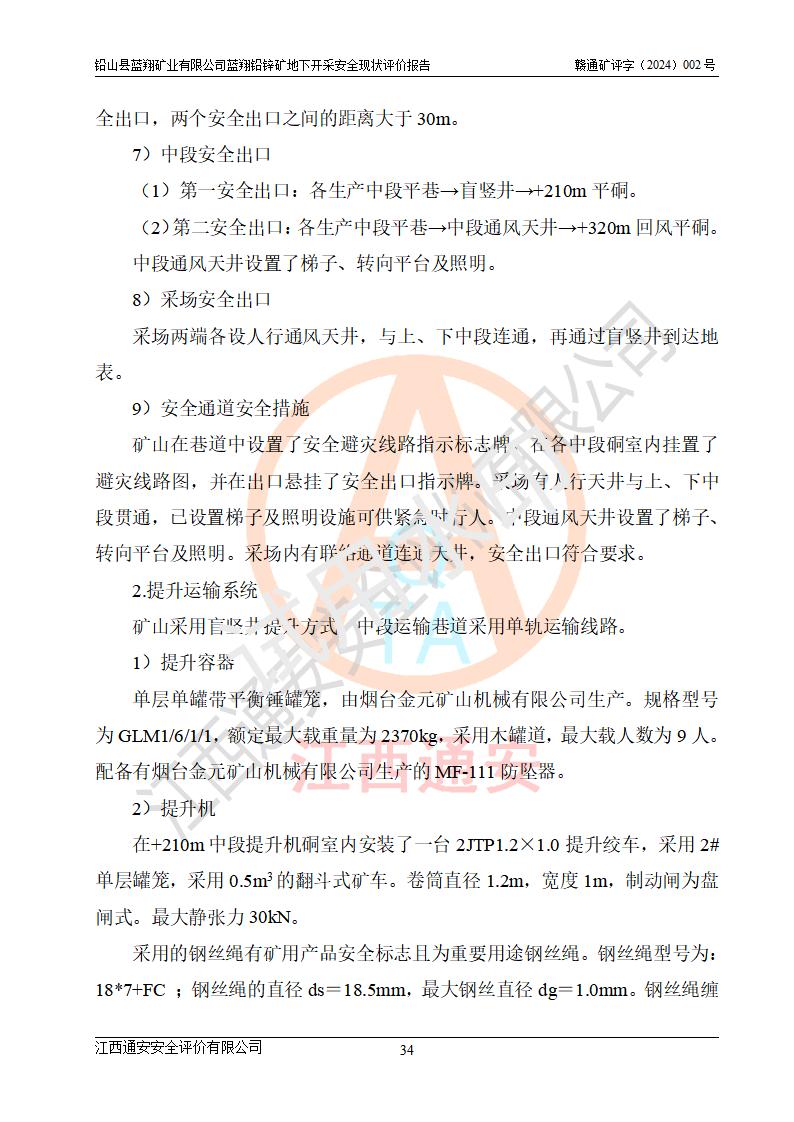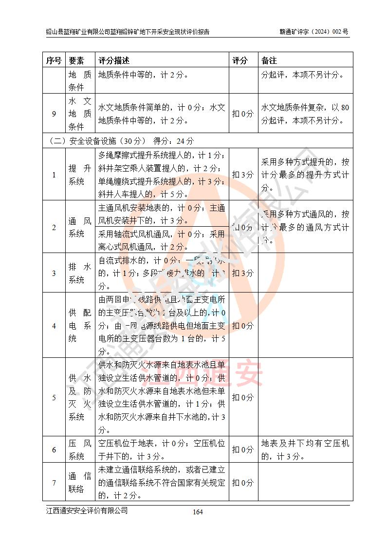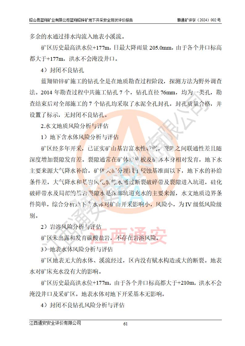 报告名称 | 铅山县蓝翔矿业有限公司蓝翔铅锌矿地下开采安全现状评价报告 | |||||