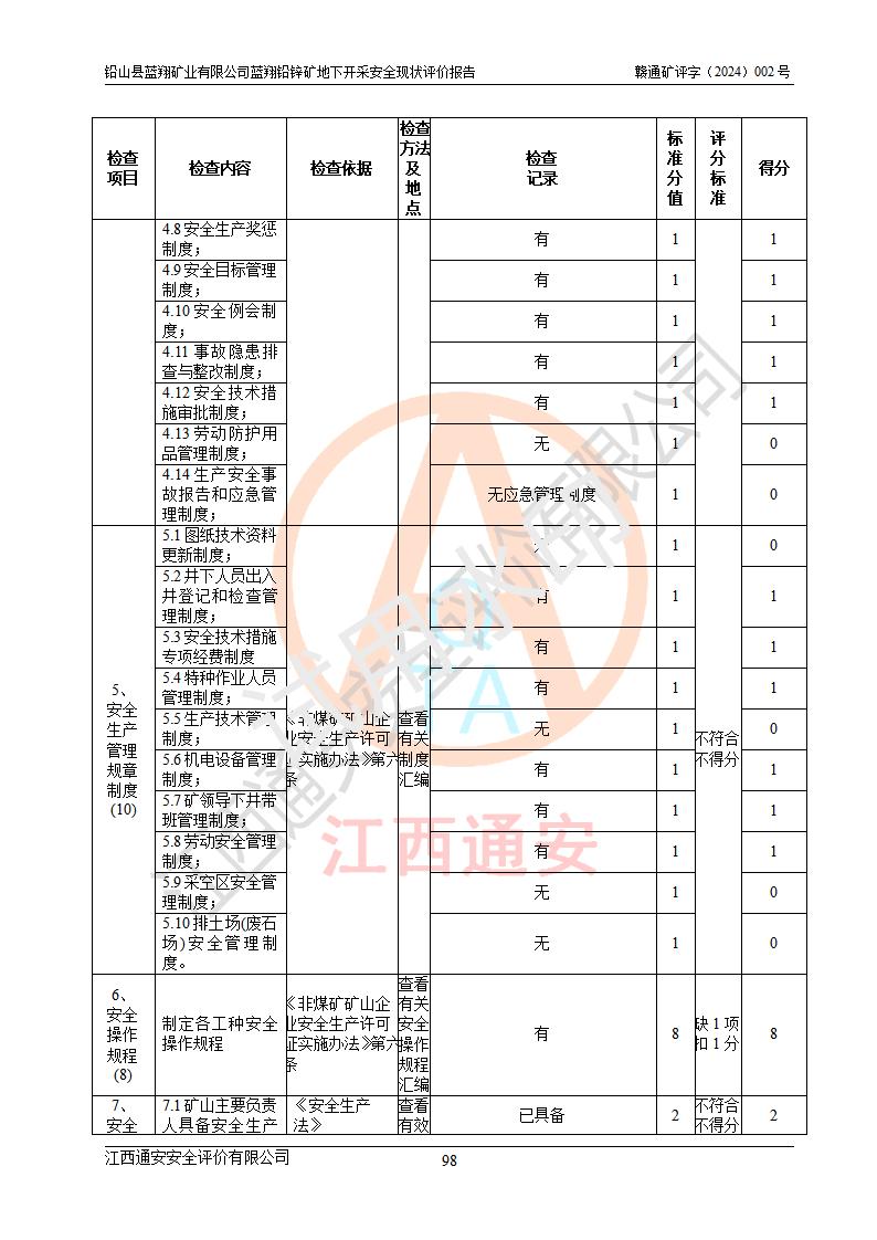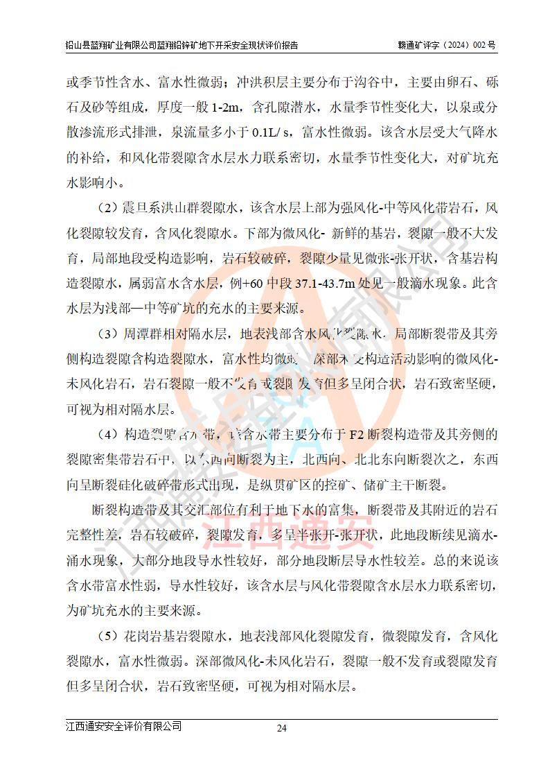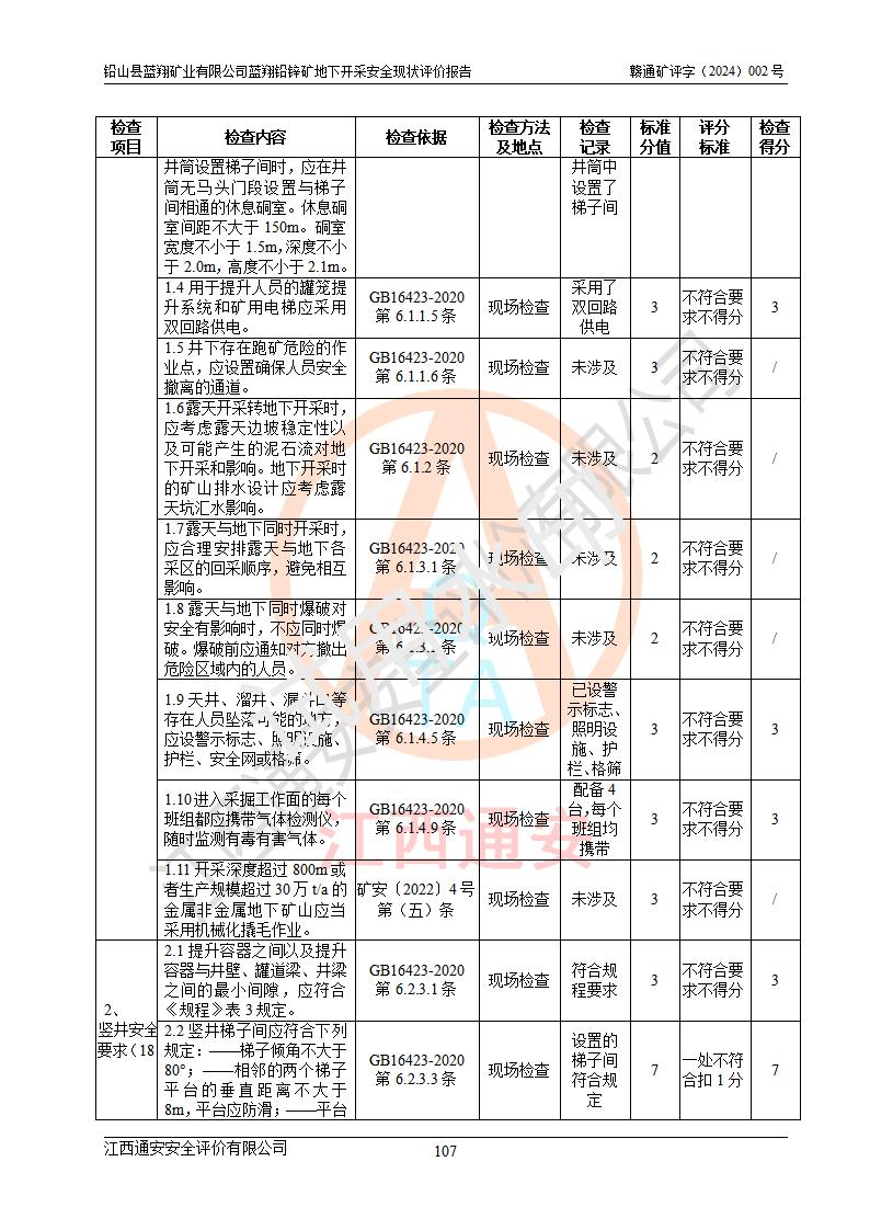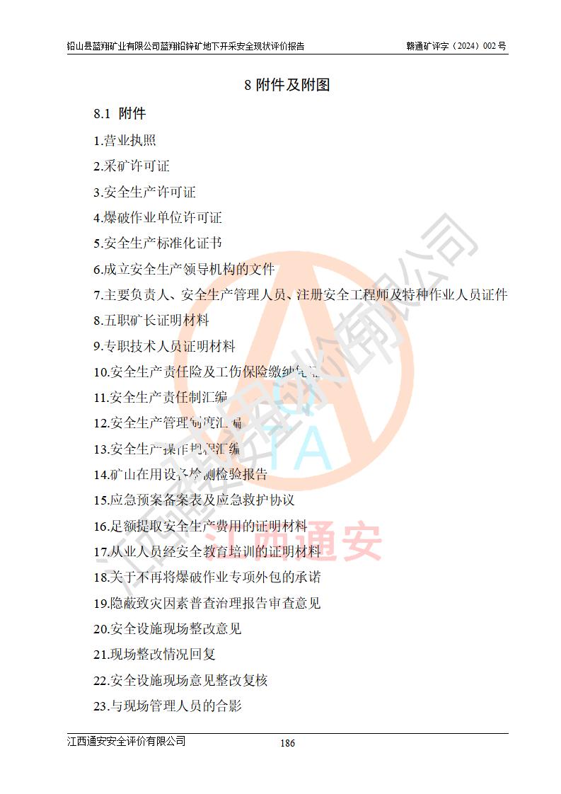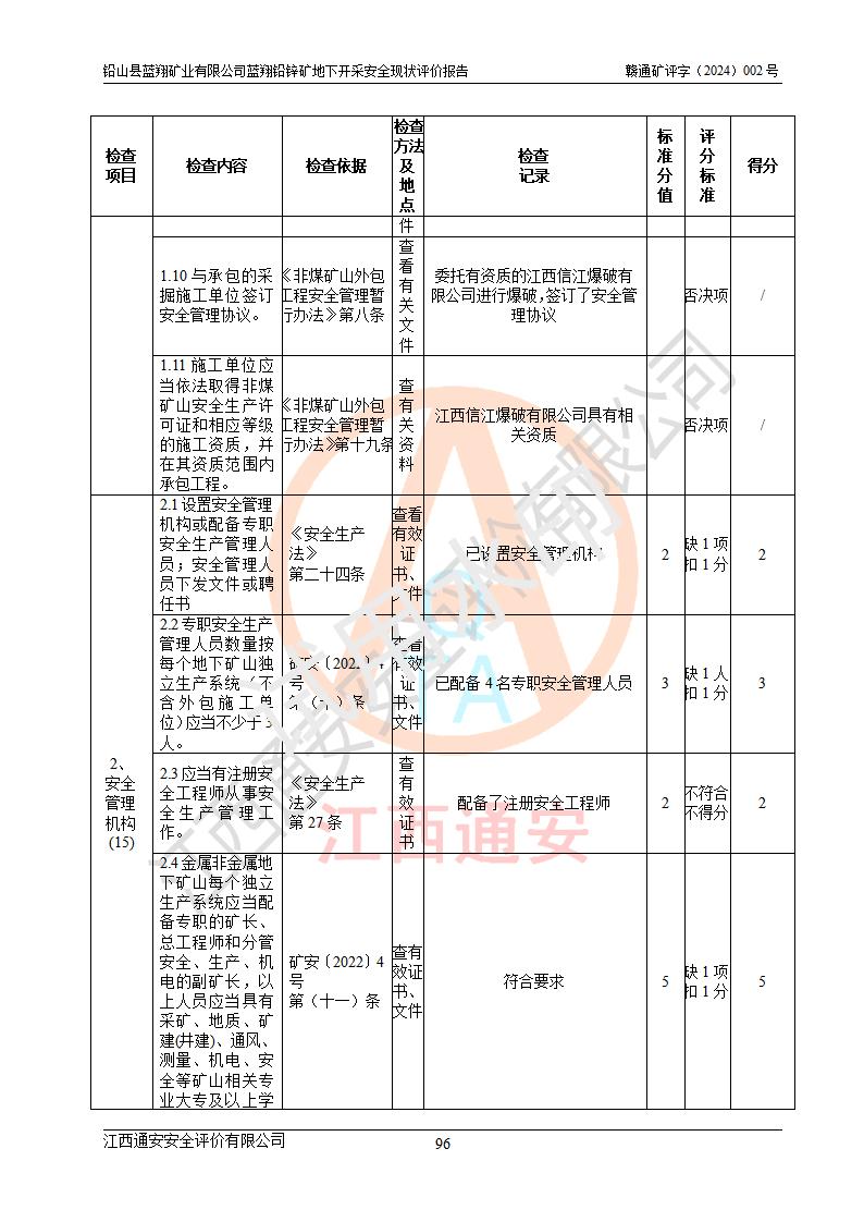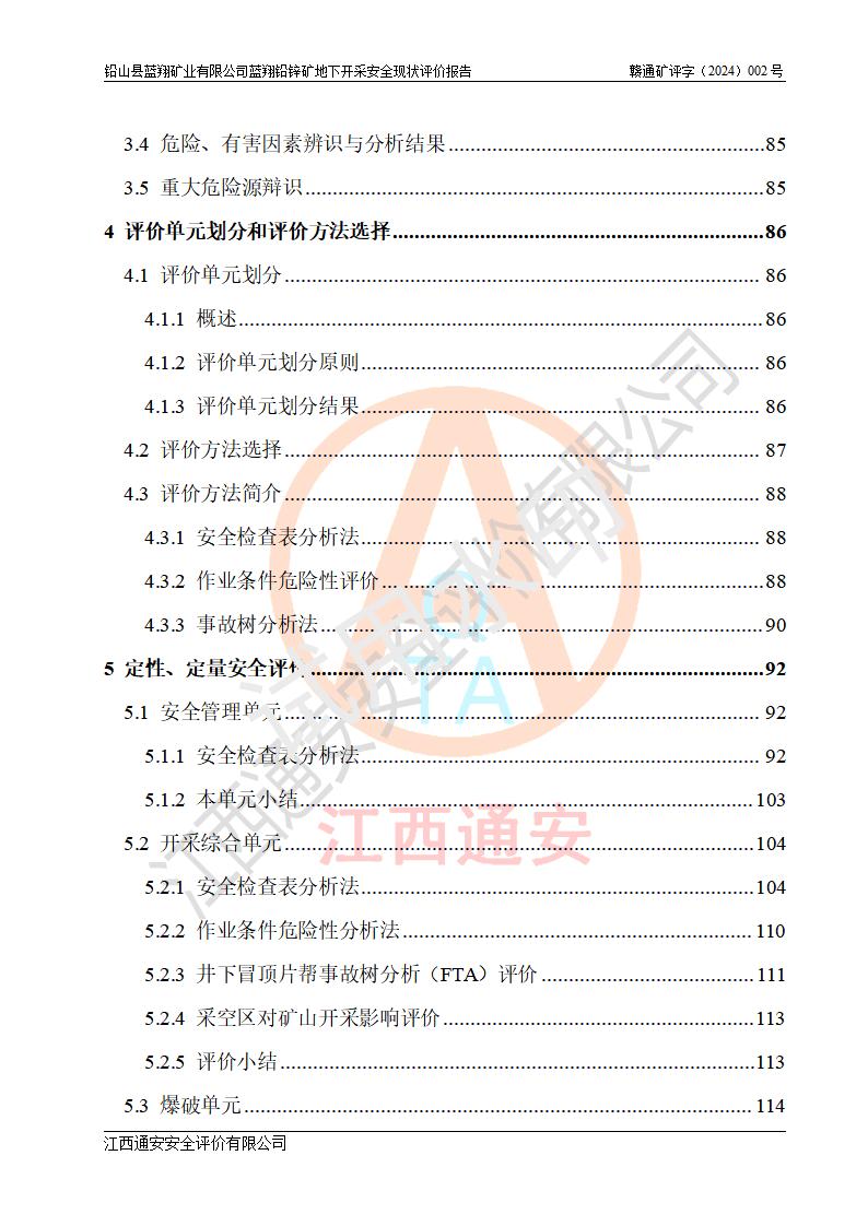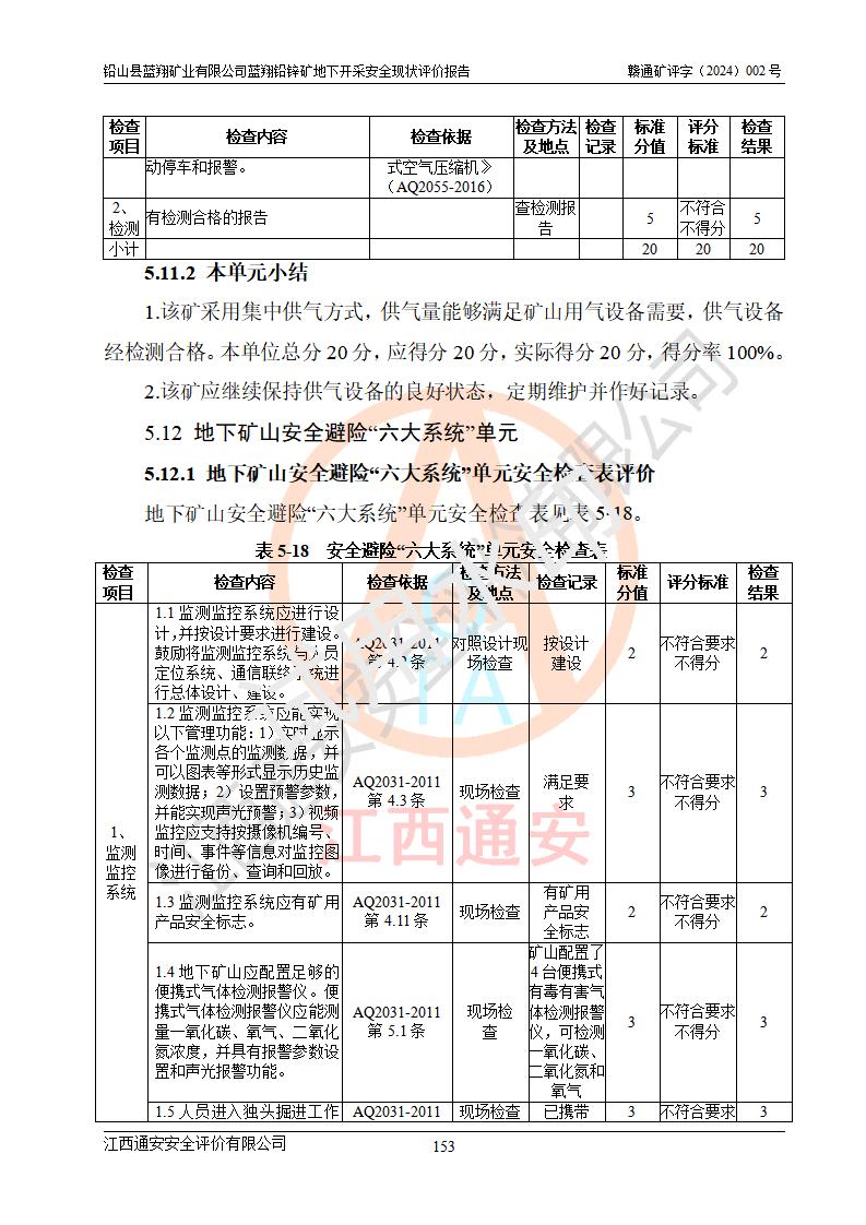 报告名称 | 铅山县蓝翔矿业有限公司蓝翔铅锌矿地下开采安全现状评价报告 | |||||