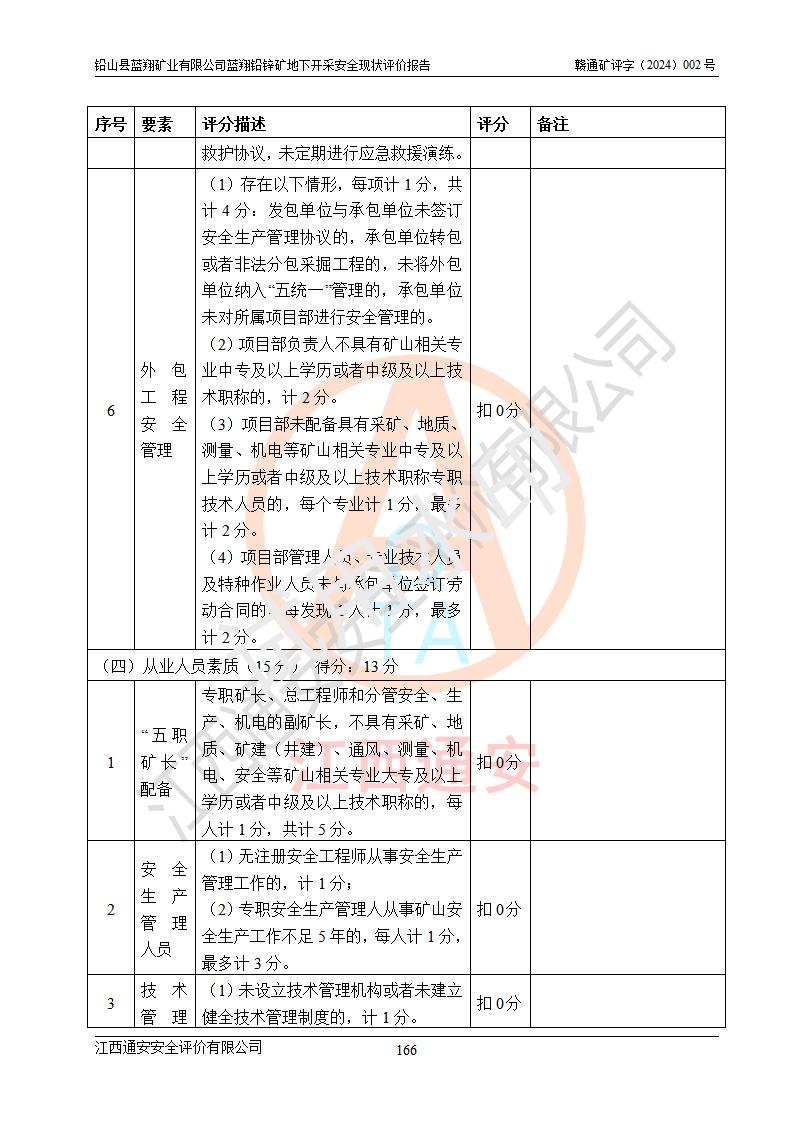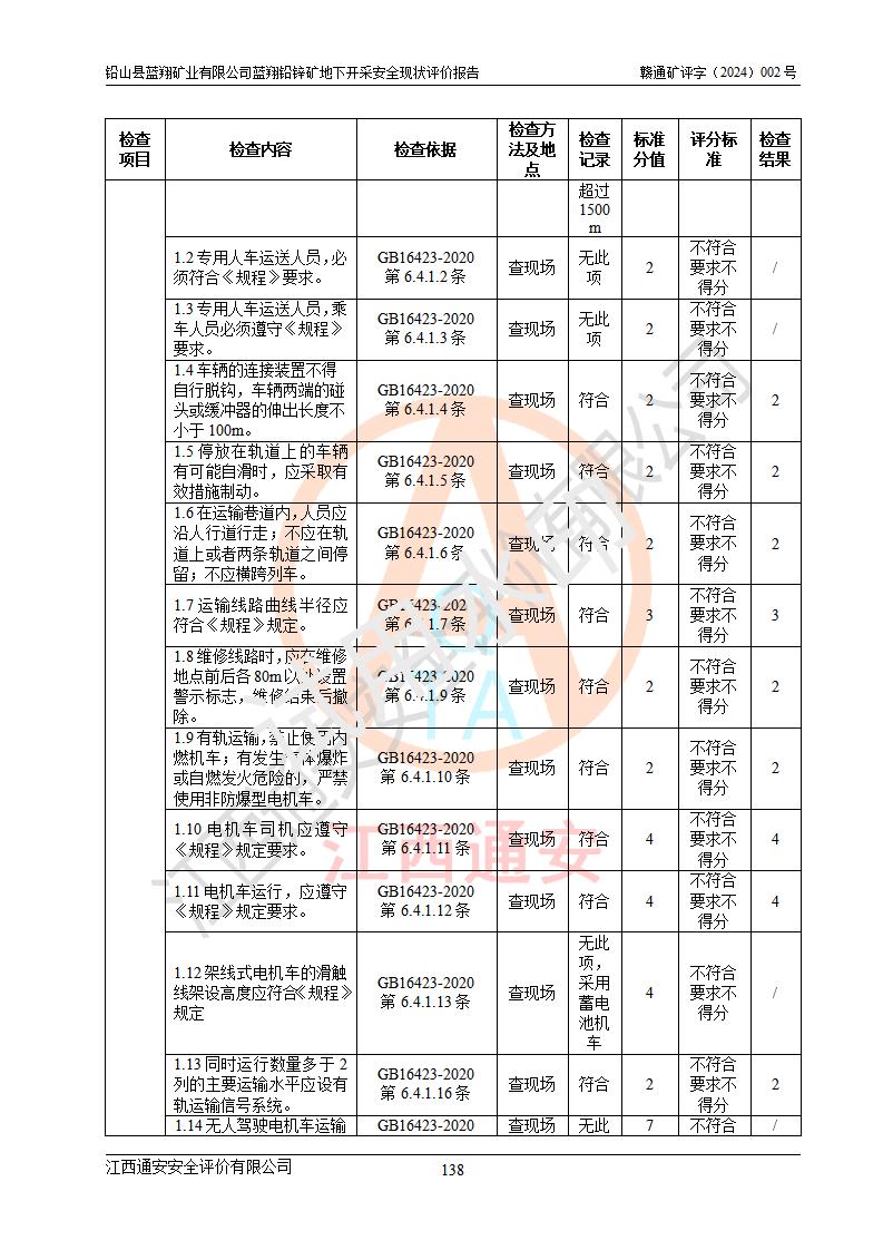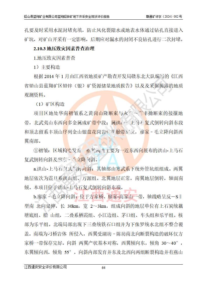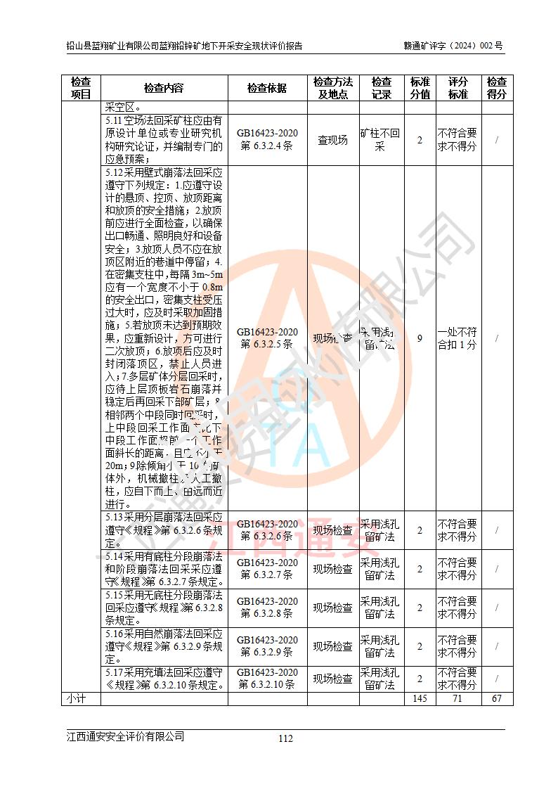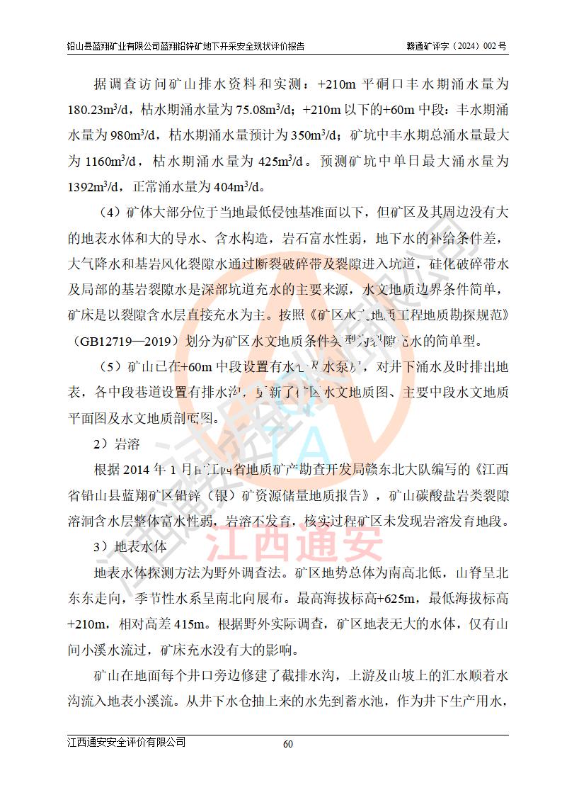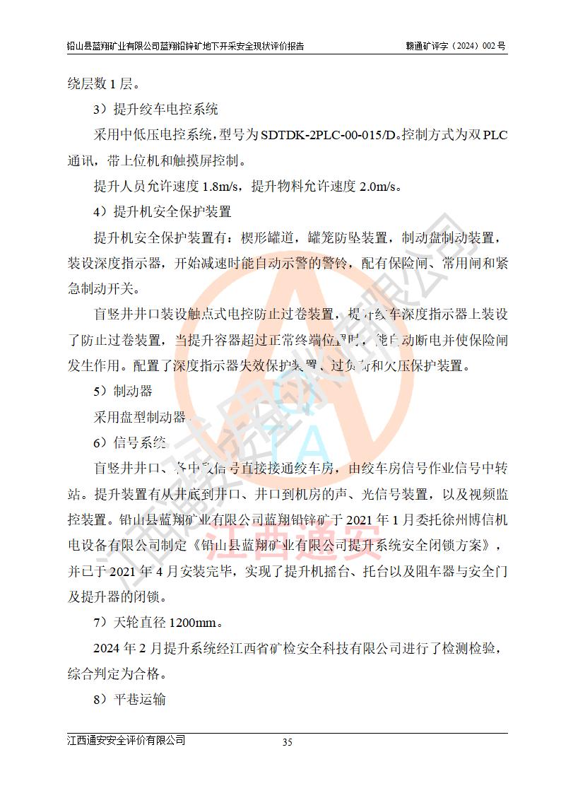 报告名称 | 铅山县蓝翔矿业有限公司蓝翔铅锌矿地下开采安全现状评价报告 | |||||
