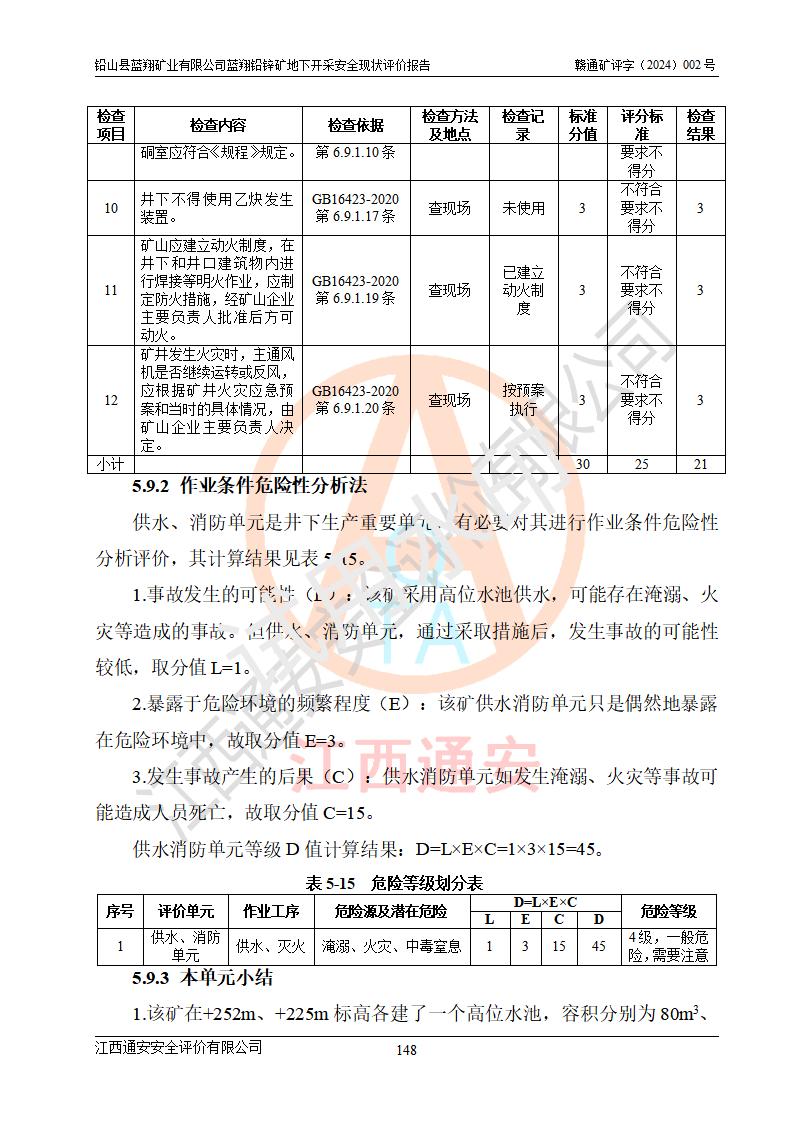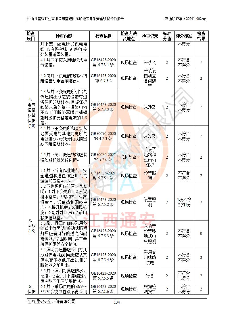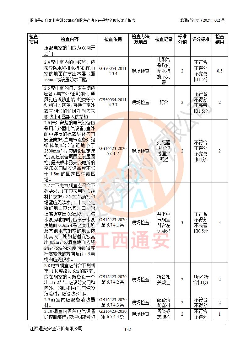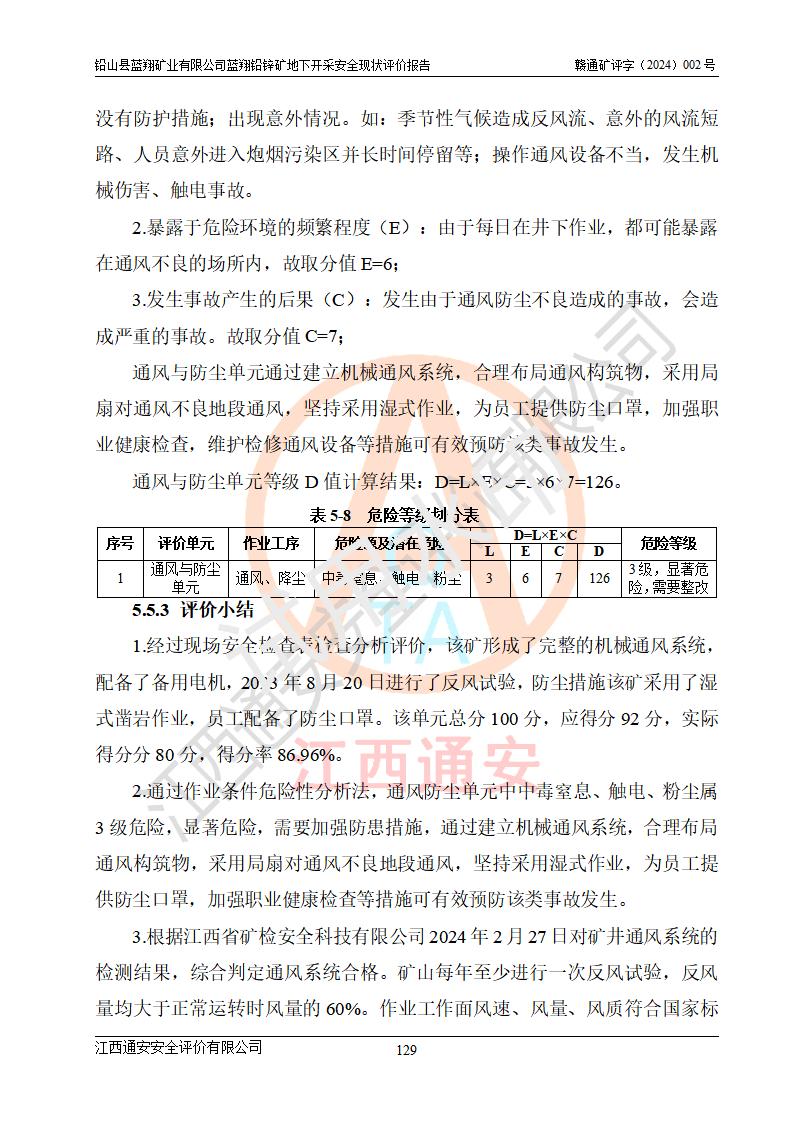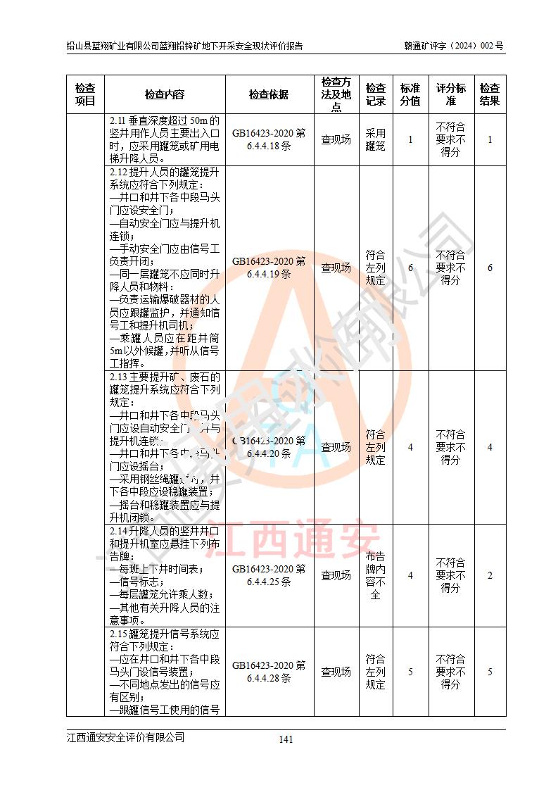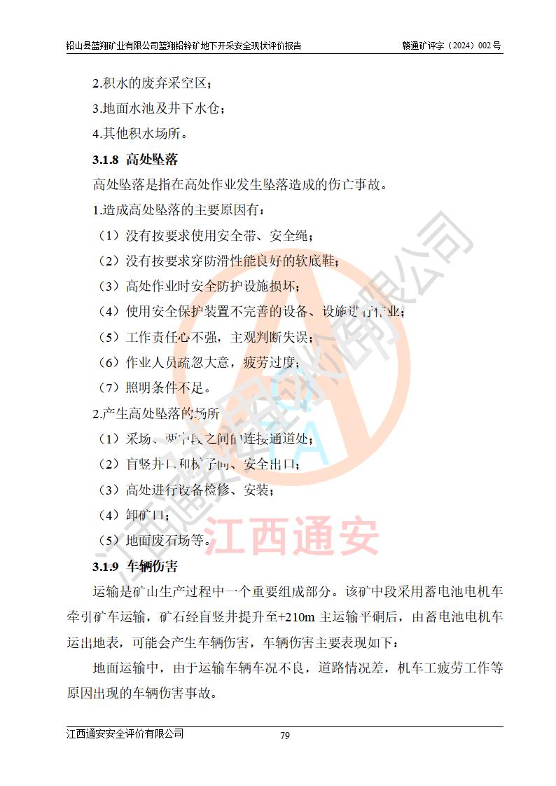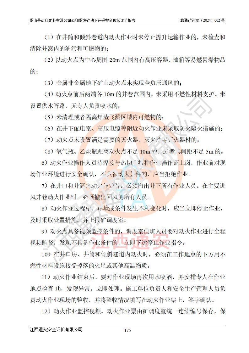 报告名称 | 铅山县蓝翔矿业有限公司蓝翔铅锌矿地下开采安全现状评价报告 | |||||