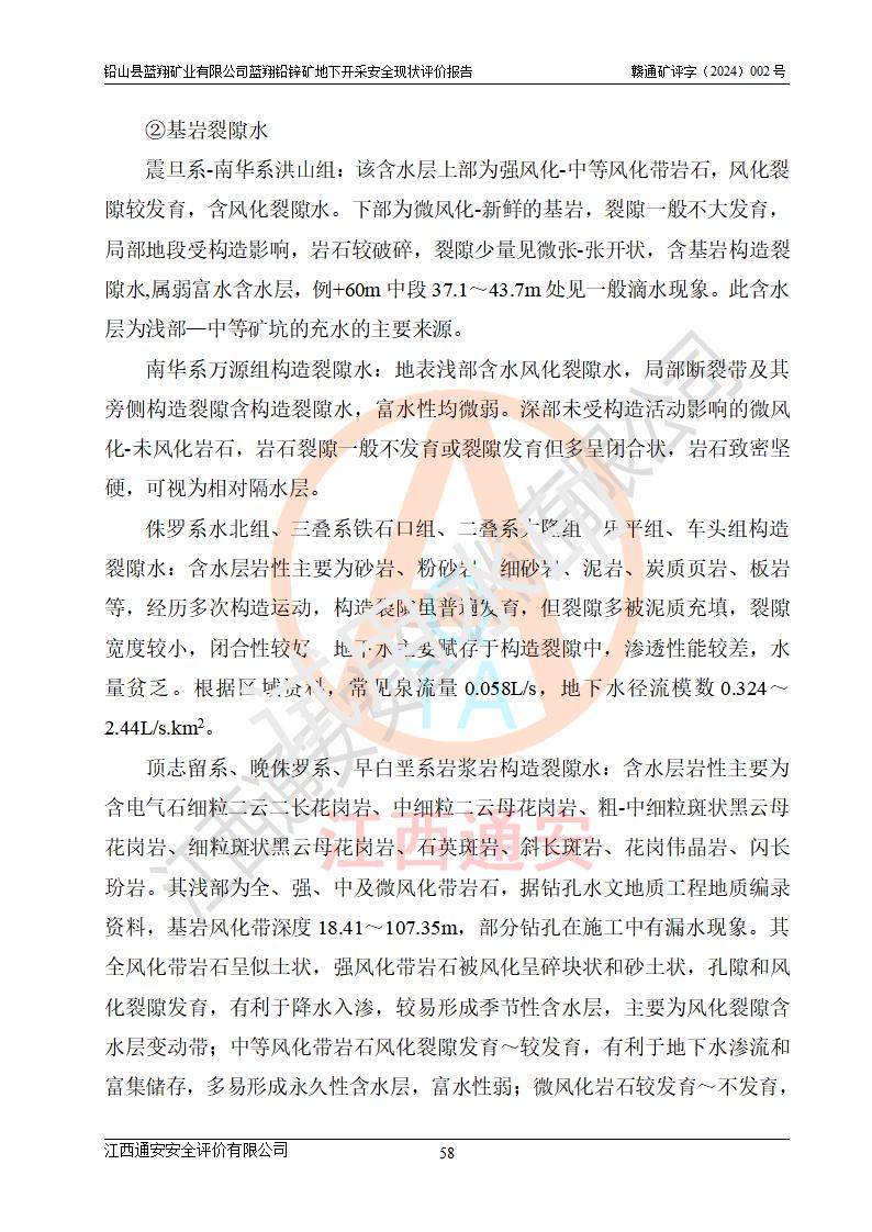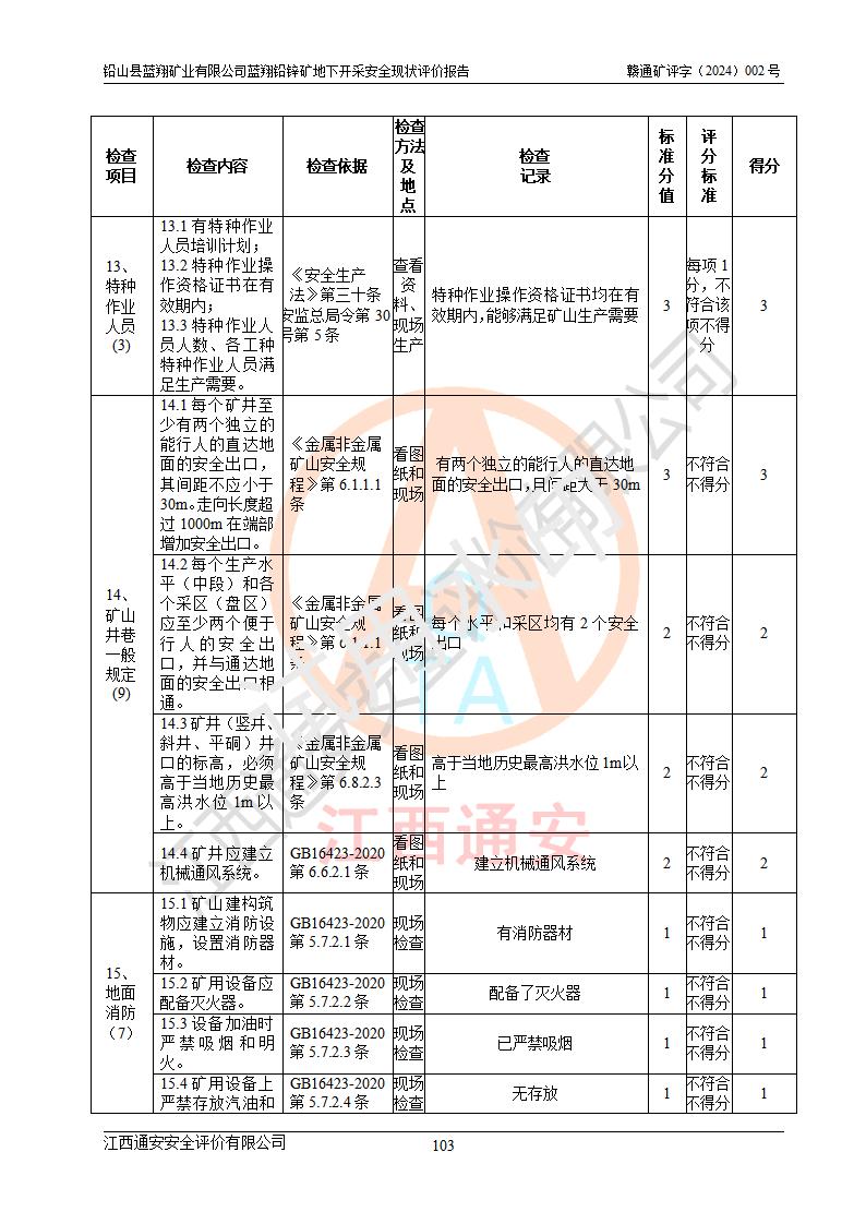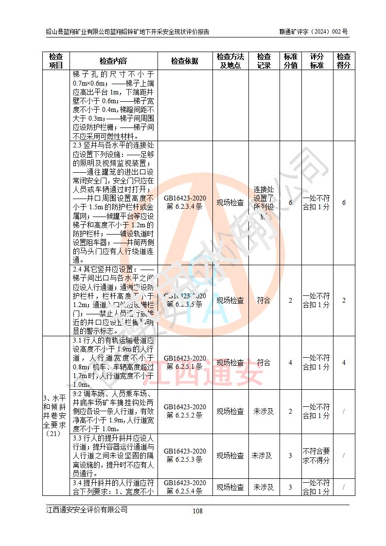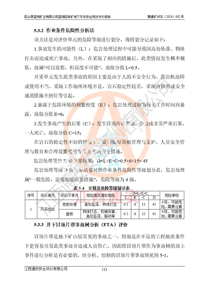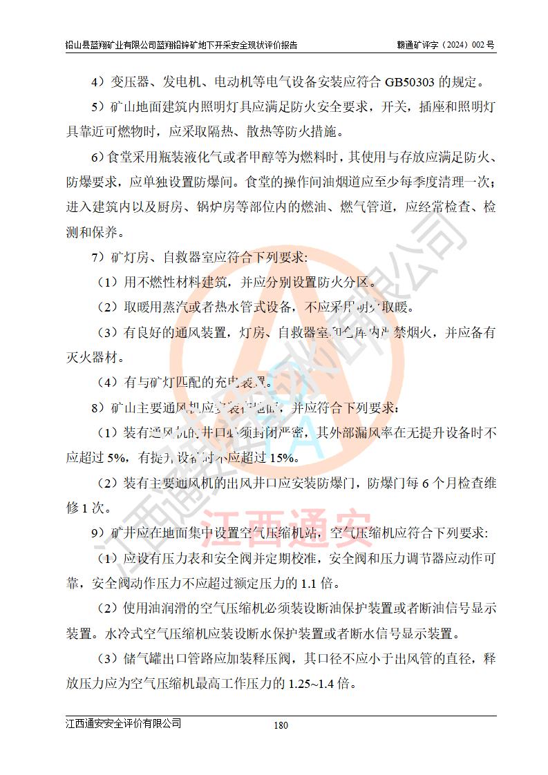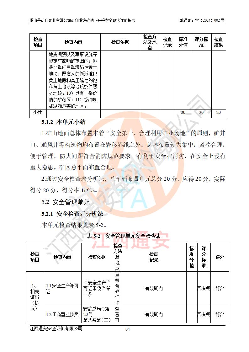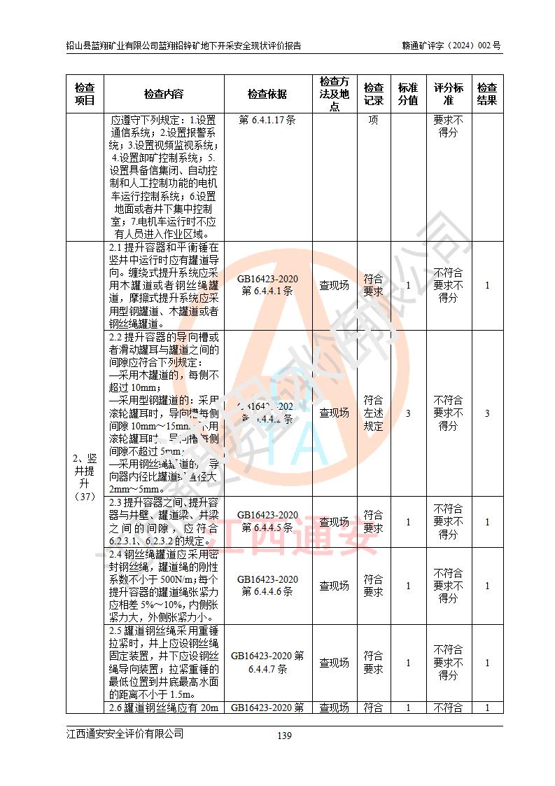报告名称 | 铅山县蓝翔矿业有限公司蓝翔铅锌矿地下开采安全现状评价报告 | |||||