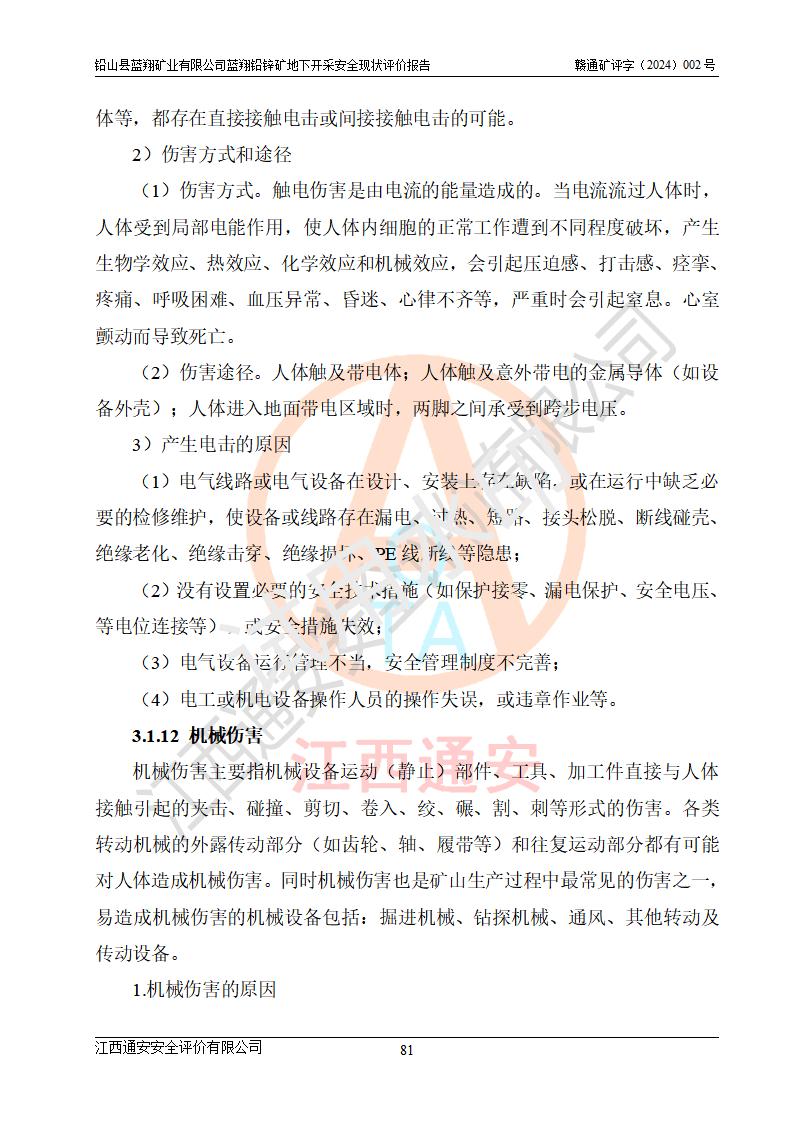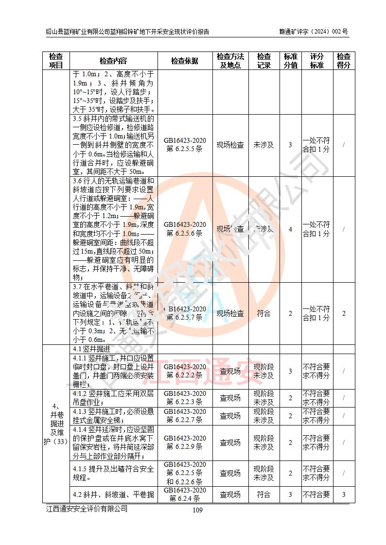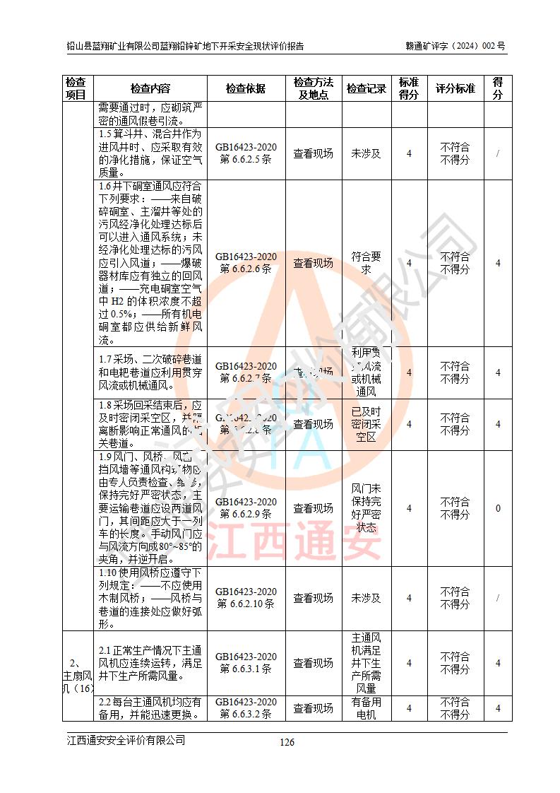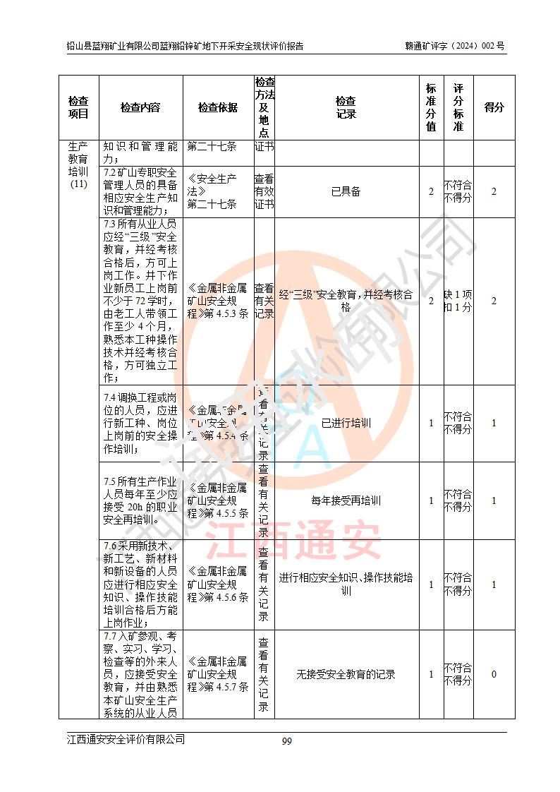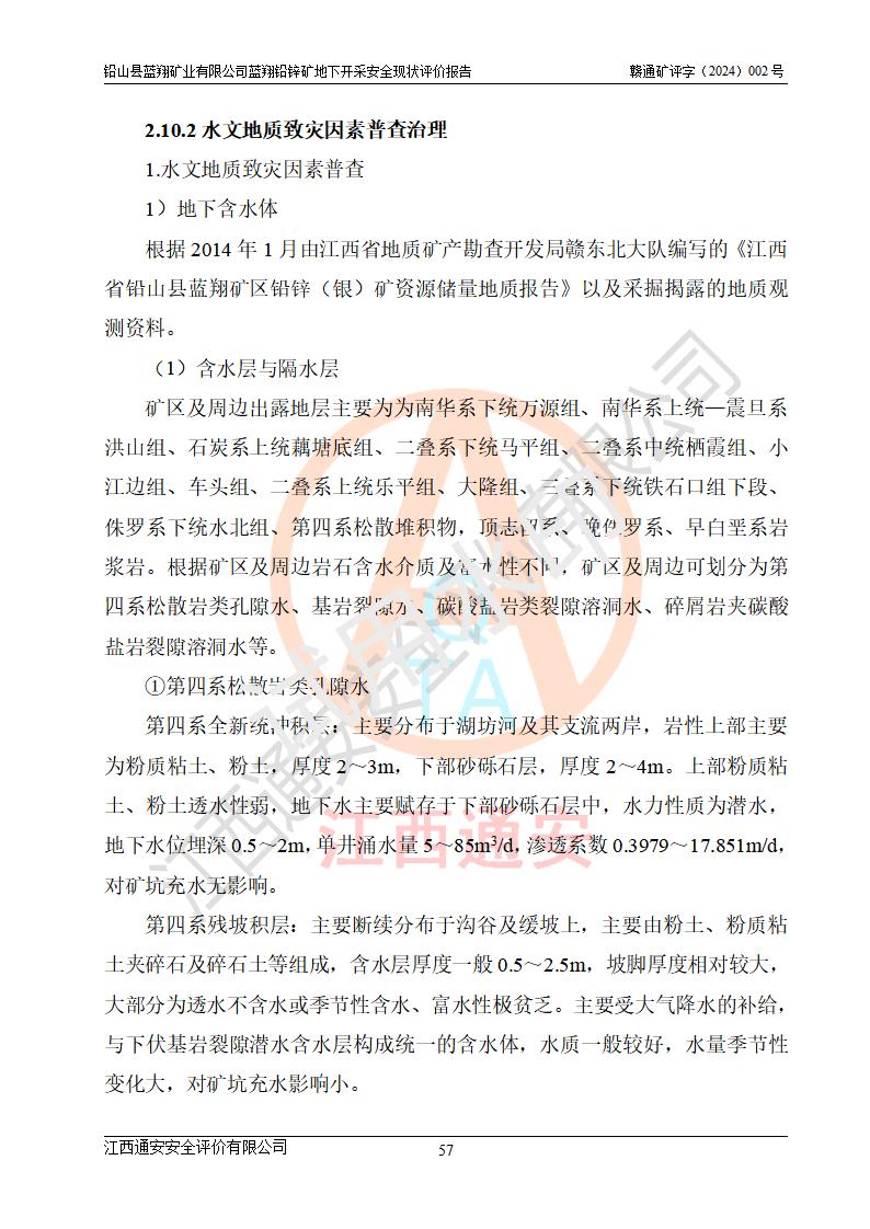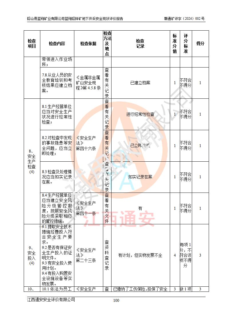 报告名称 | 铅山县蓝翔矿业有限公司蓝翔铅锌矿地下开采安全现状评价报告 | |||||