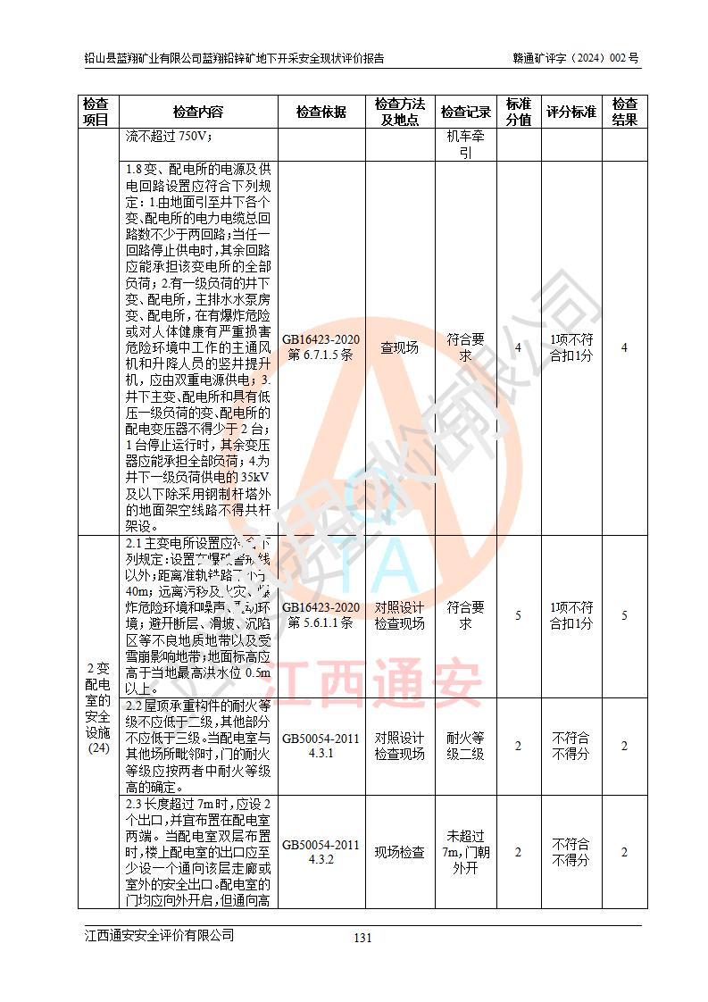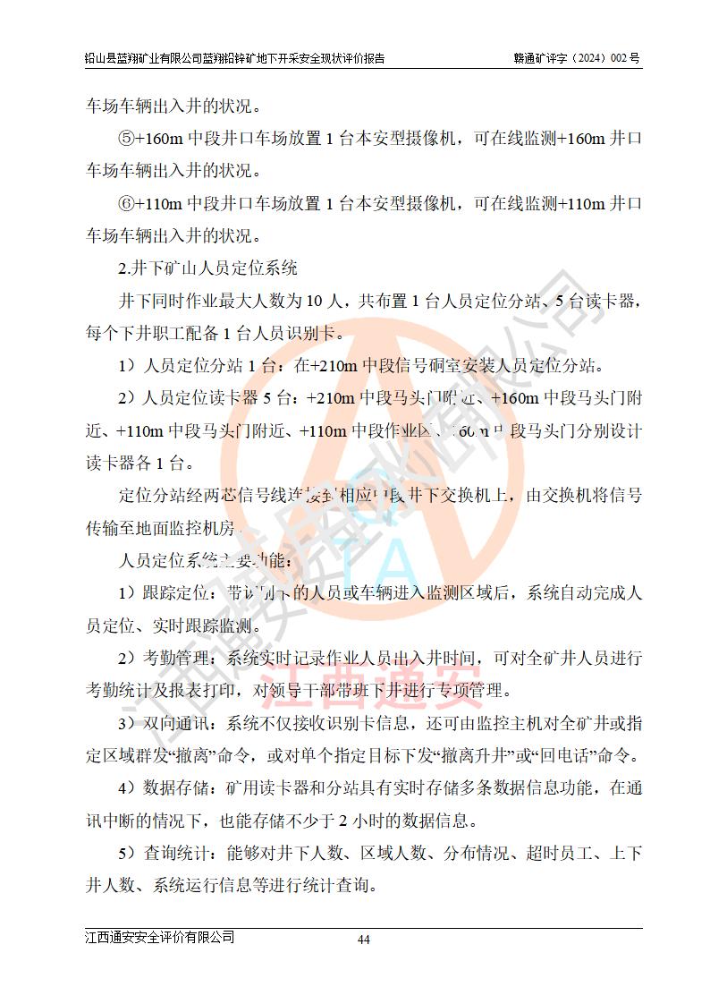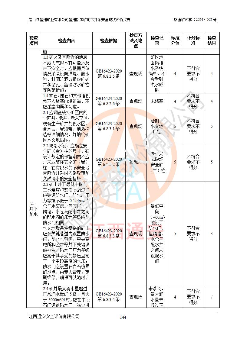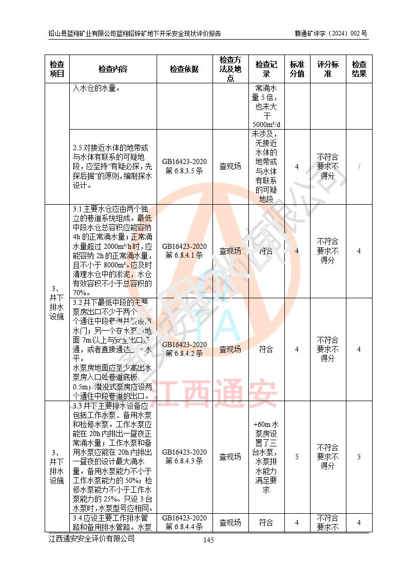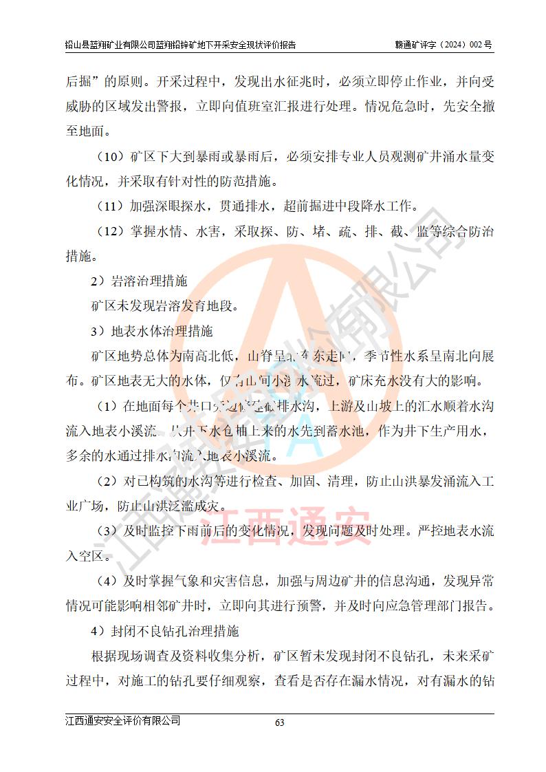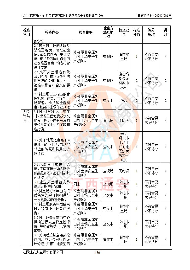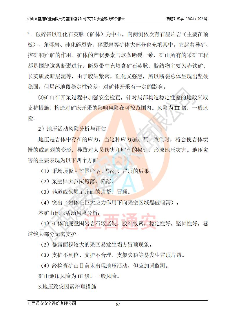报告名称 | 铅山县蓝翔矿业有限公司蓝翔铅锌矿地下开采安全现状评价报告 | |||||