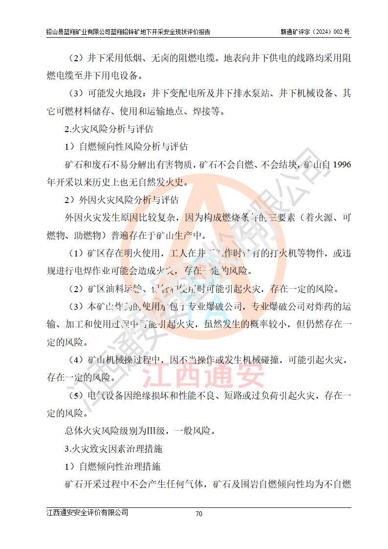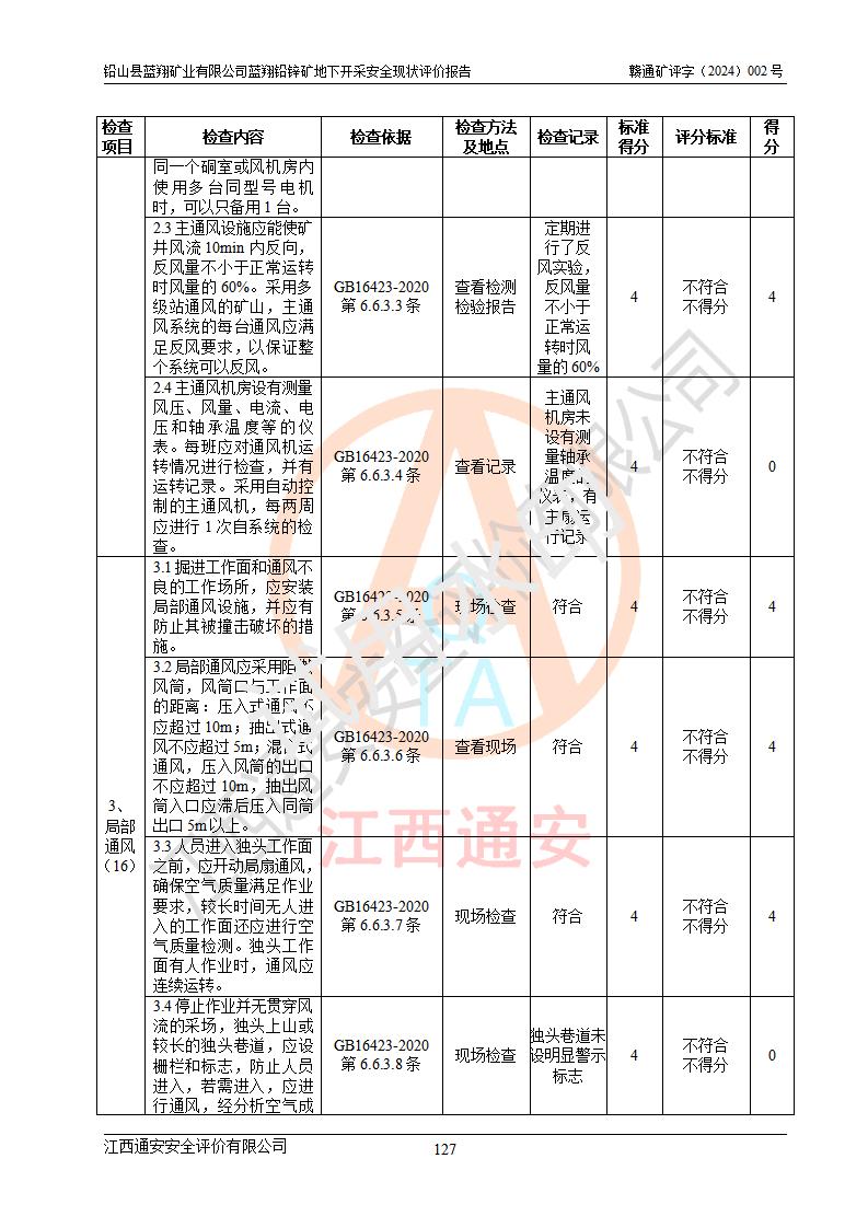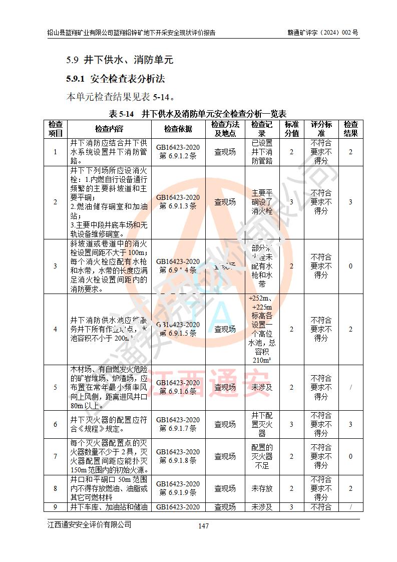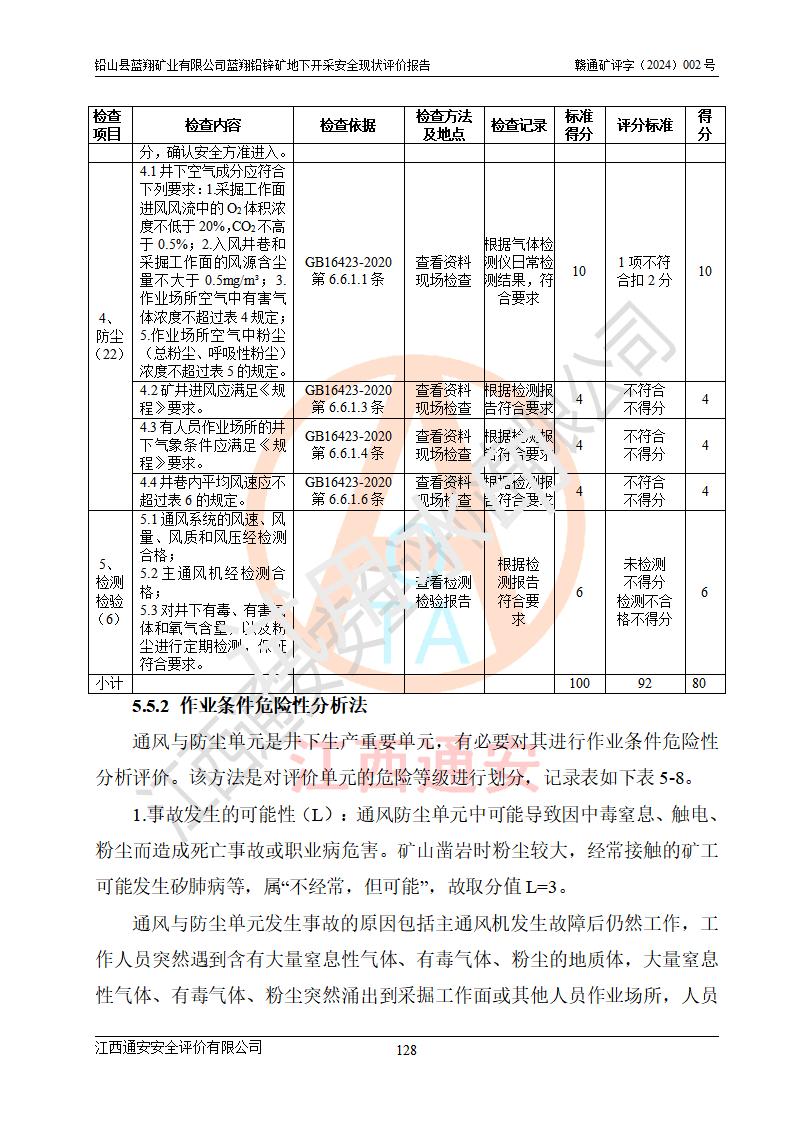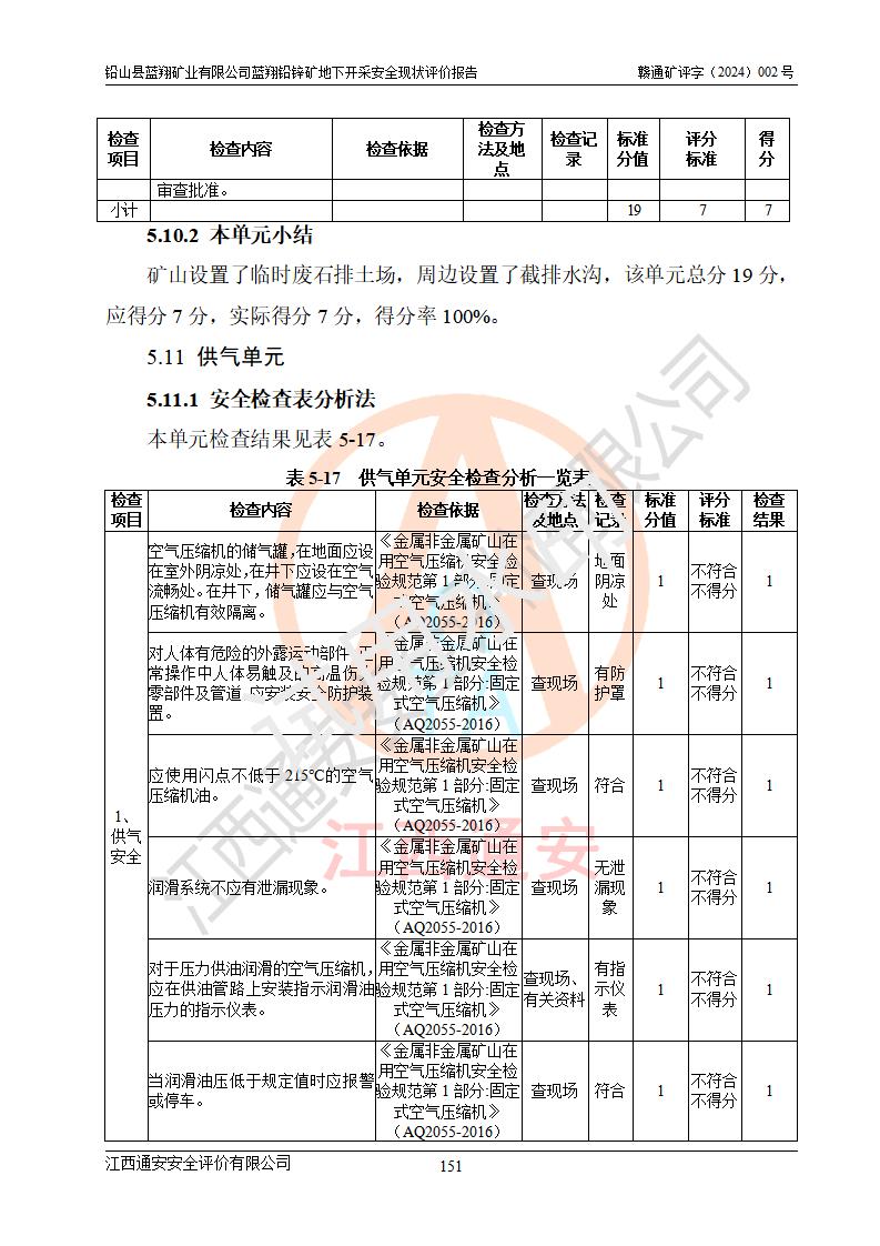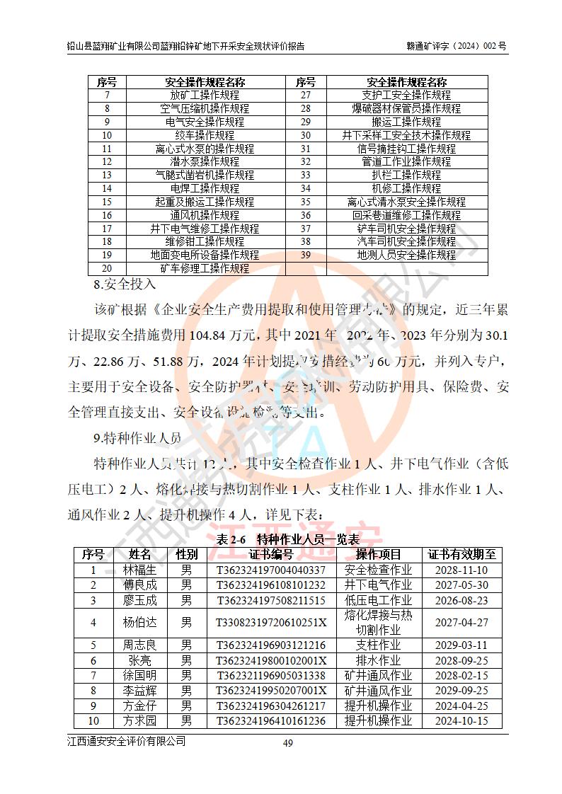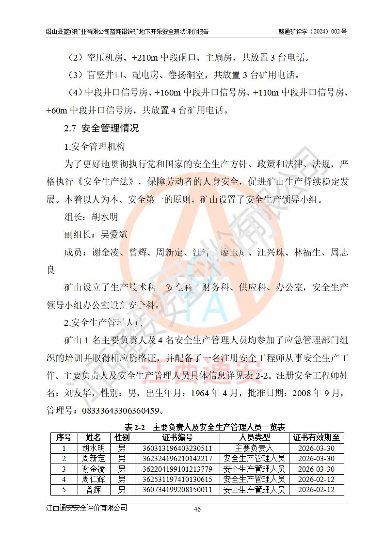 报告名称 | 铅山县蓝翔矿业有限公司蓝翔铅锌矿地下开采安全现状评价报告 | |||||
