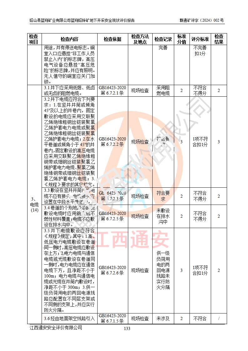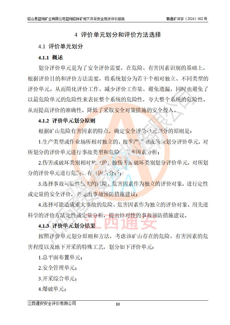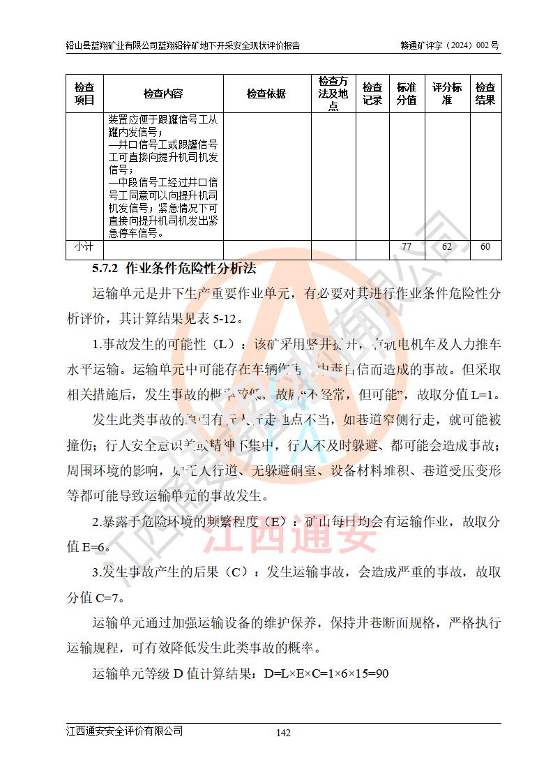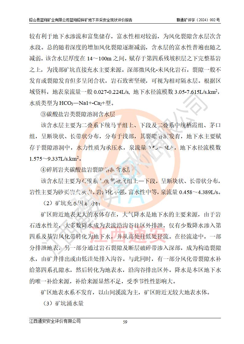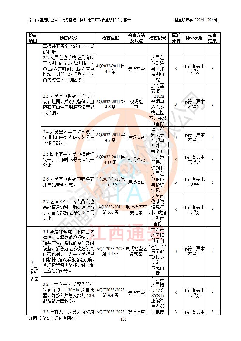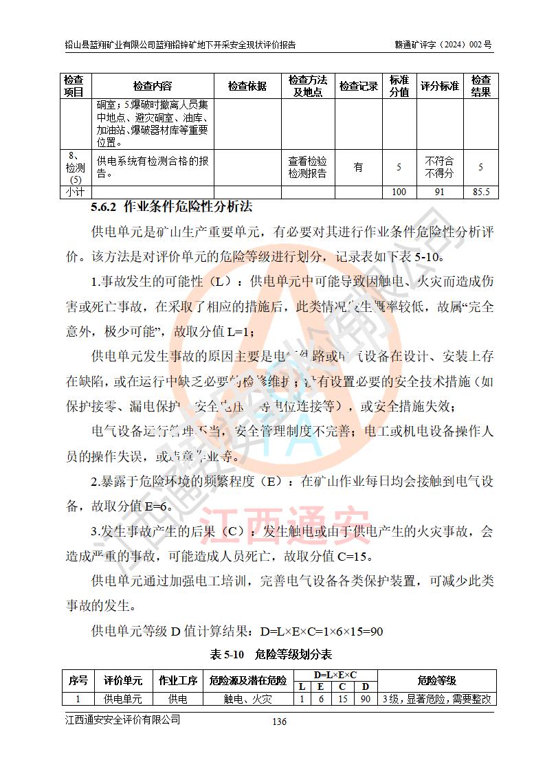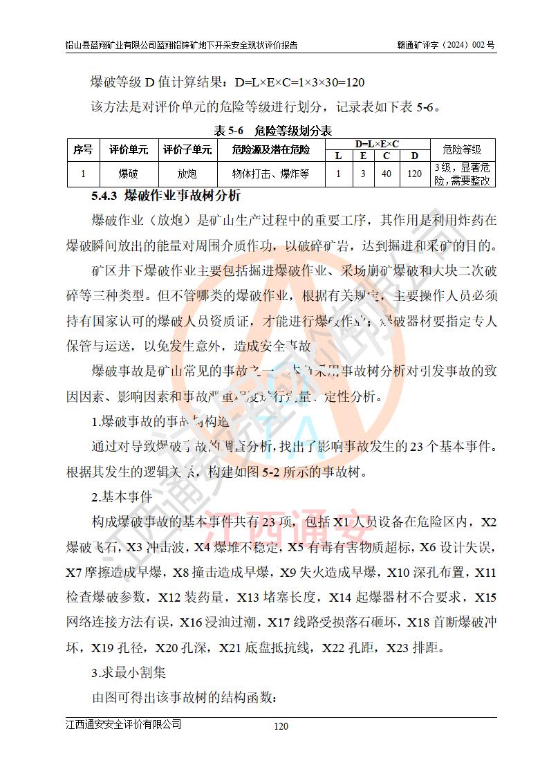 报告名称 | 铅山县蓝翔矿业有限公司蓝翔铅锌矿地下开采安全现状评价报告 | |||||