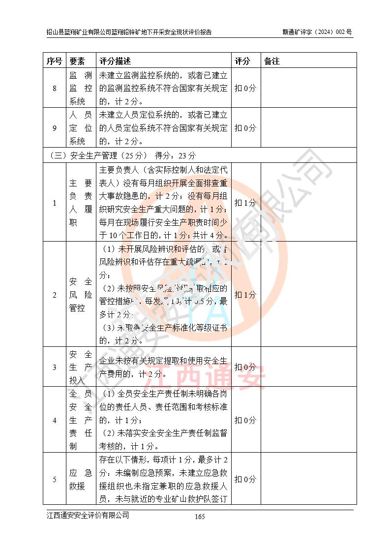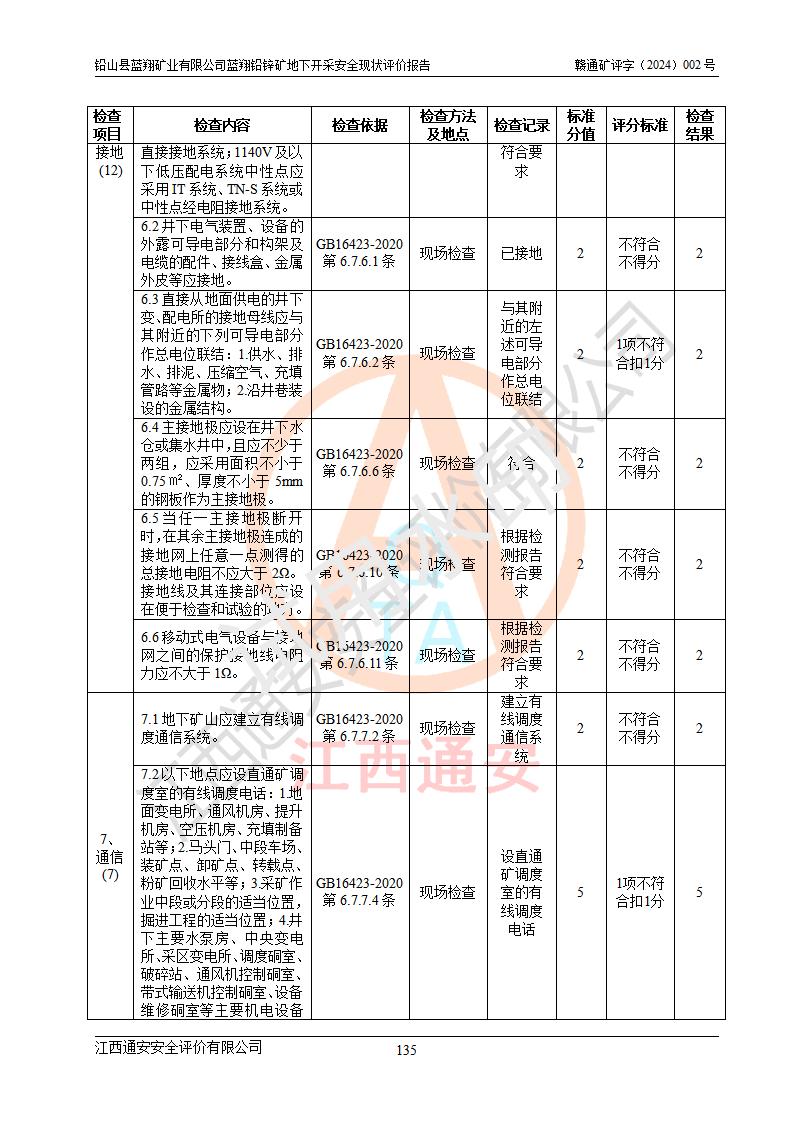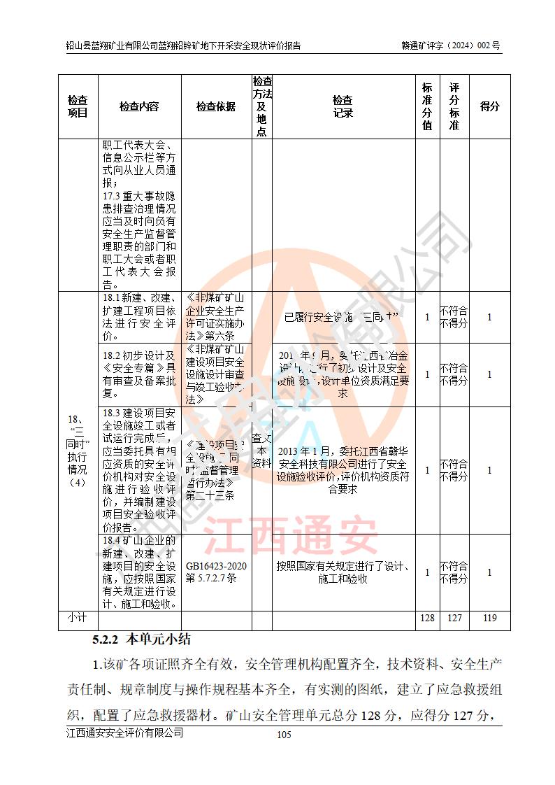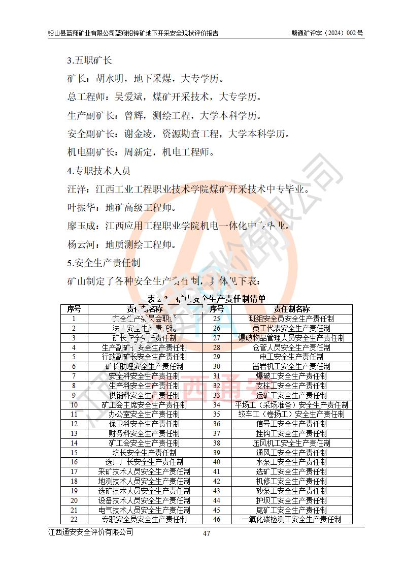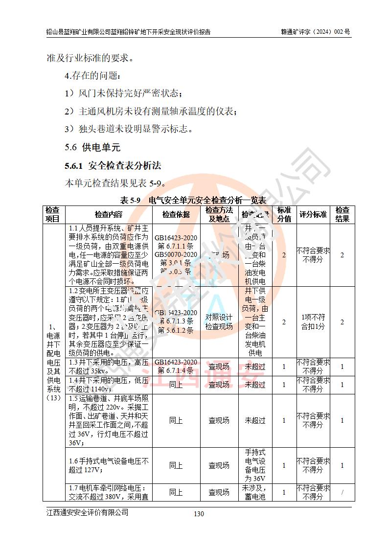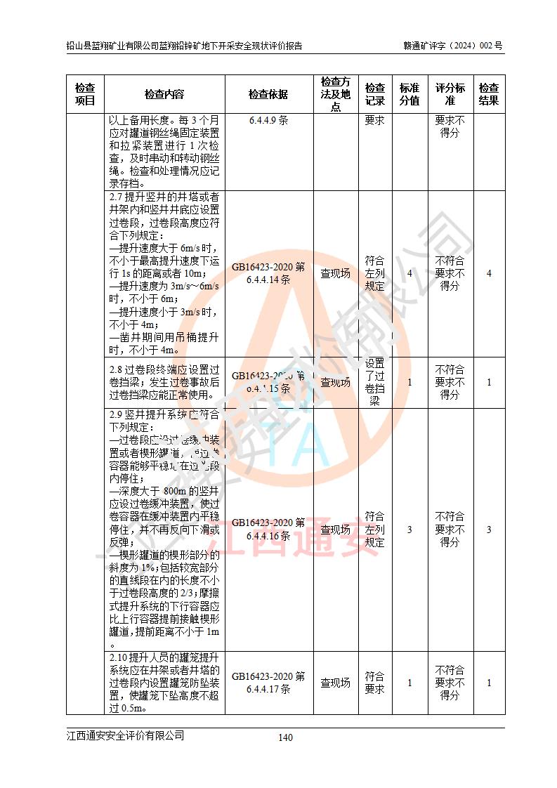 报告名称 | 铅山县蓝翔矿业有限公司蓝翔铅锌矿地下开采安全现状评价报告 | |||||