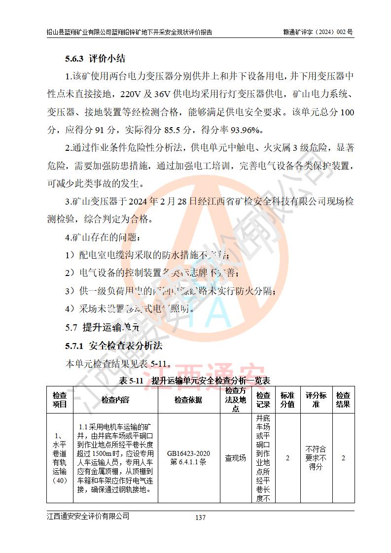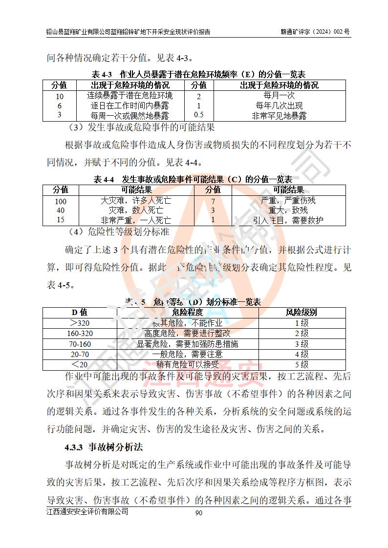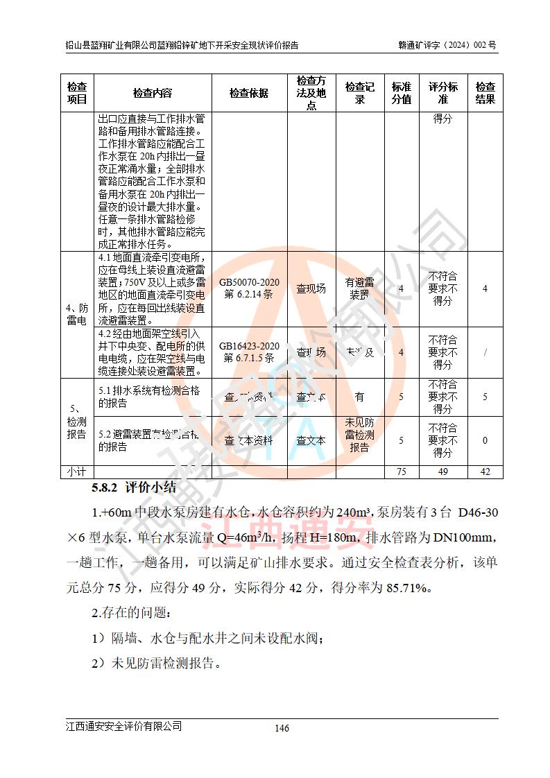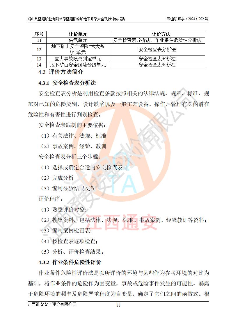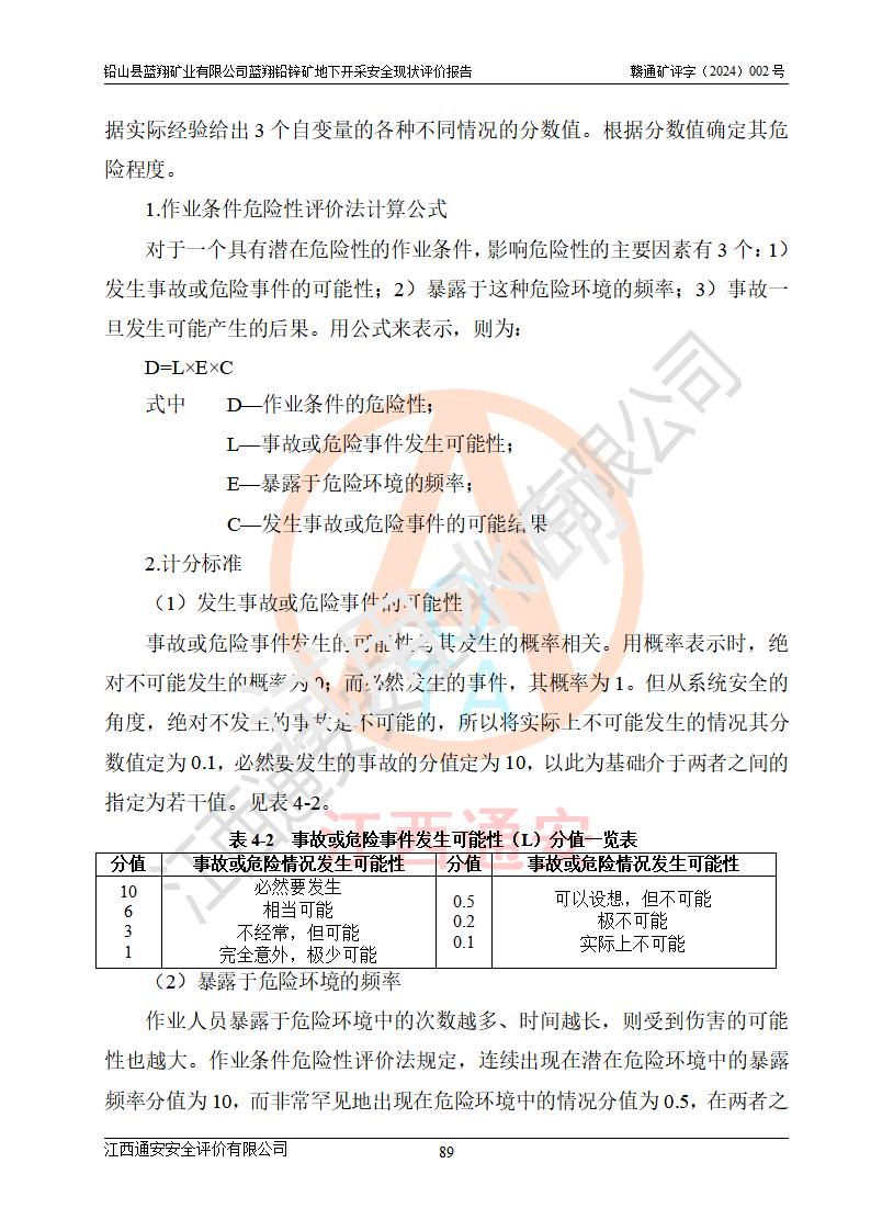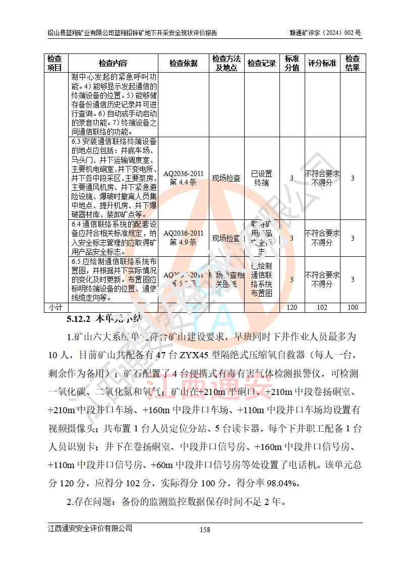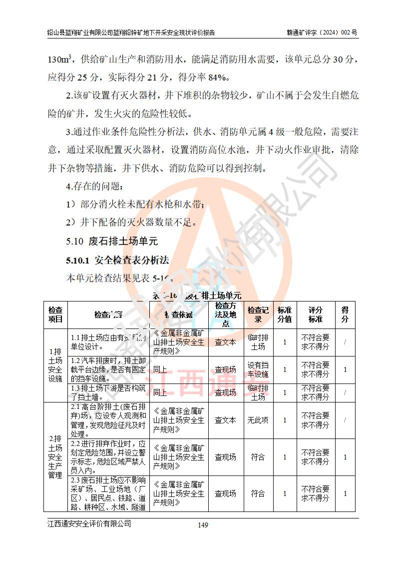 报告名称 | 铅山县蓝翔矿业有限公司蓝翔铅锌矿地下开采安全现状评价报告 | |||||