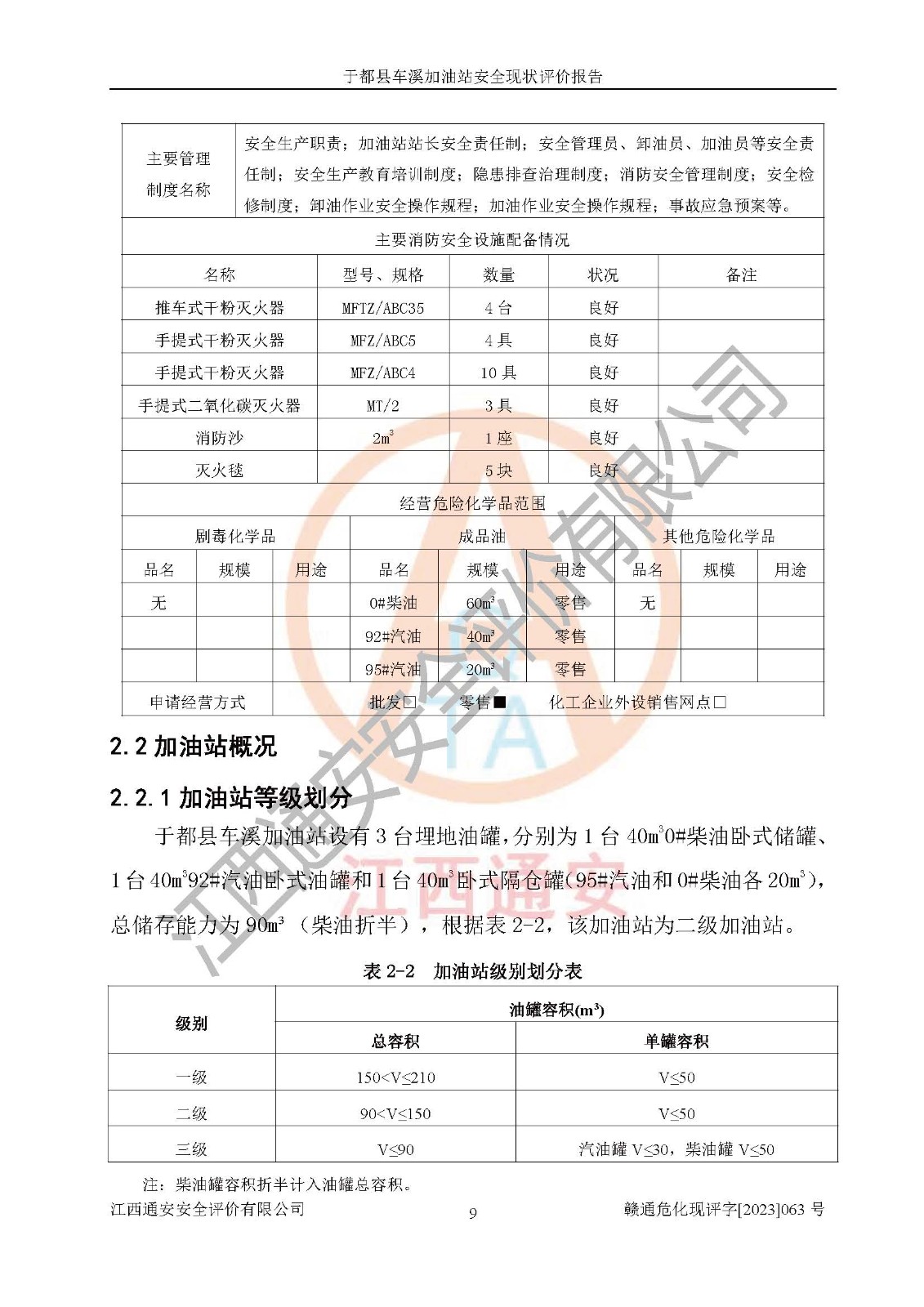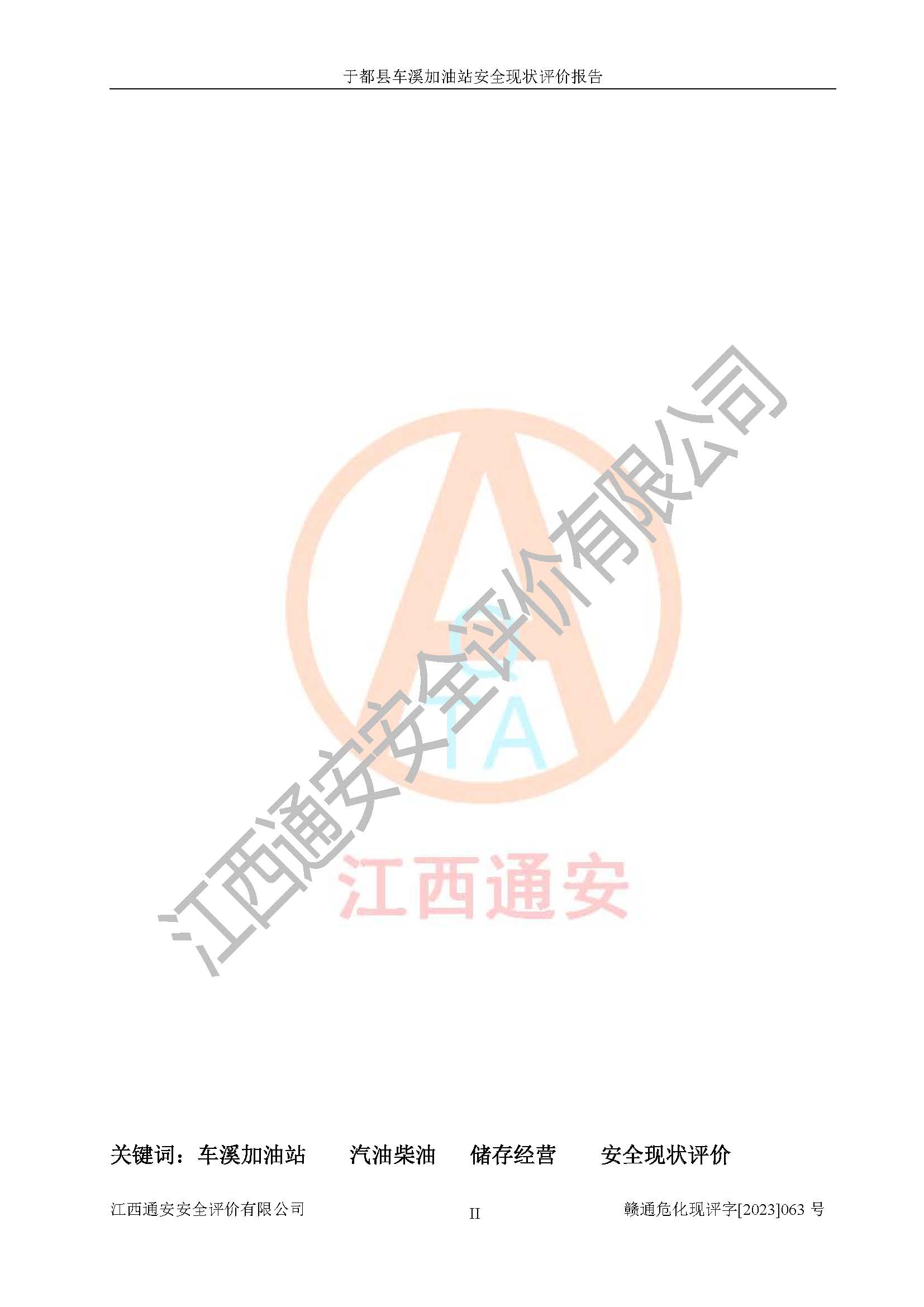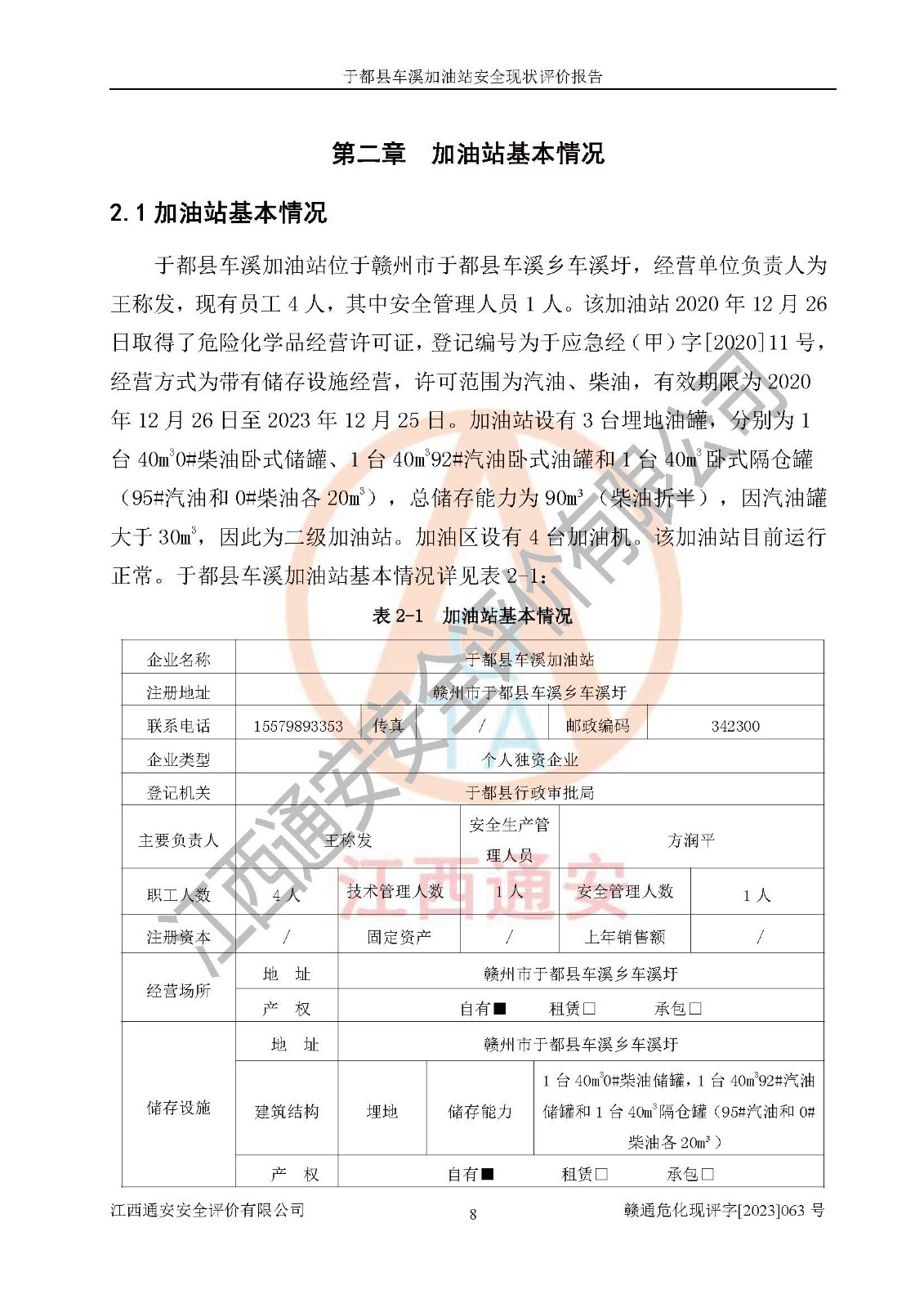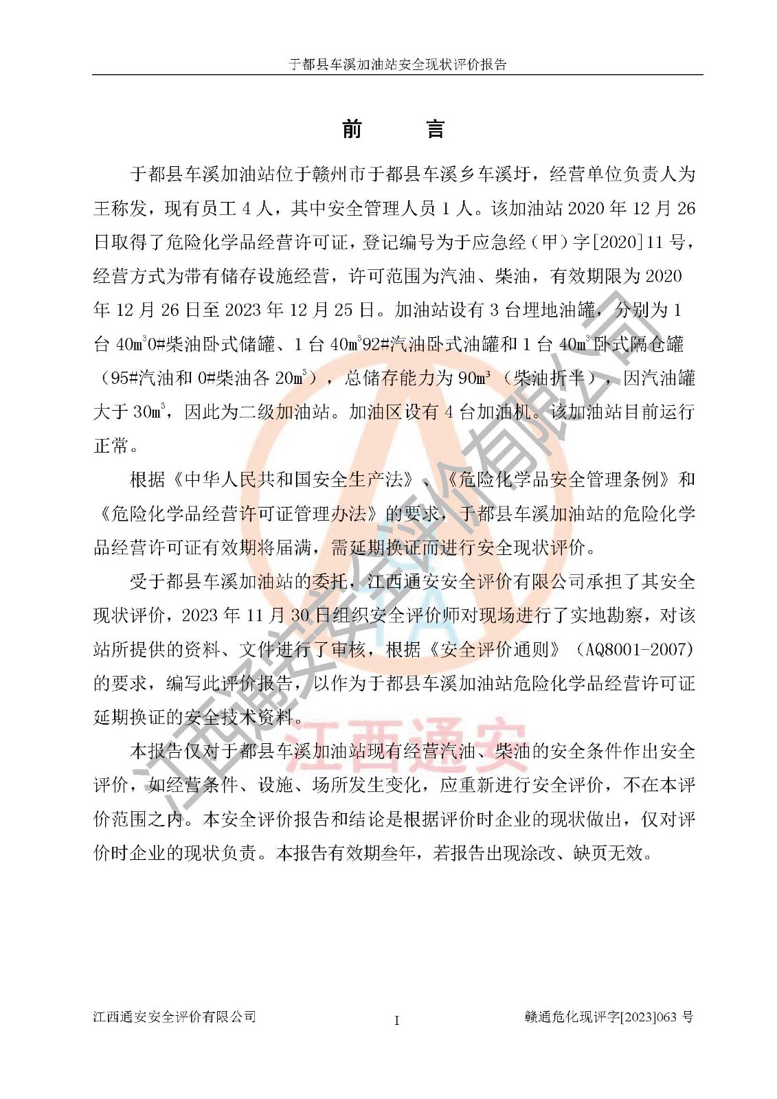 评价报告名称 | 于都县车溪加油站安全现状评价报告 | |||