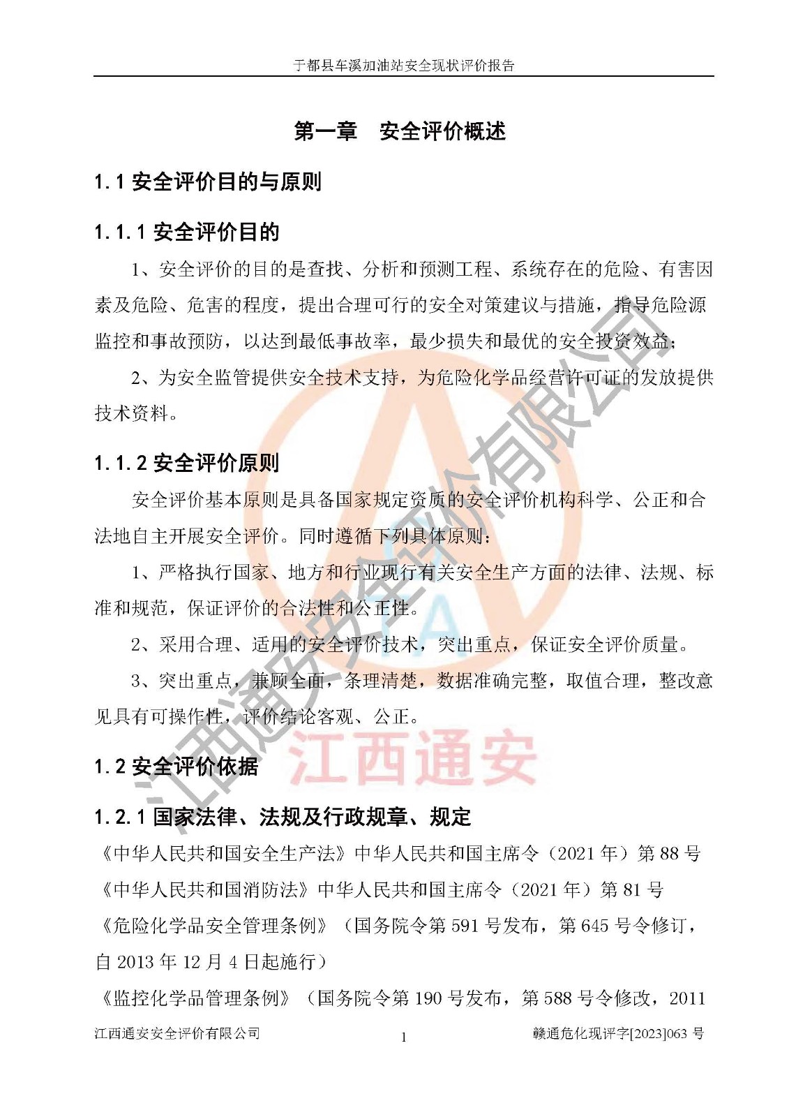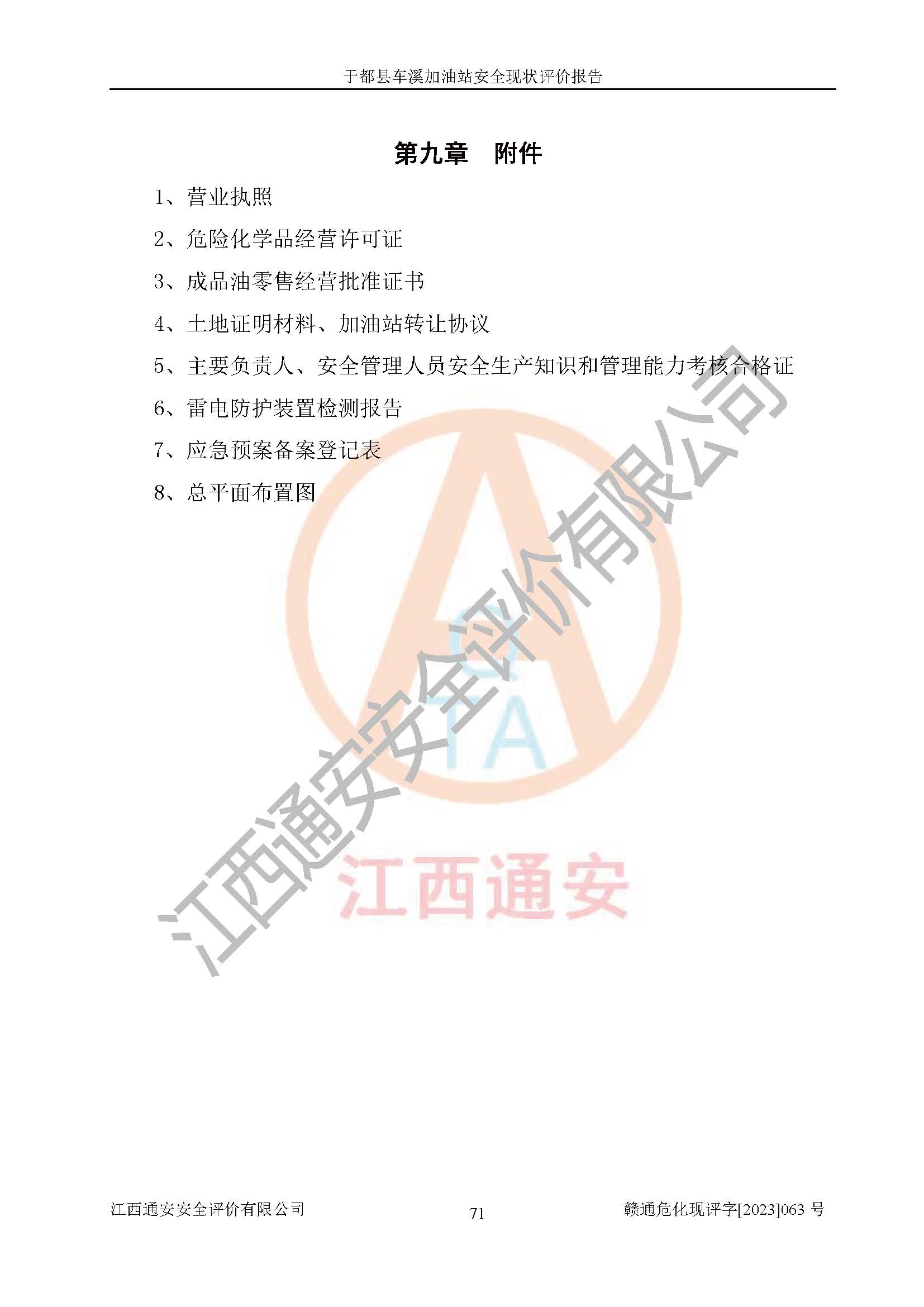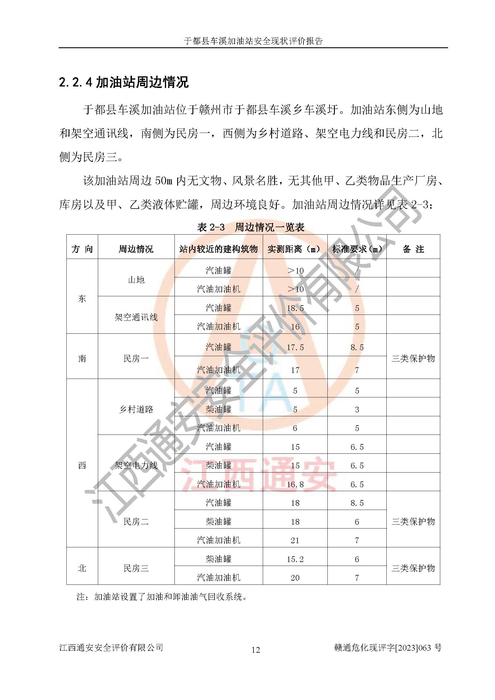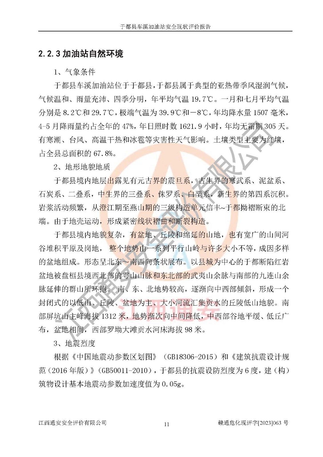评价报告名称 | 于都县车溪加油站安全现状评价报告 | |||