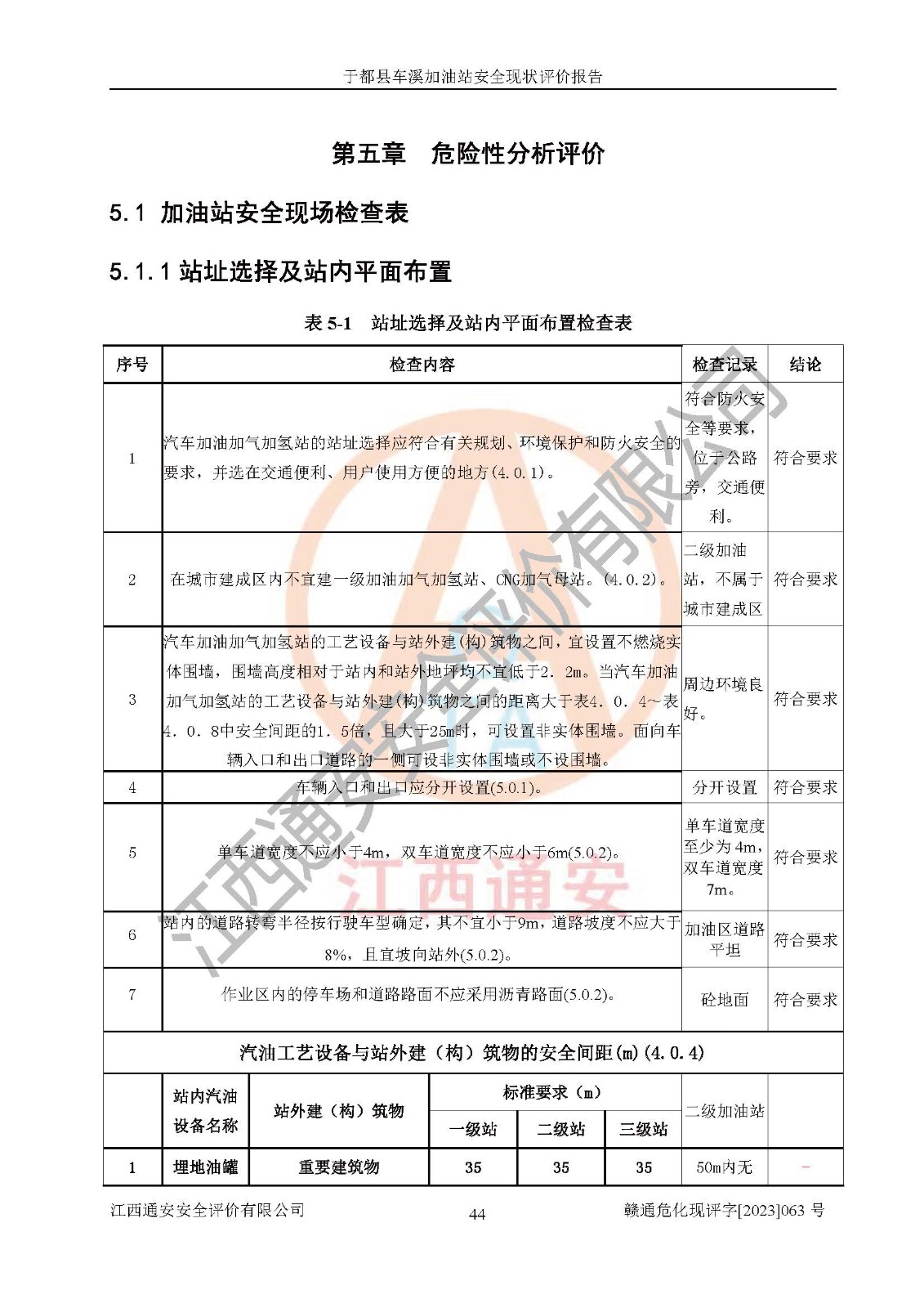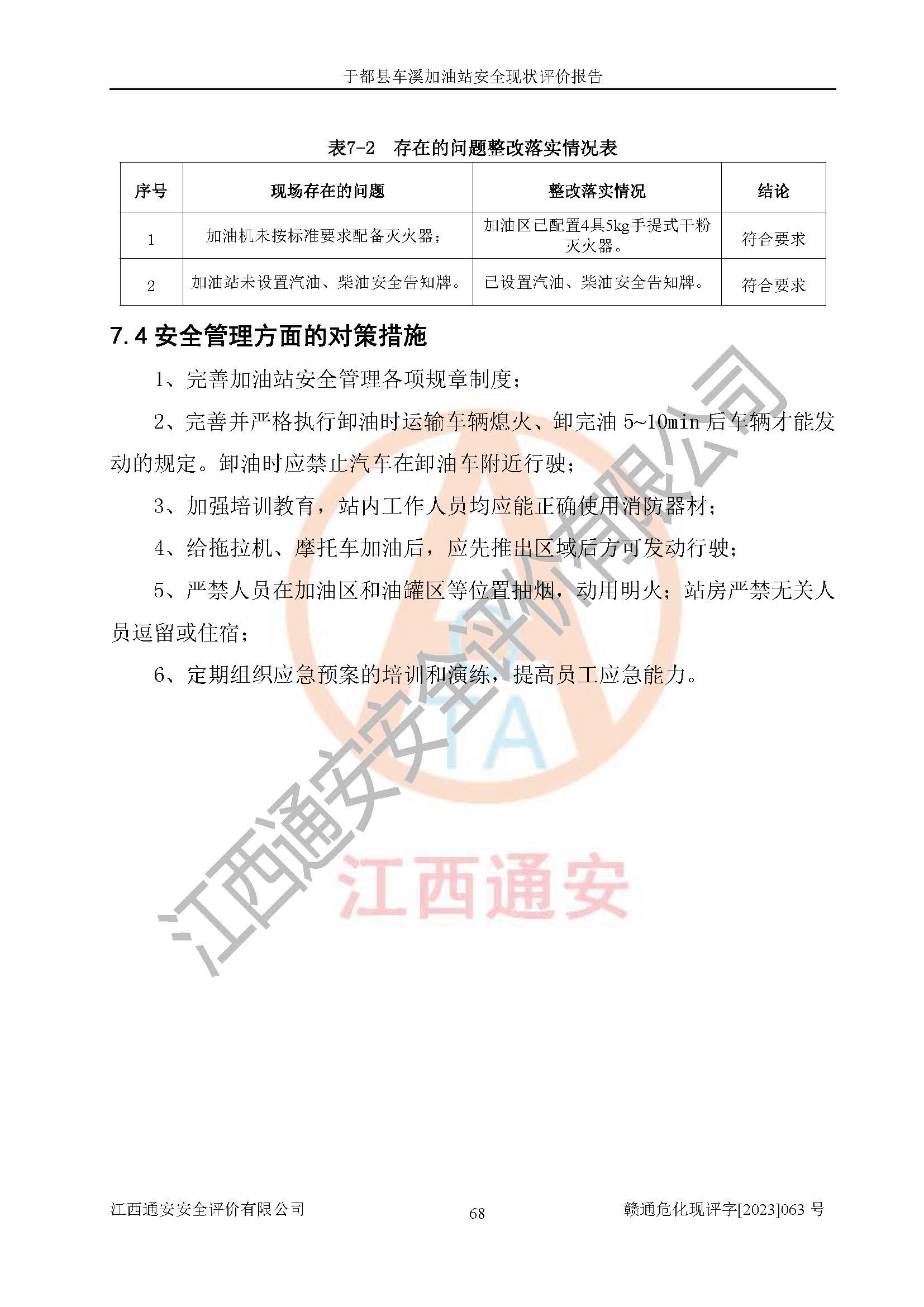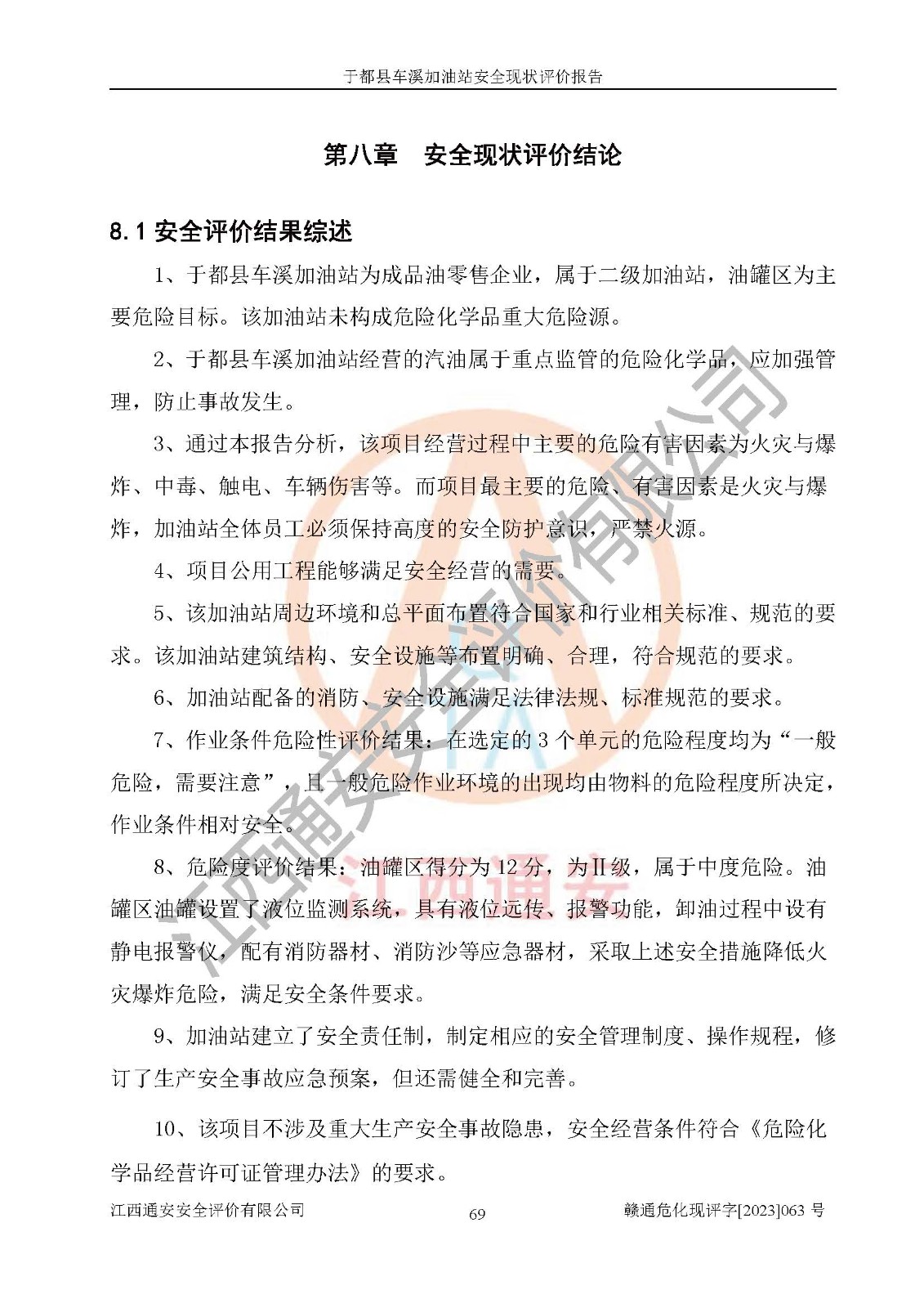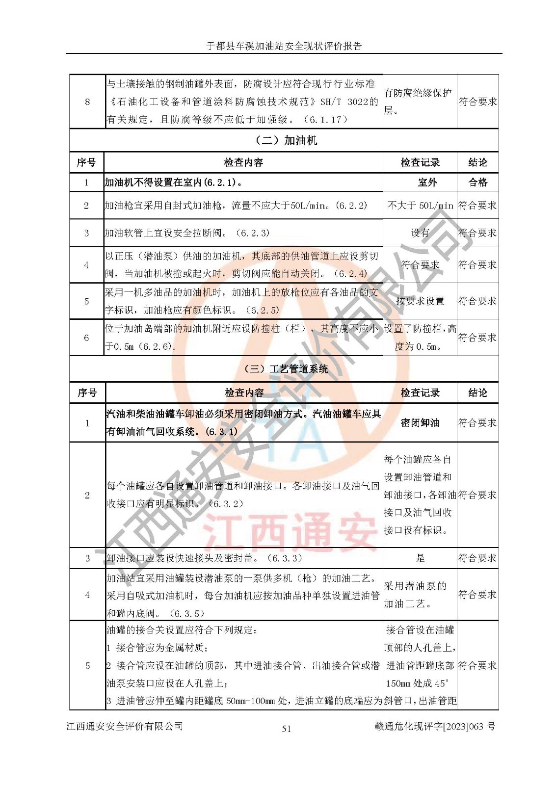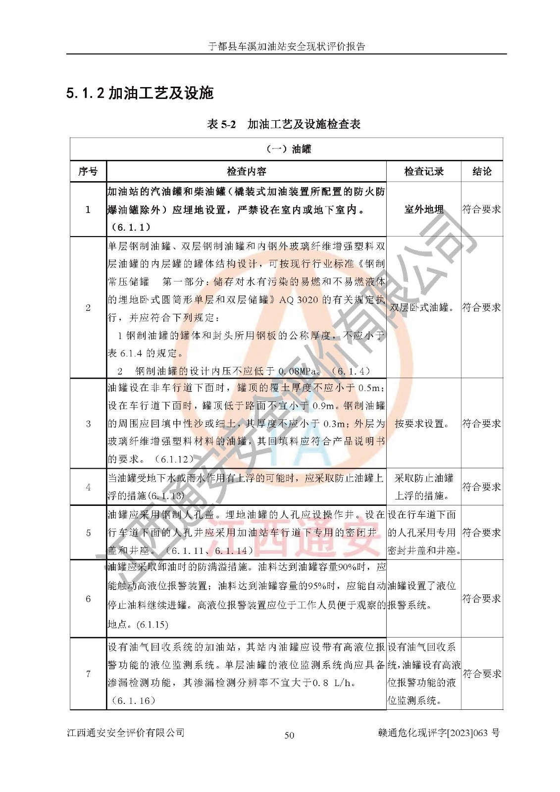 评价结论 | 于都县车溪加油站安全现状符合危险化学品经营安全条件。 | |||