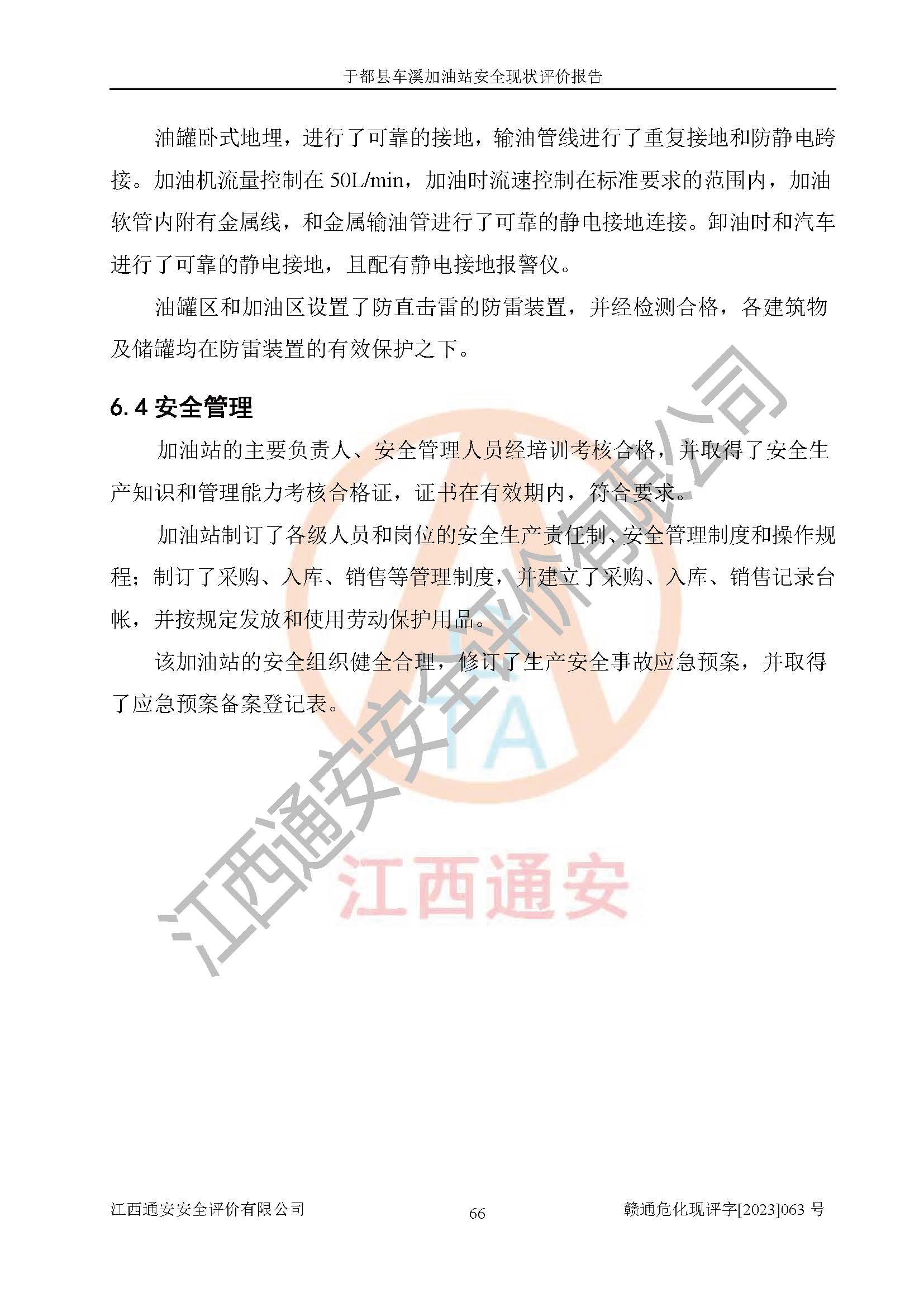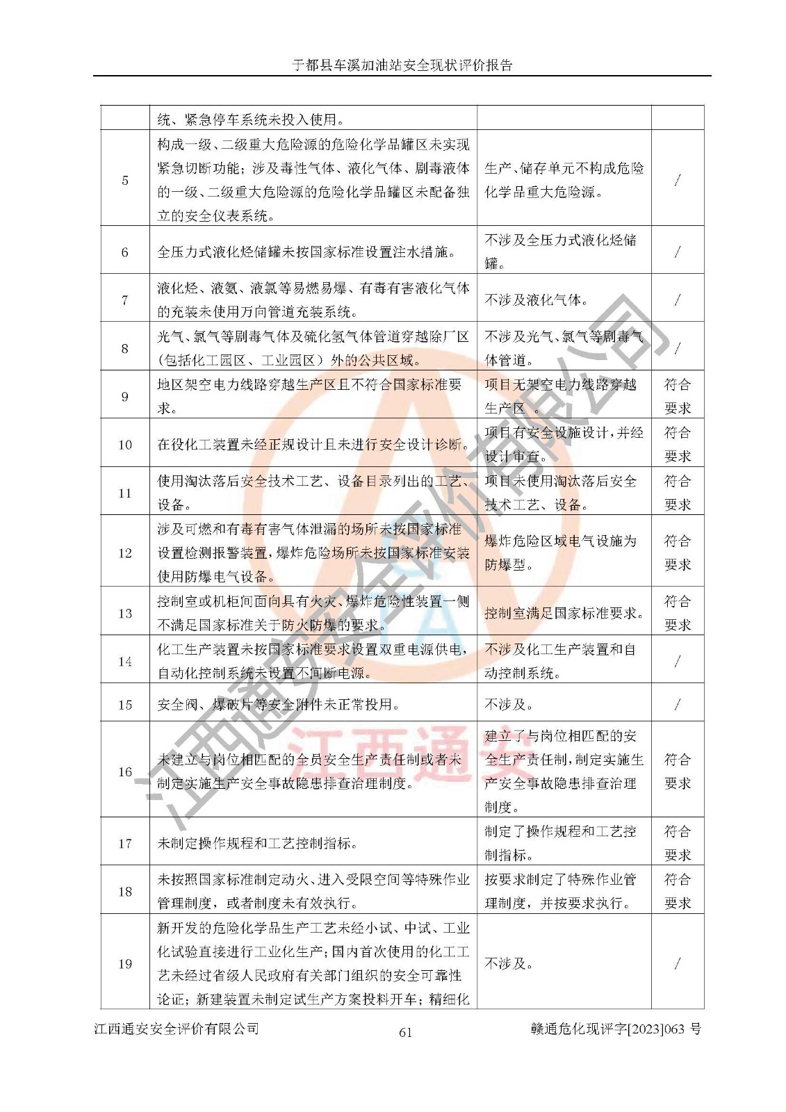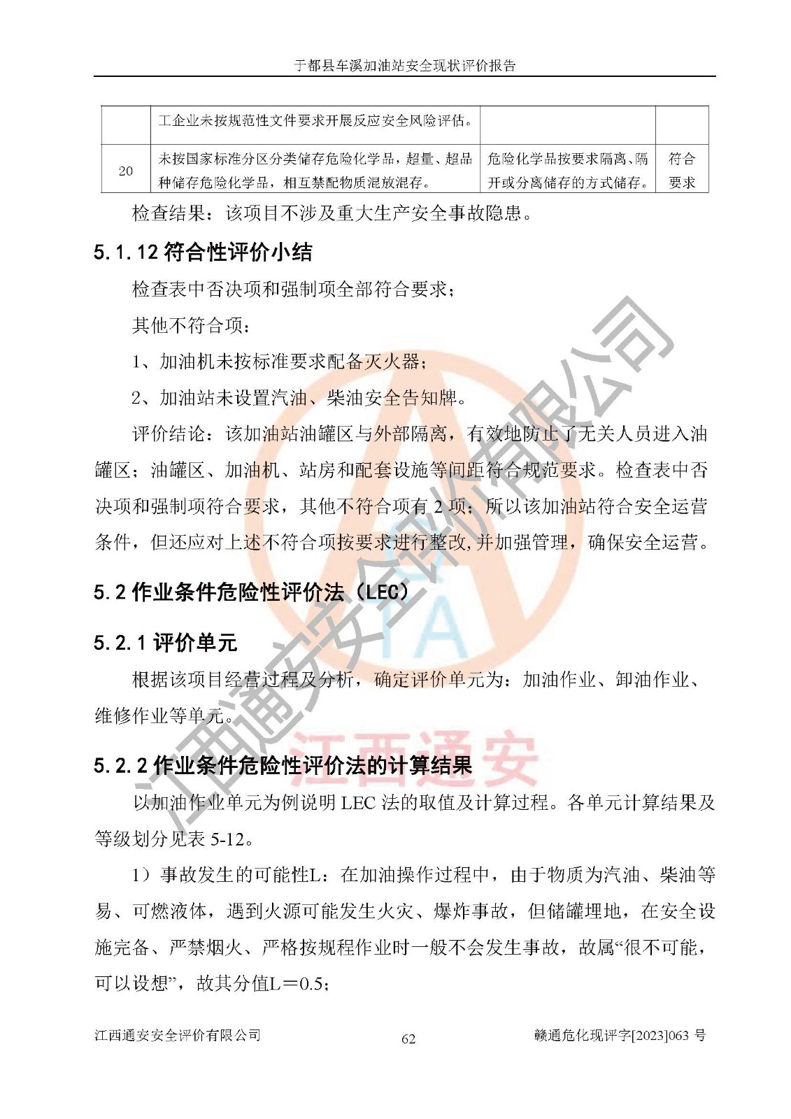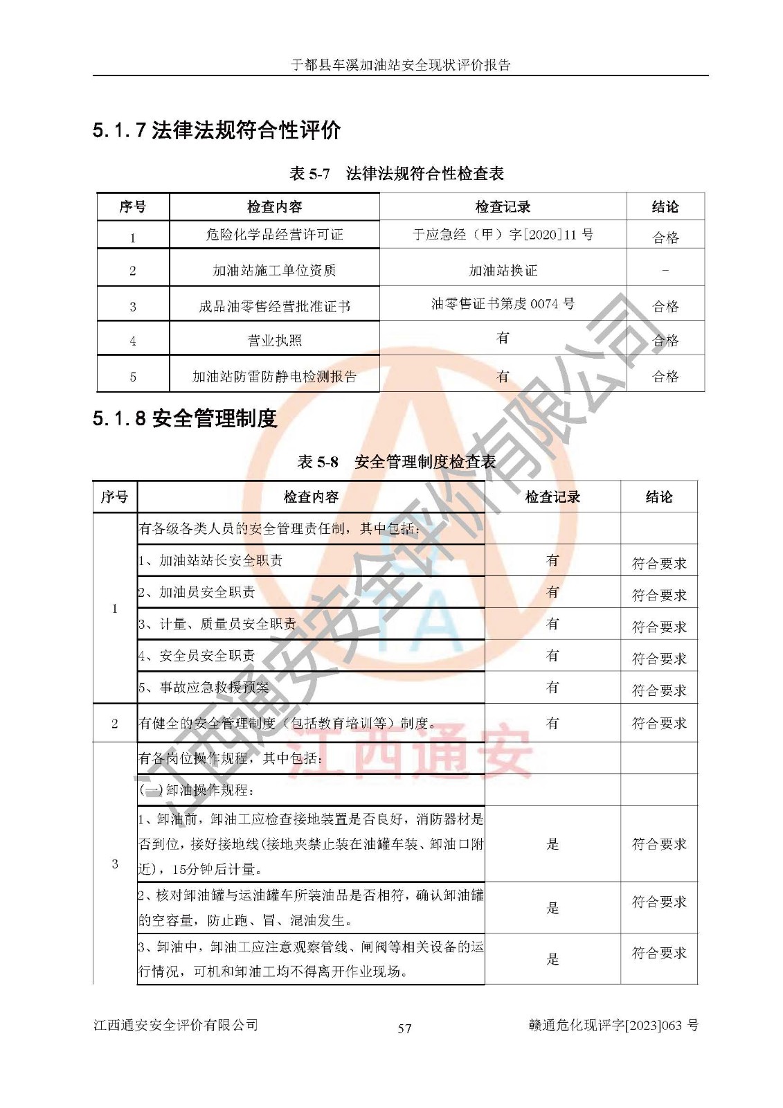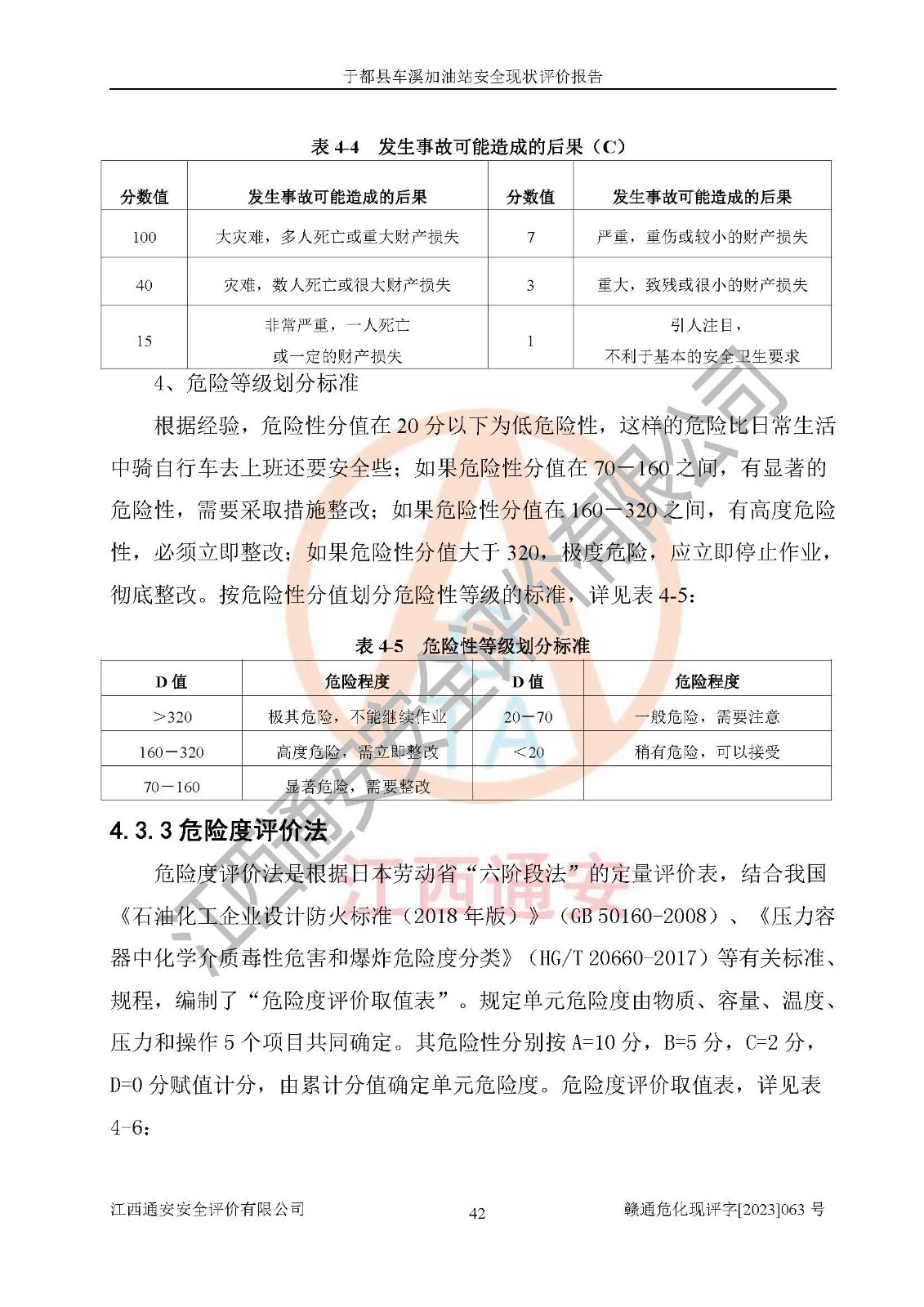 评价结论 | 于都县车溪加油站安全现状符合危险化学品经营安全条件。 | |||