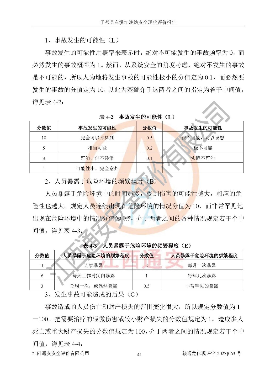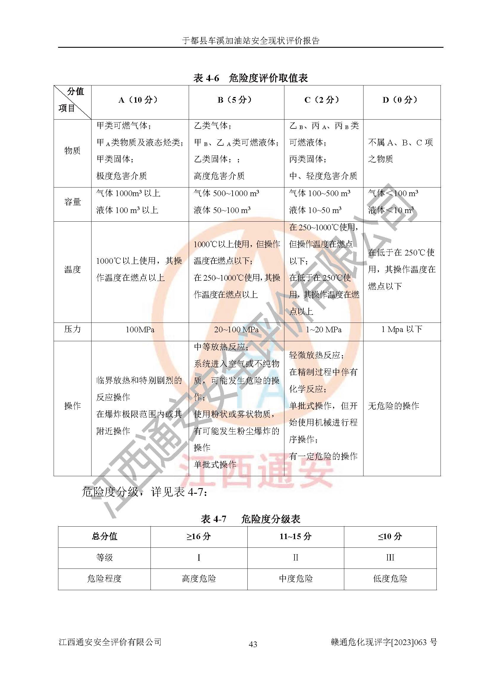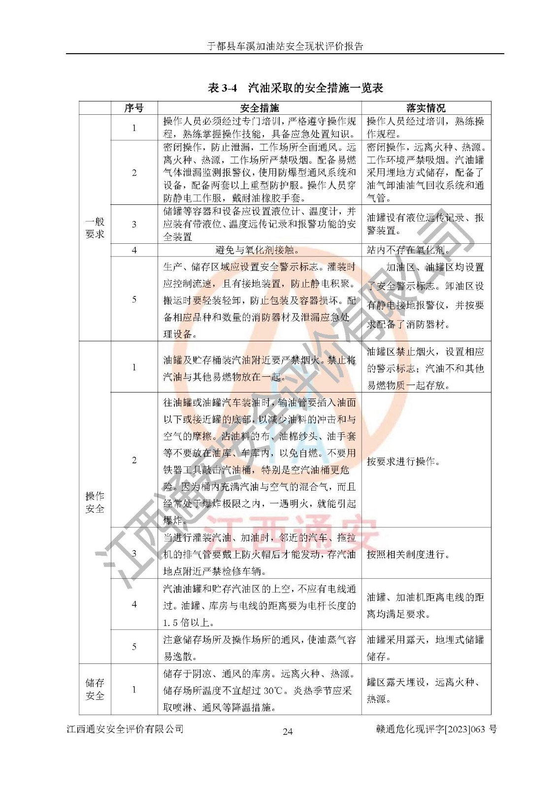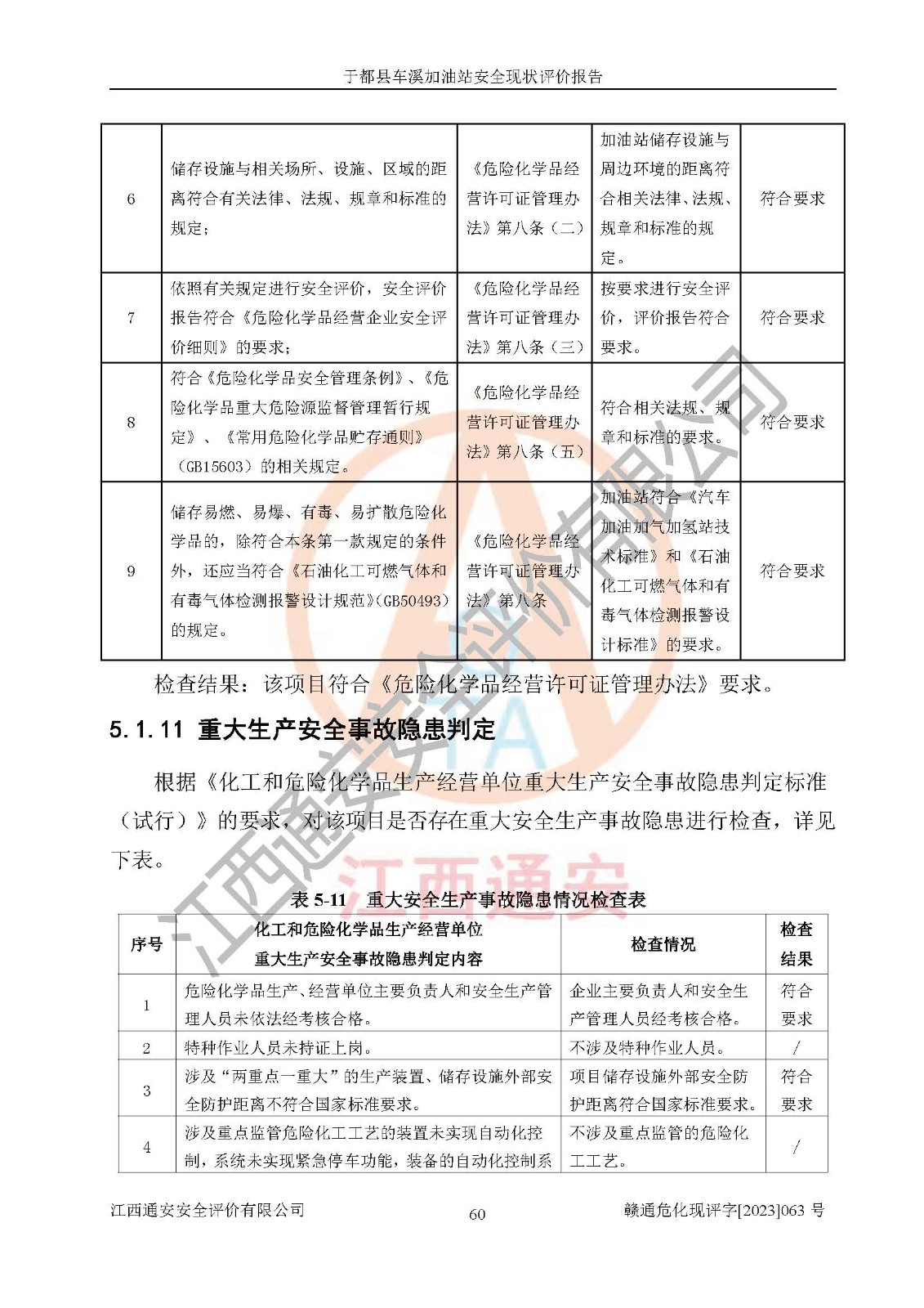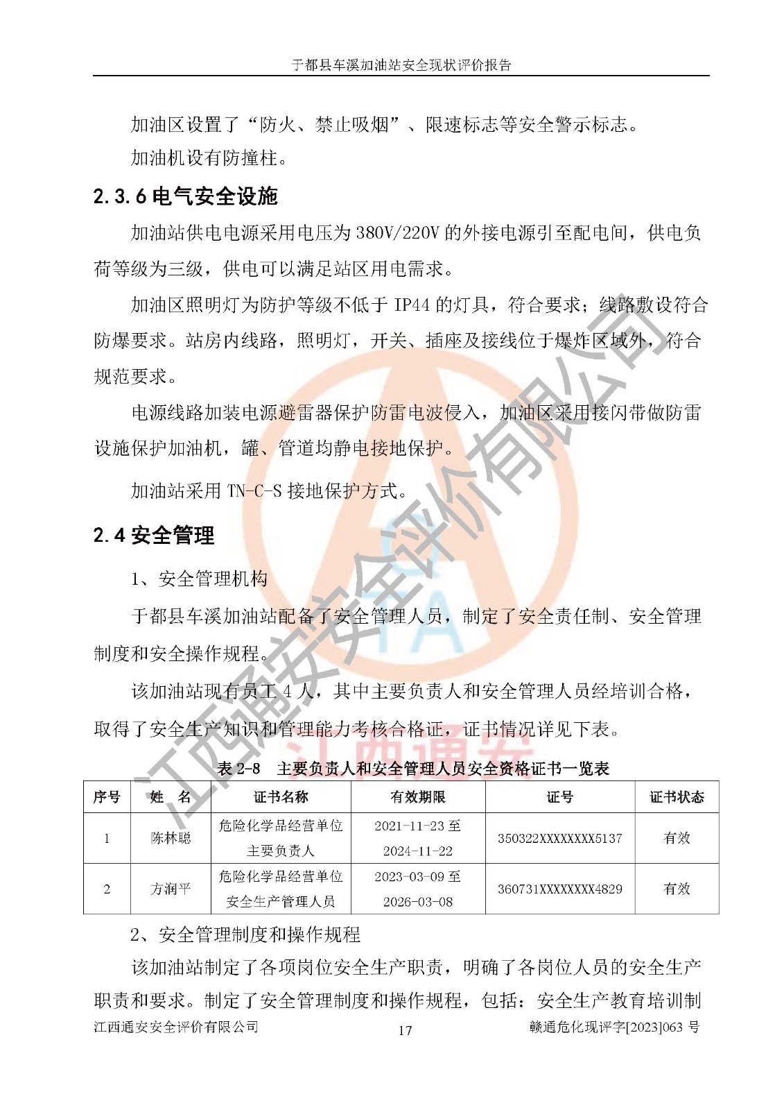 评价结论 | 于都县车溪加油站安全现状符合危险化学品经营安全条件。 | |||