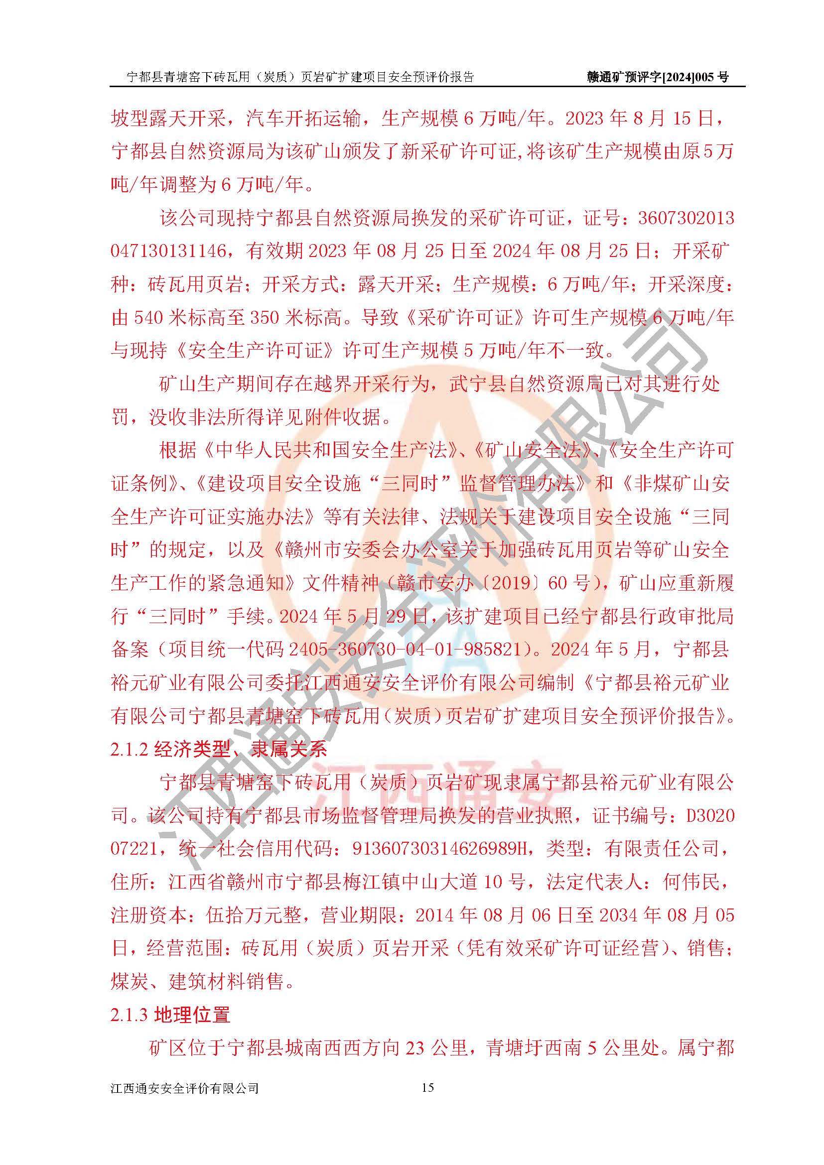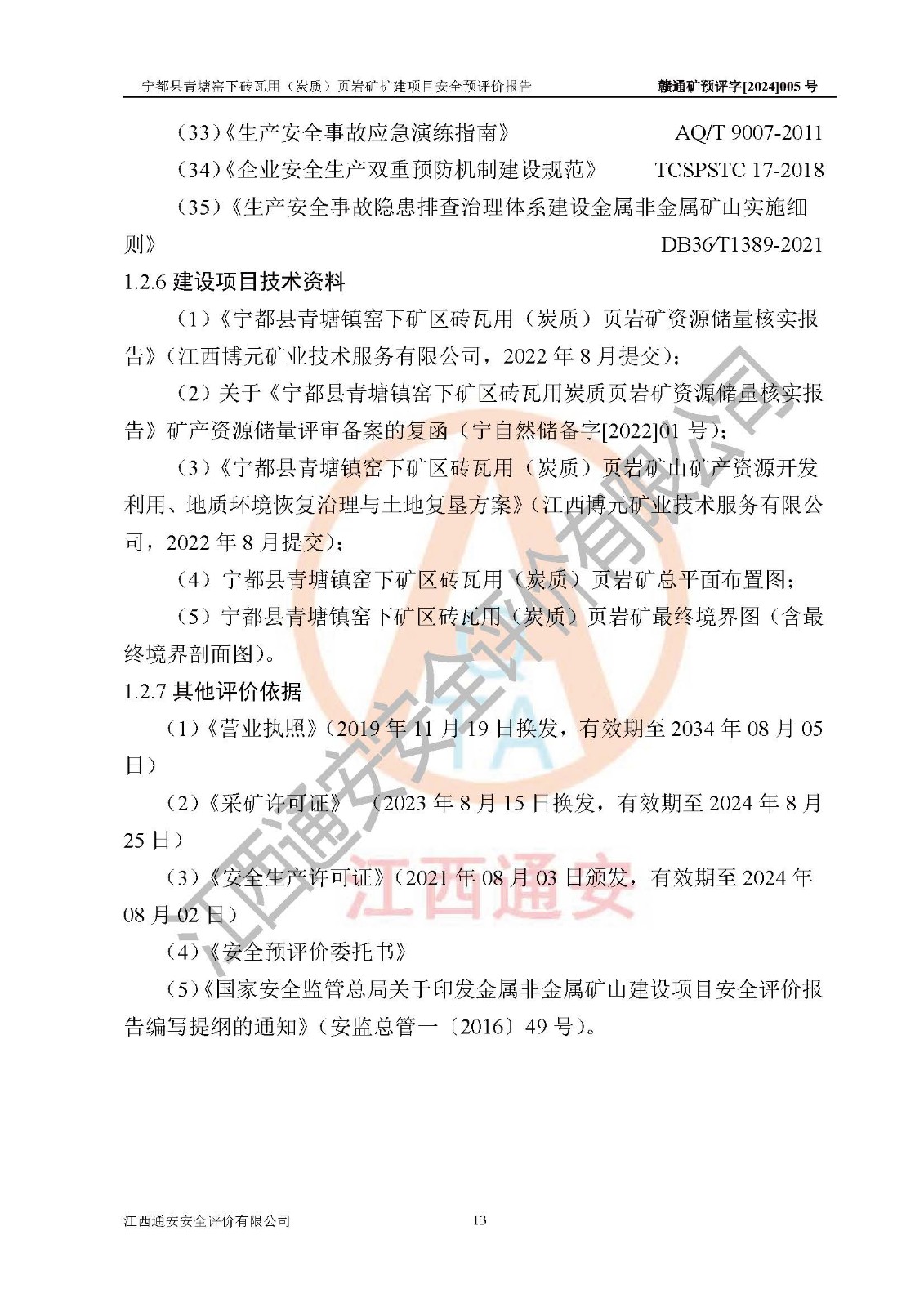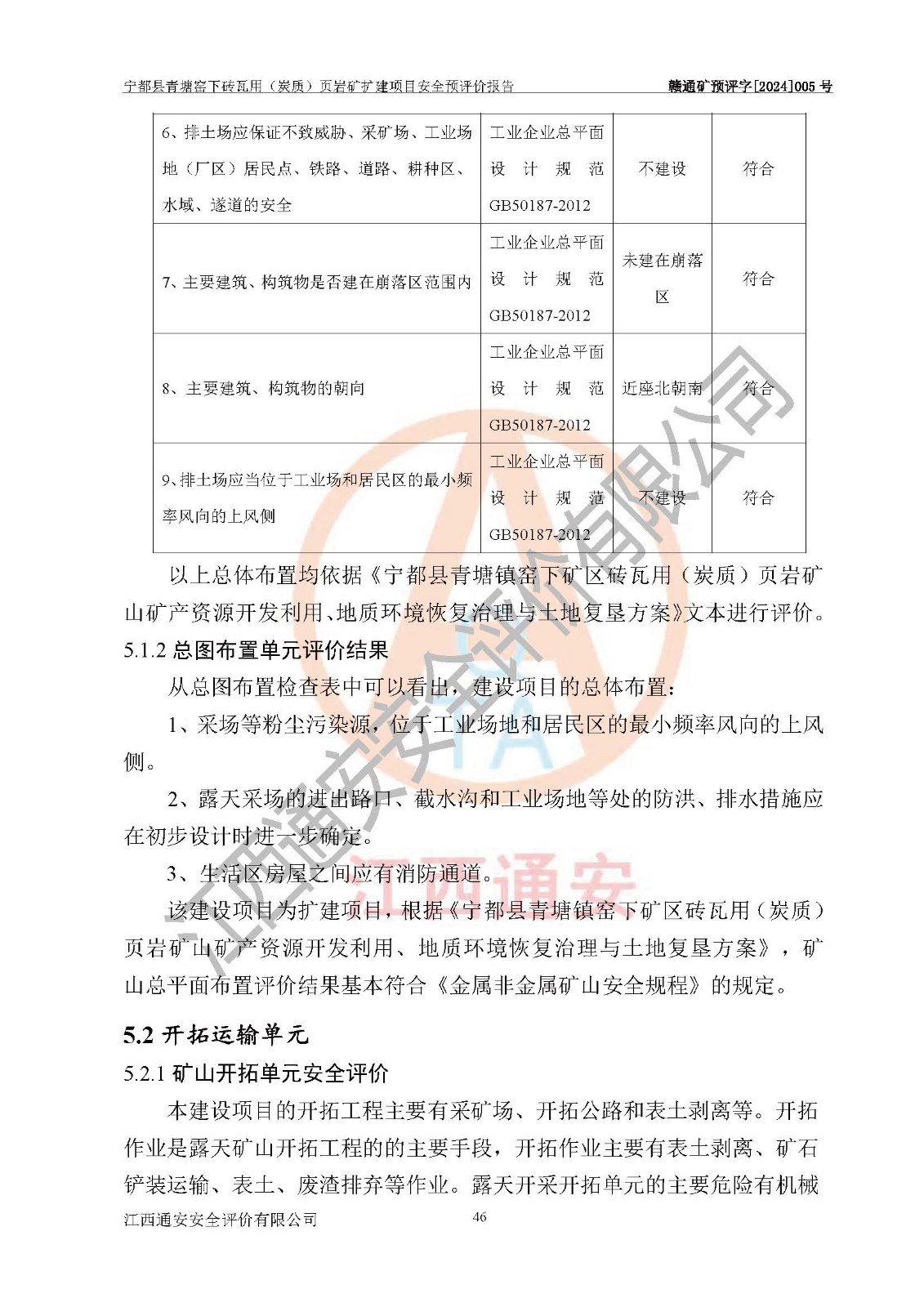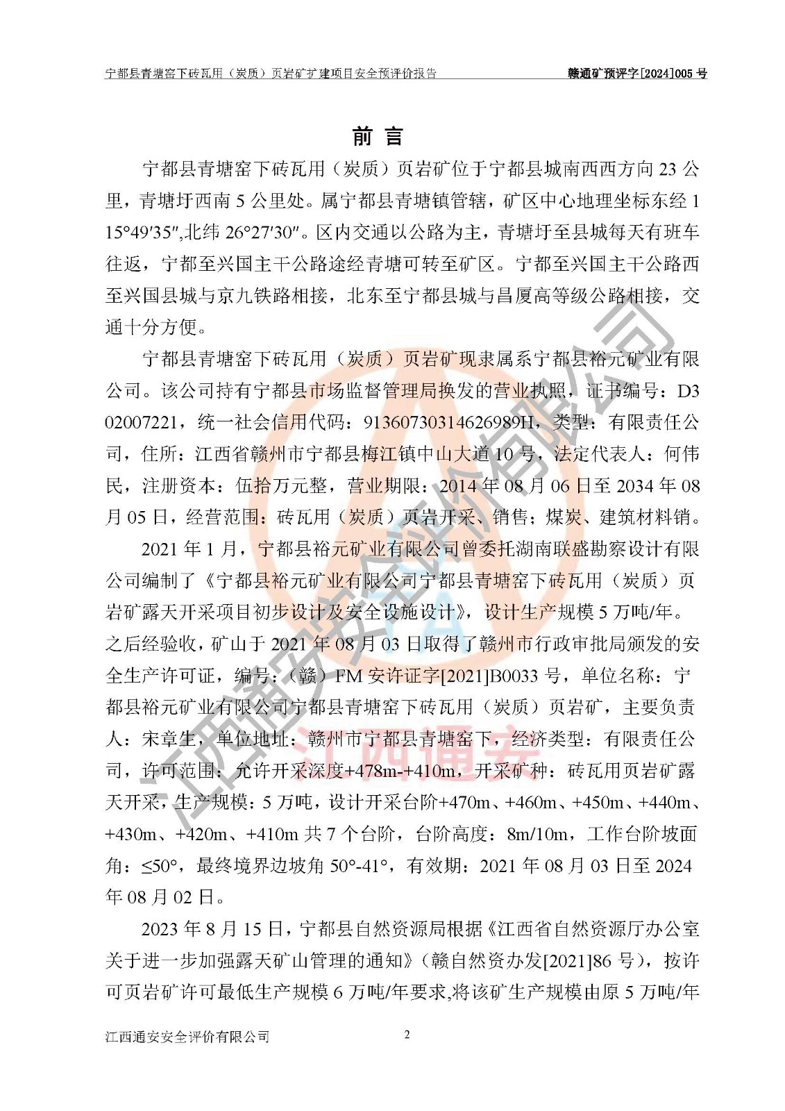 评价报告名称 | 宁都县裕元矿业有限公司宁都县青塘窑下砖瓦用(炭质)页岩矿扩建项目安全预评价报告 | ||||