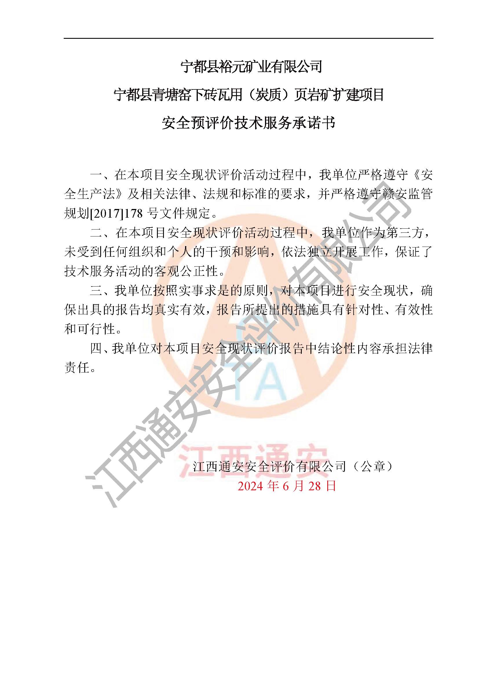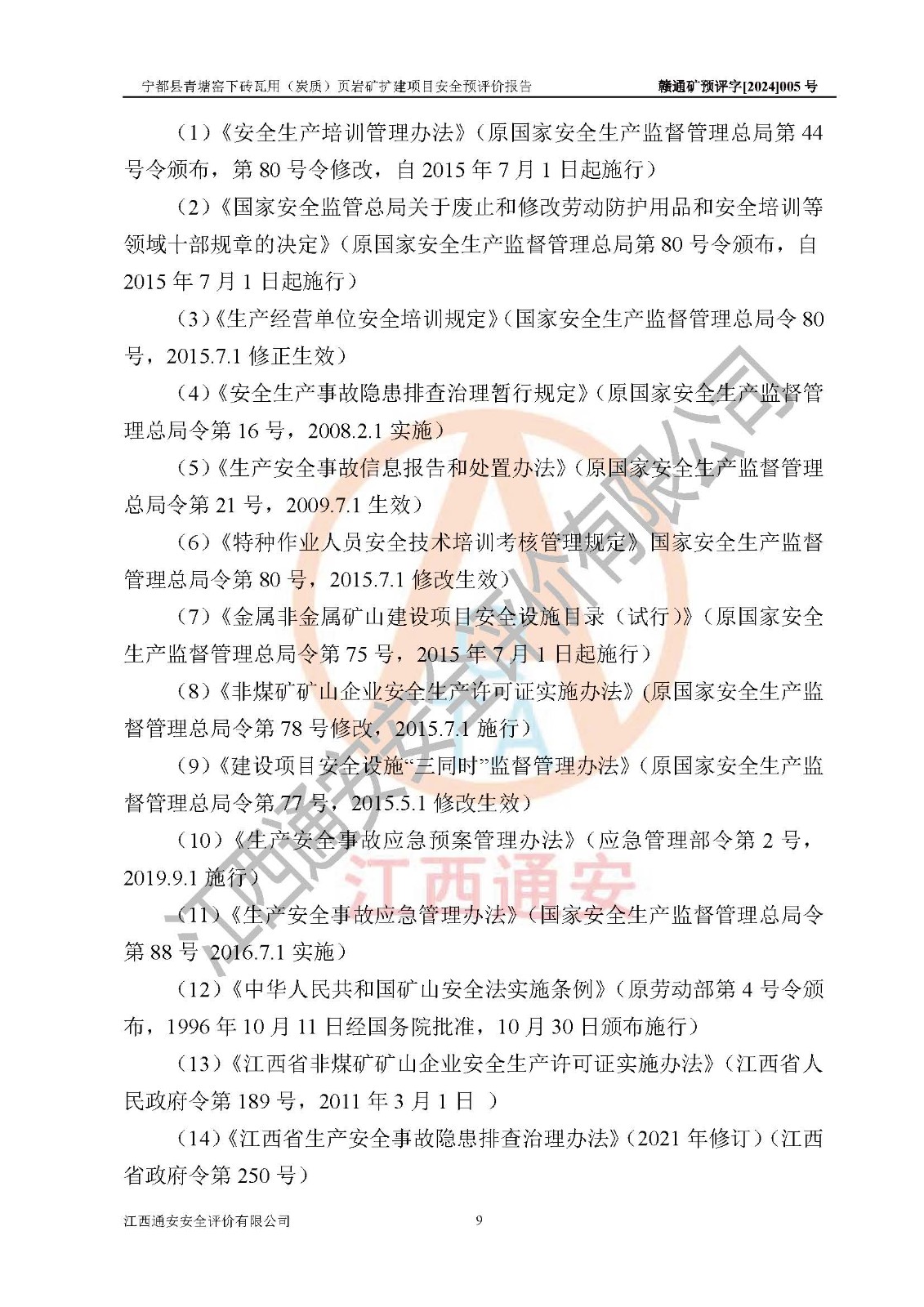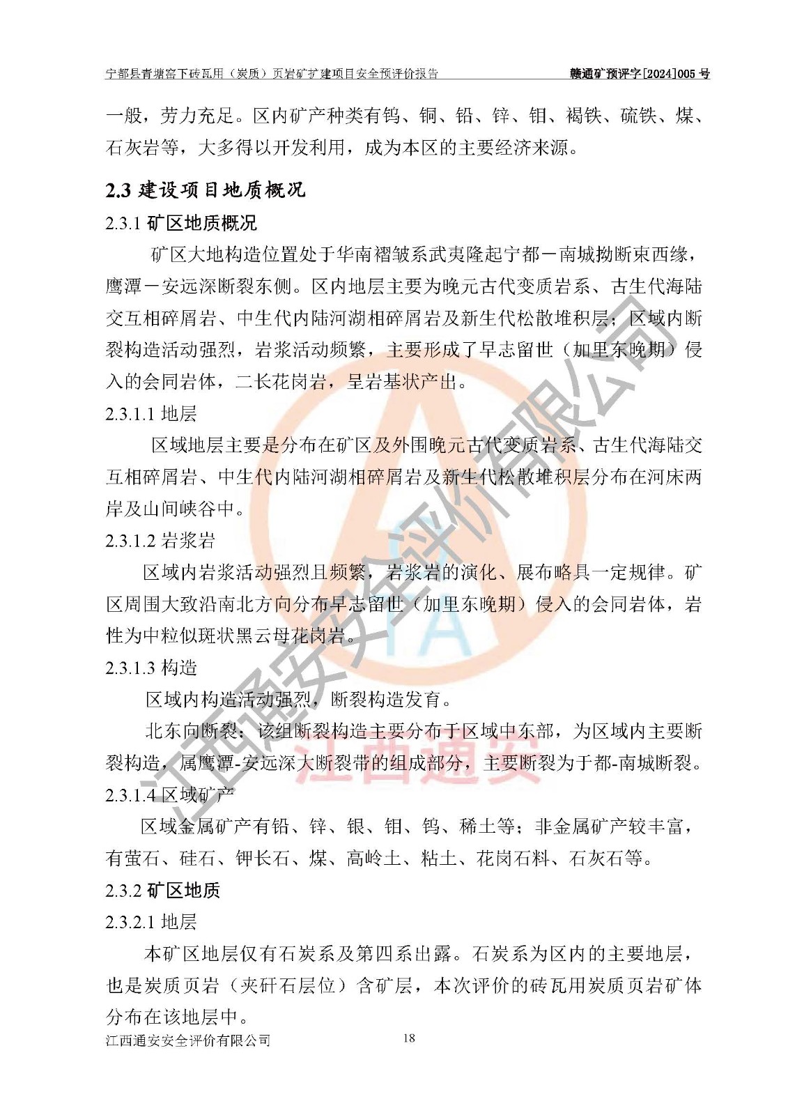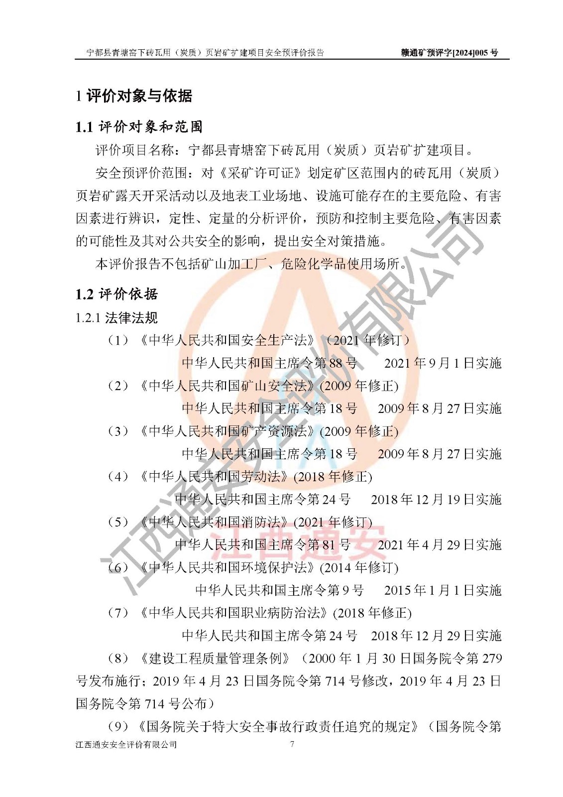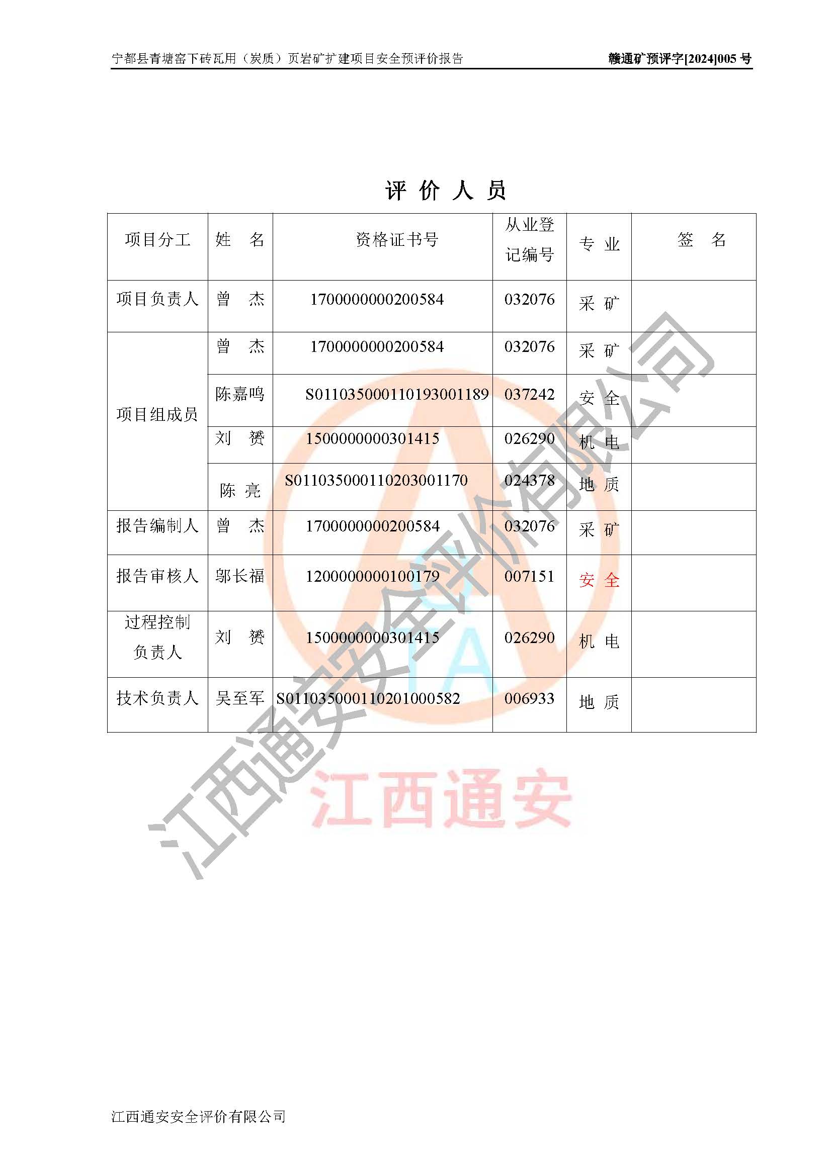 评价报告名称 | 宁都县裕元矿业有限公司宁都县青塘窑下砖瓦用(炭质)页岩矿扩建项目安全预评价报告 | ||||