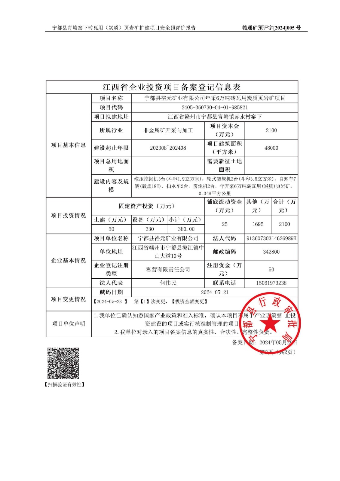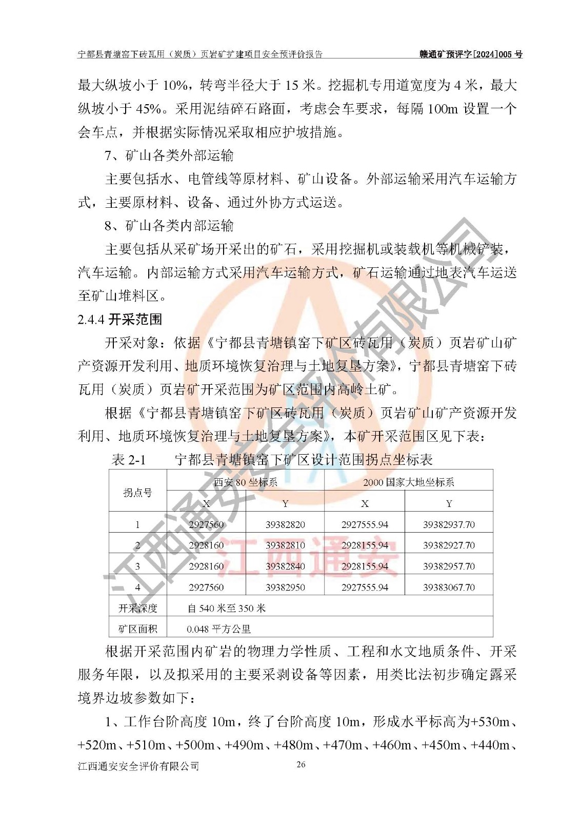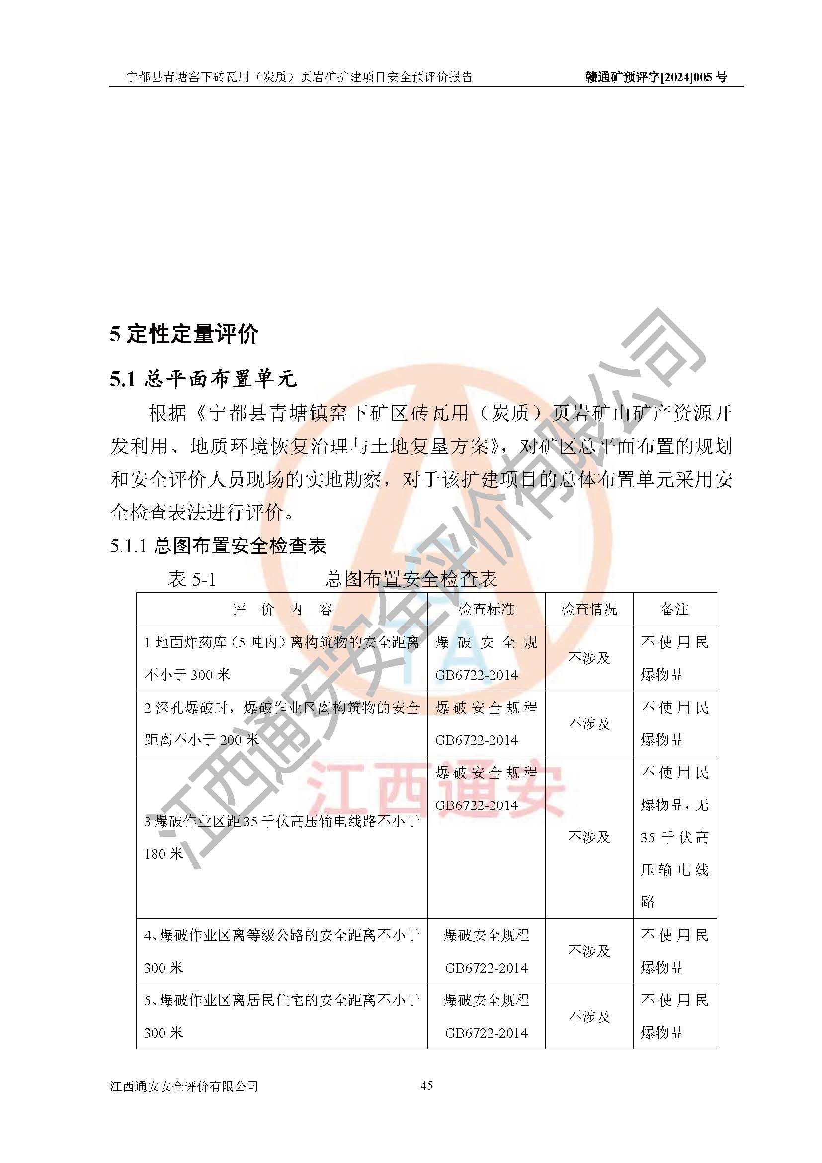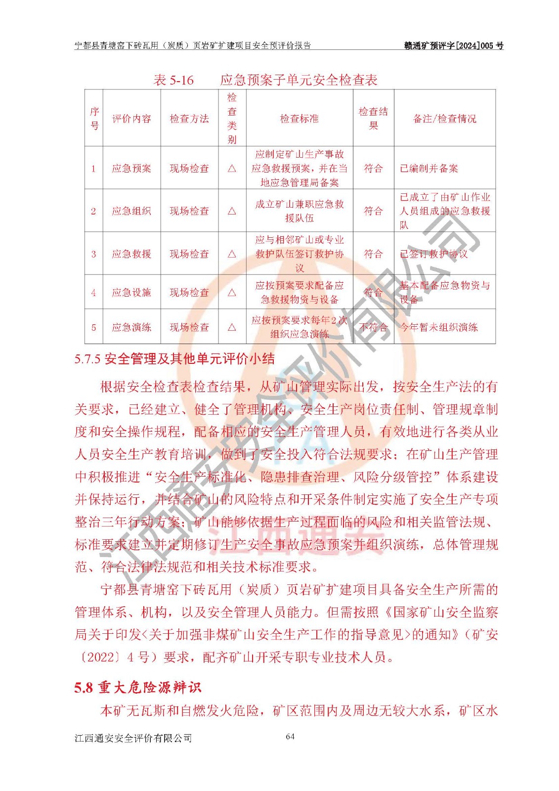 评价报告名称 | 宁都县裕元矿业有限公司宁都县青塘窑下砖瓦用(炭质)页岩矿扩建项目安全预评价报告 | ||||