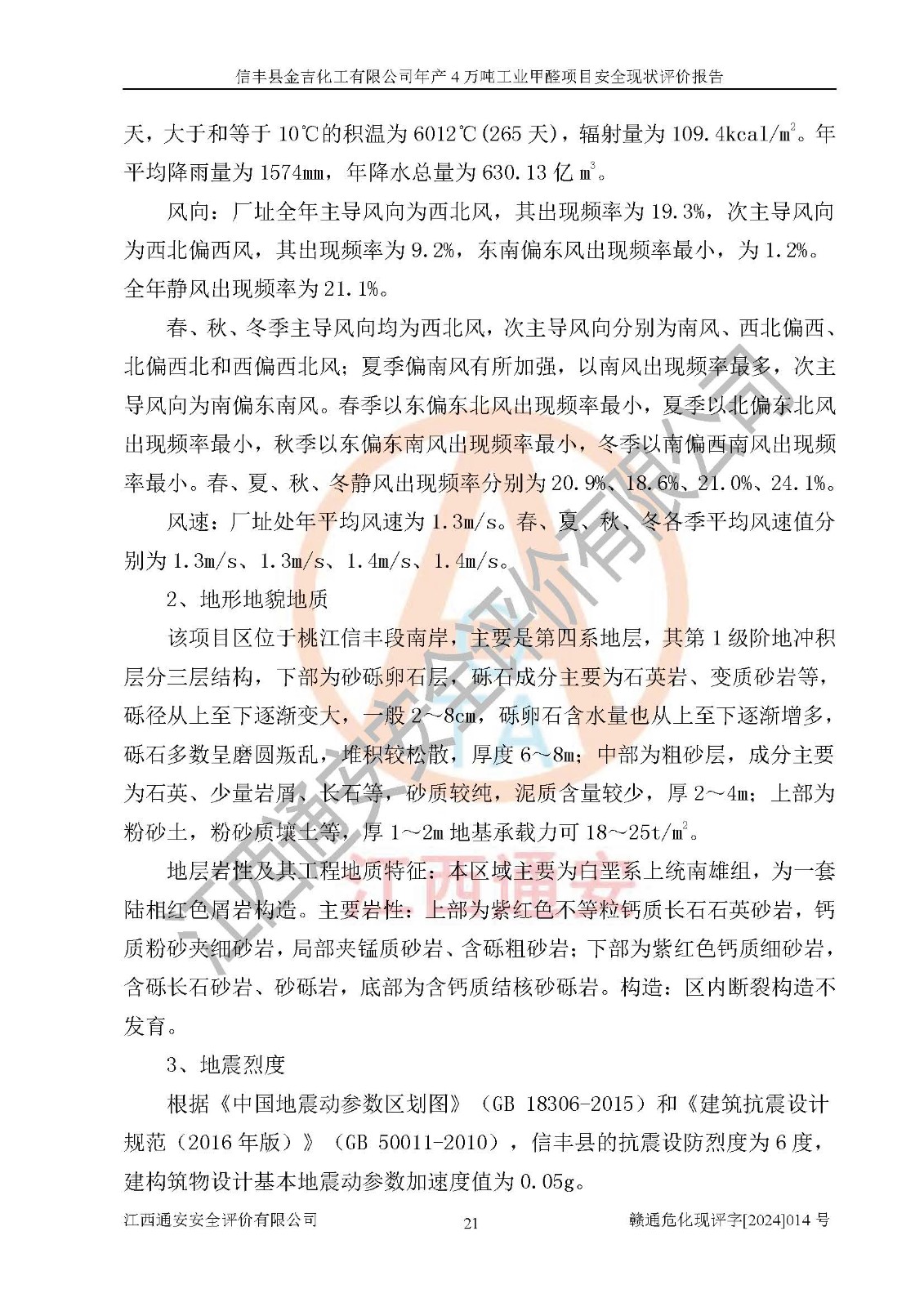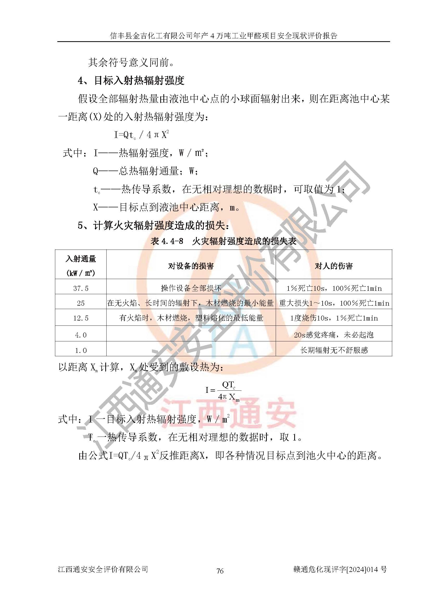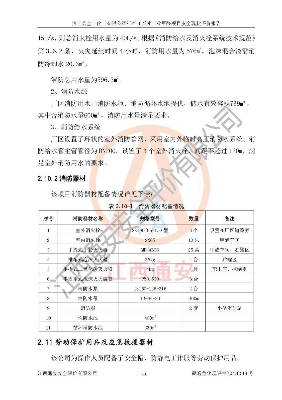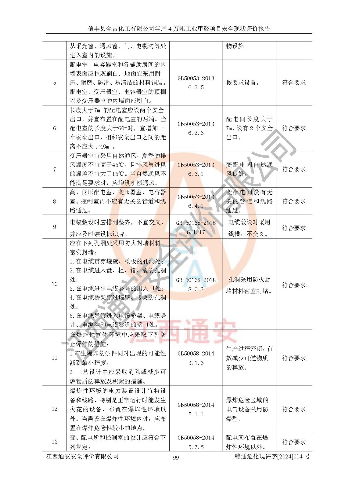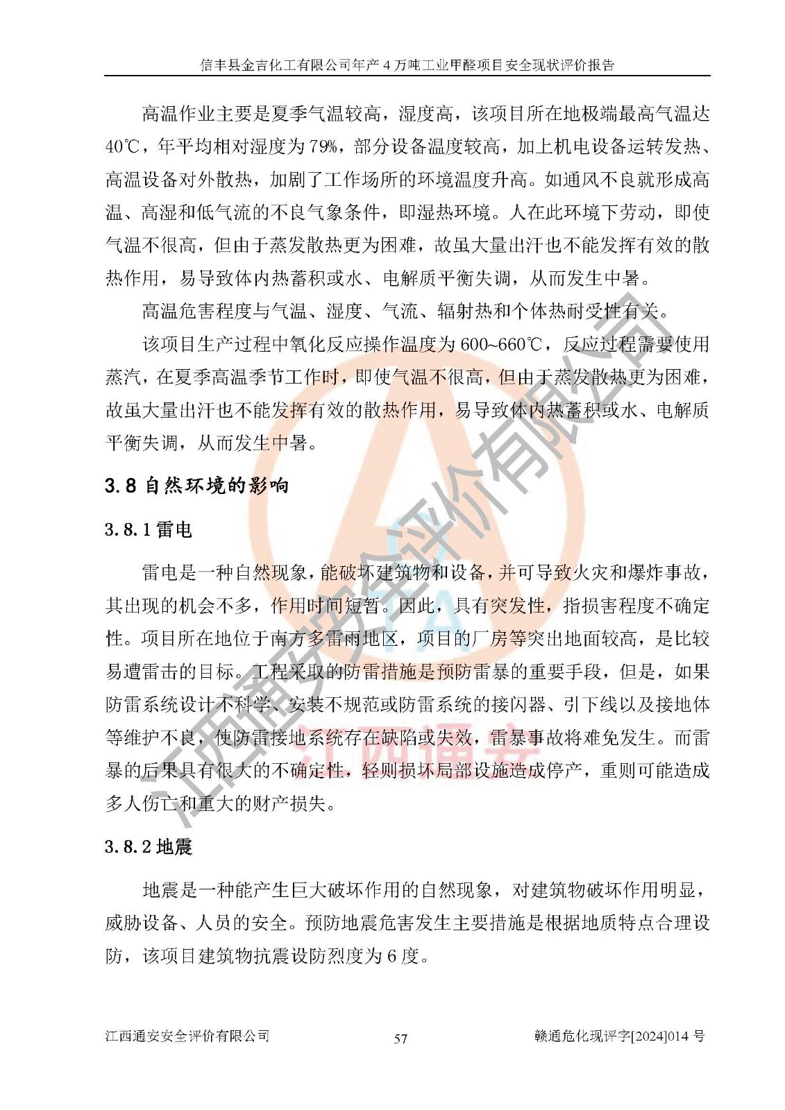 评价结论 | 信丰县金吉化工有限公司年产4万吨工业甲醛项目现场情况与设计图纸一致,DCS和SIS系统设计符合要求、运行正常,有关从业人员资质符合《江西省危险化学品安全专项整治三年行动实施方案》要求,安全设施及安全管理符合法律、法规、标准的要求,安全风险是受控制的,其风险程度是可以接受的,安全设施符合安全生产条件,能够满足安全生产的要求。 | ||||||
