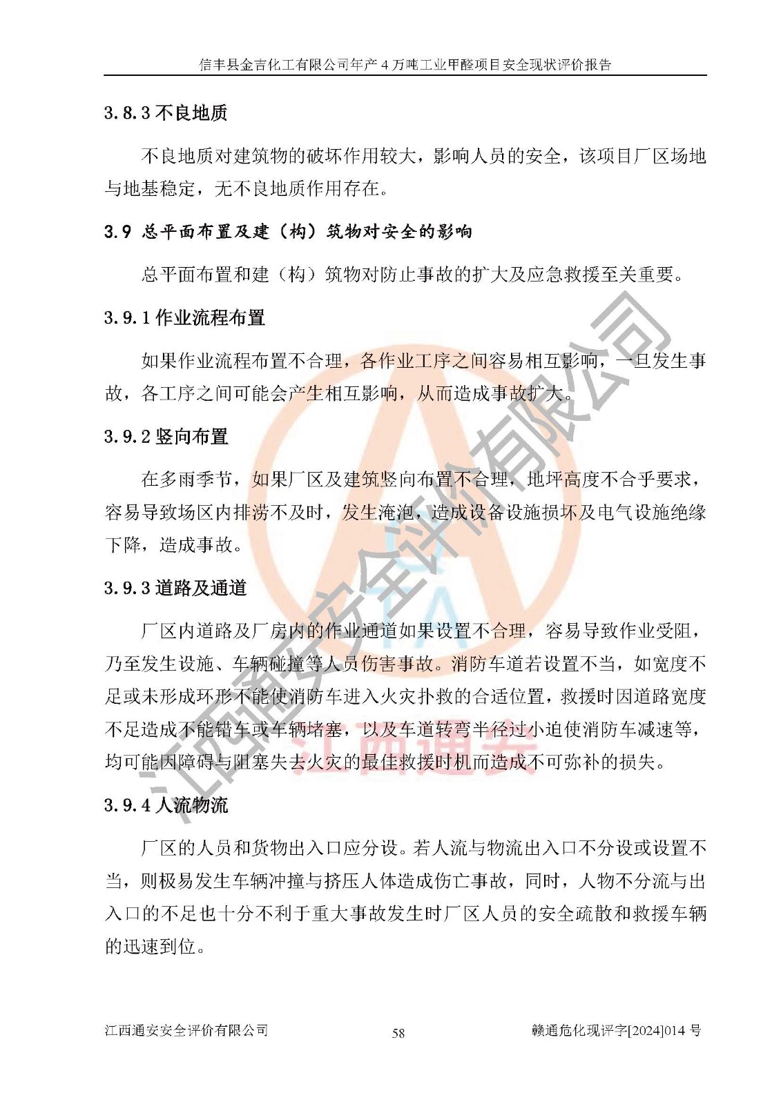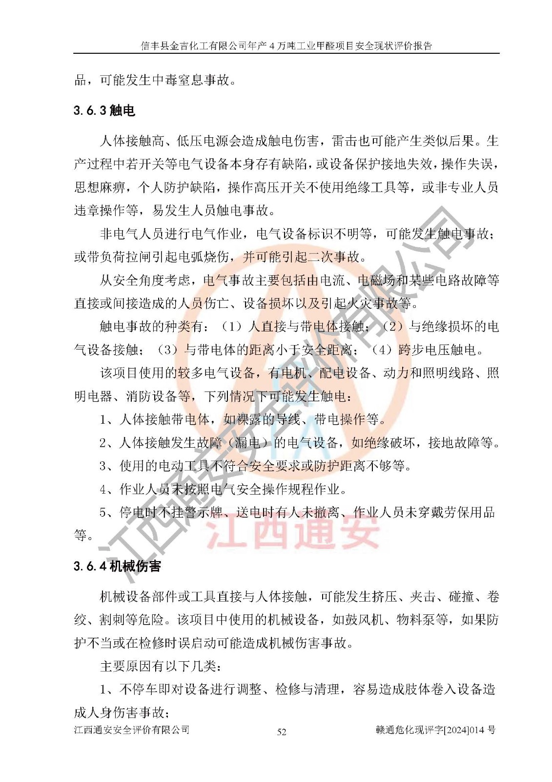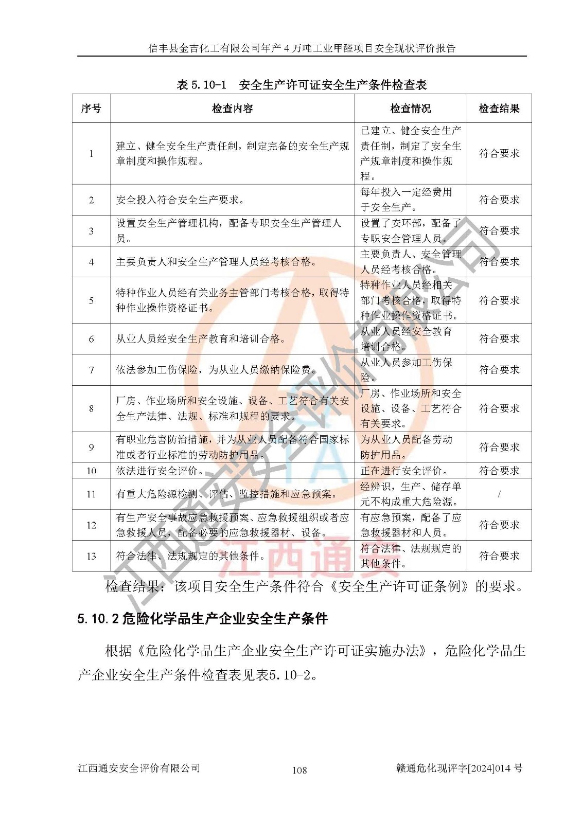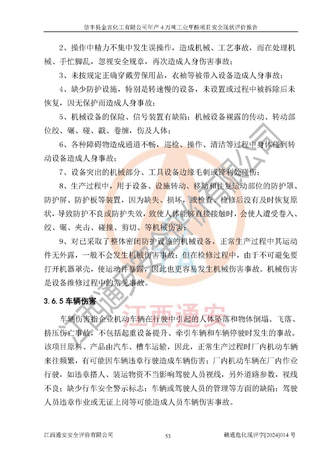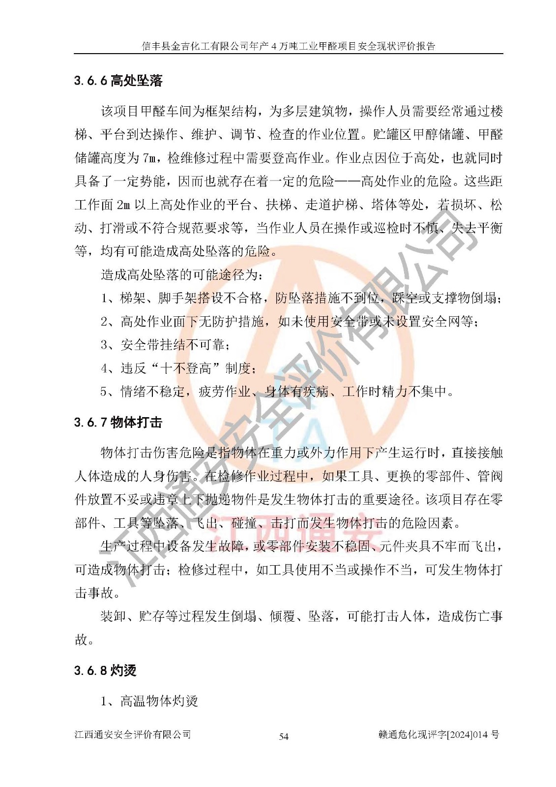 评价结论 | 信丰县金吉化工有限公司年产4万吨工业甲醛项目现场情况与设计图纸一致,DCS和SIS系统设计符合要求、运行正常,有关从业人员资质符合《江西省危险化学品安全专项整治三年行动实施方案》要求,安全设施及安全管理符合法律、法规、标准的要求,安全风险是受控制的,其风险程度是可以接受的,安全设施符合安全生产条件,能够满足安全生产的要求。 | ||||||