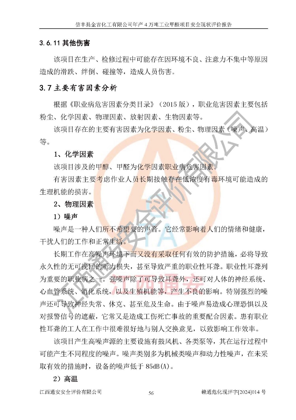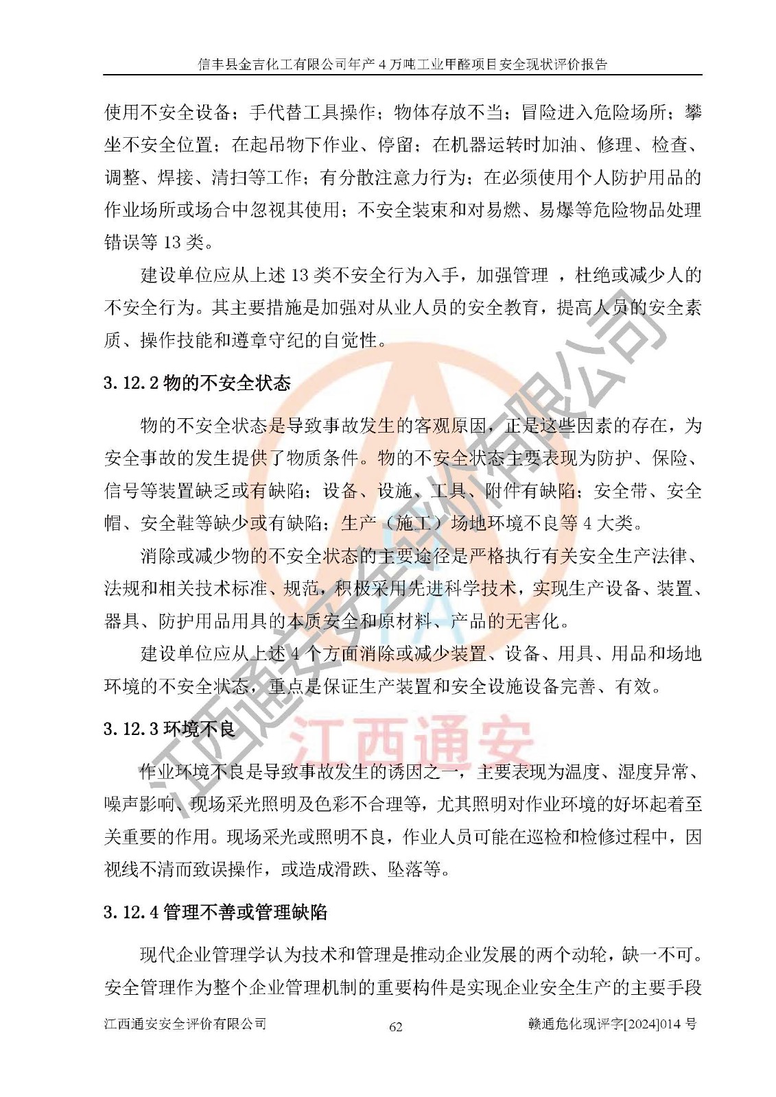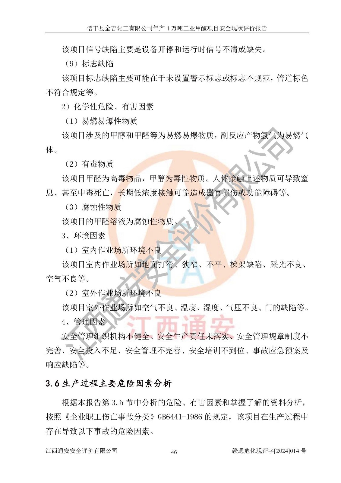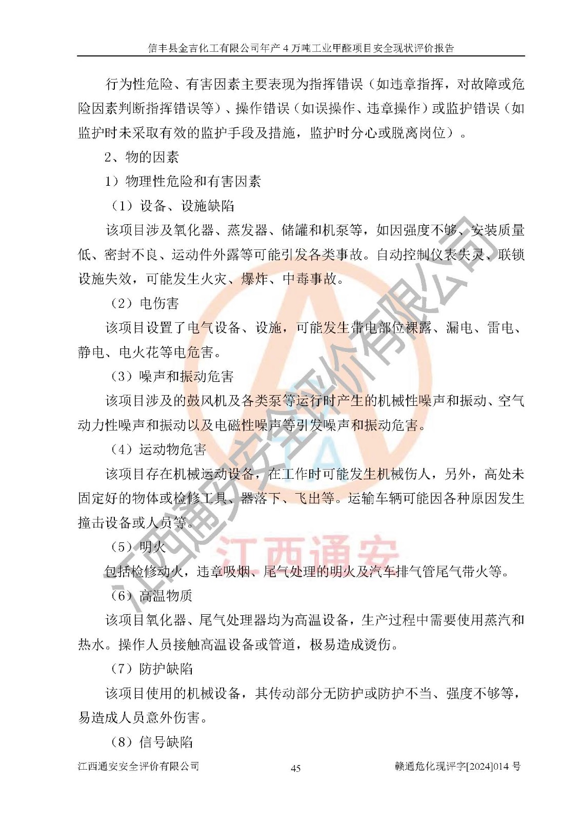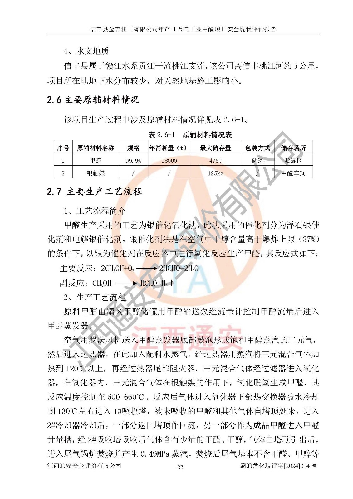 评价报告名称 | 信丰县金吉化工有限公司年产4万吨工业甲醛项目安全现状评价报告 | ||||||