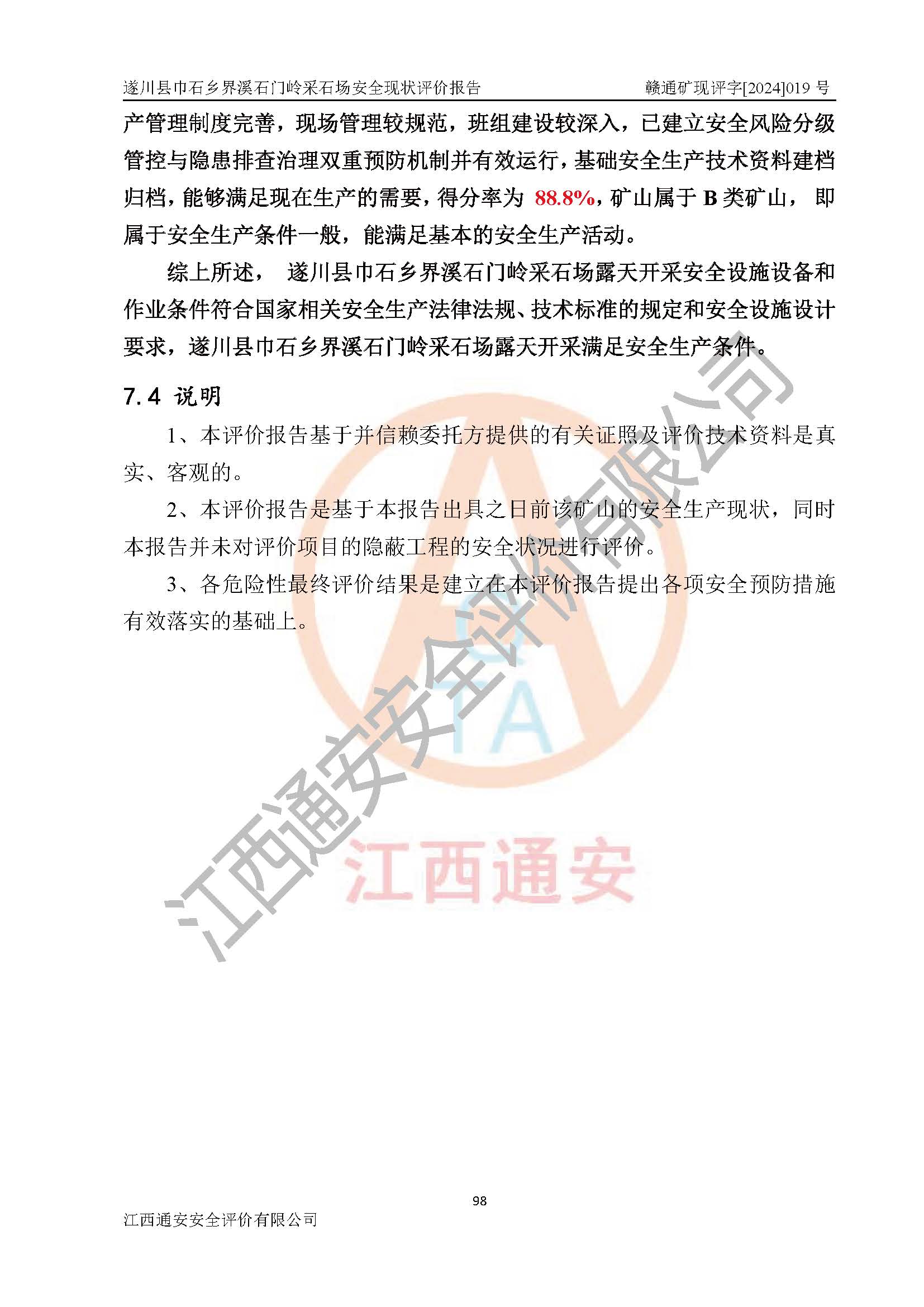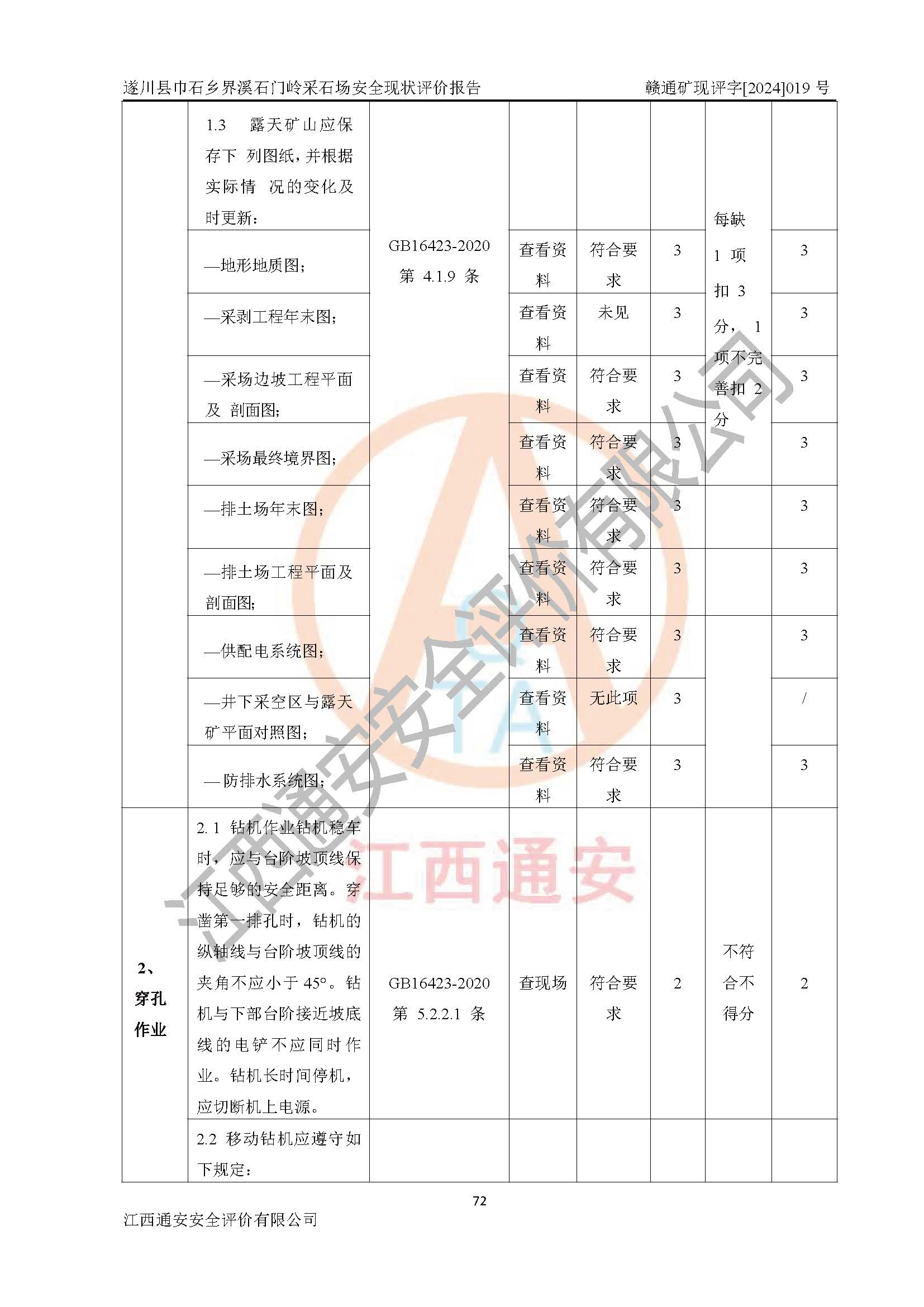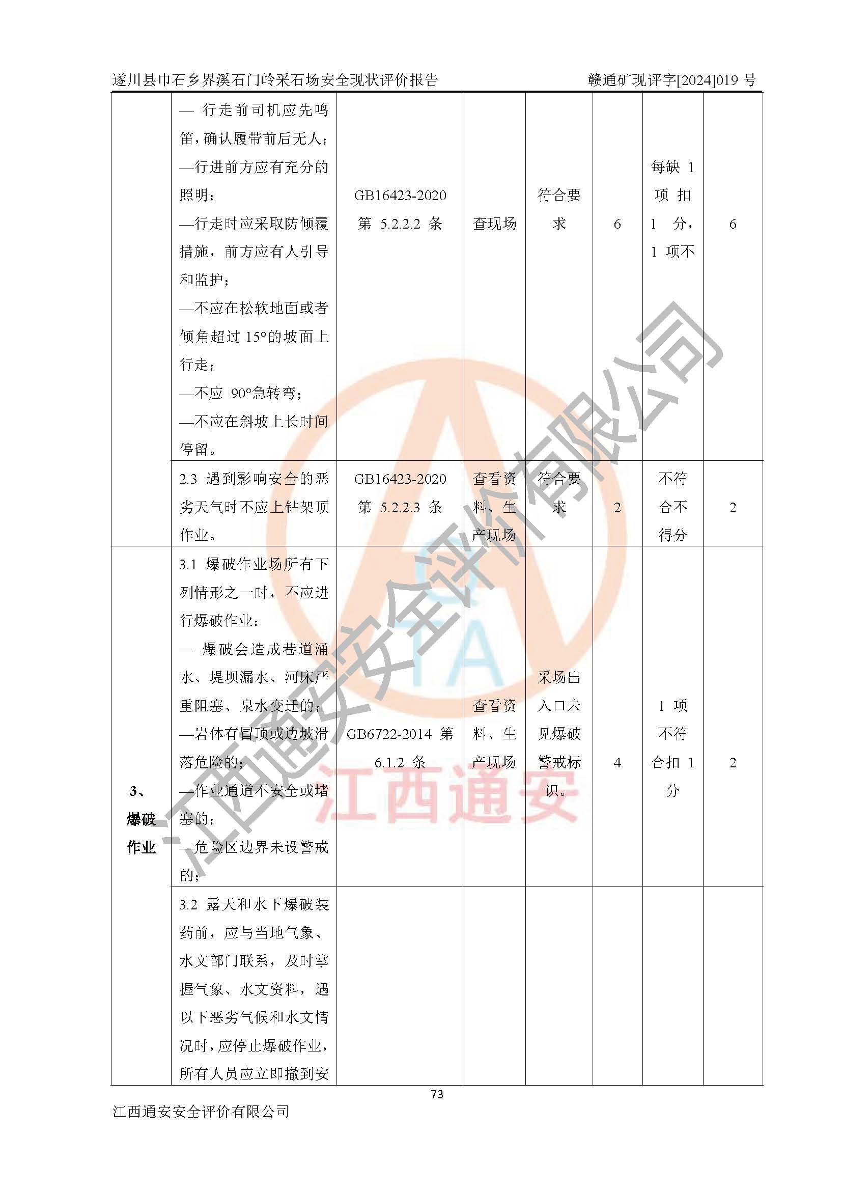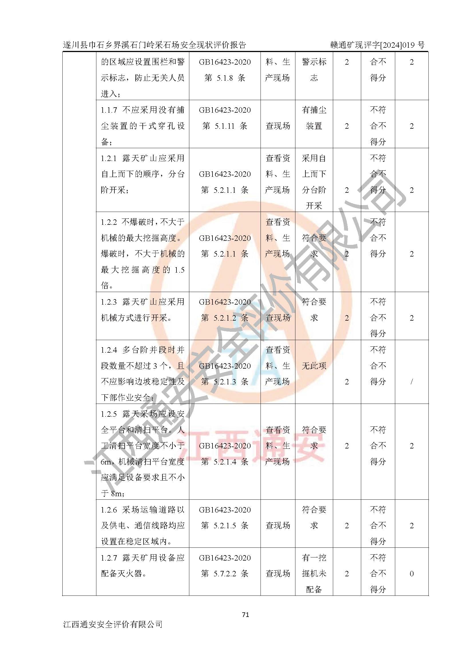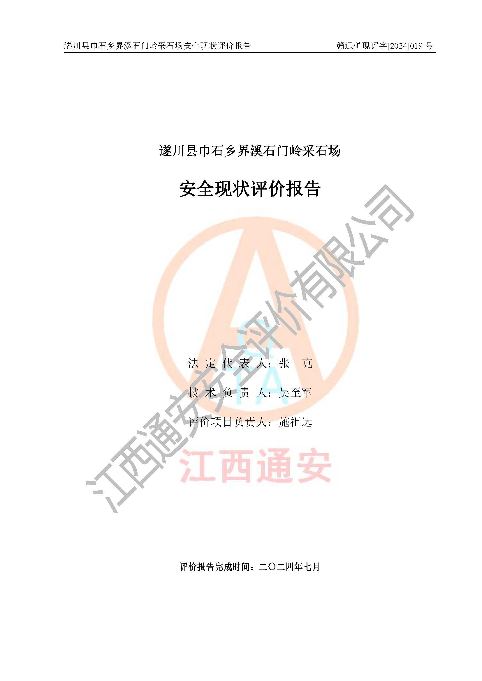 项目名称 | 遂川县巾石乡界溪石门岭采石场安全现状评价报告 | ||||